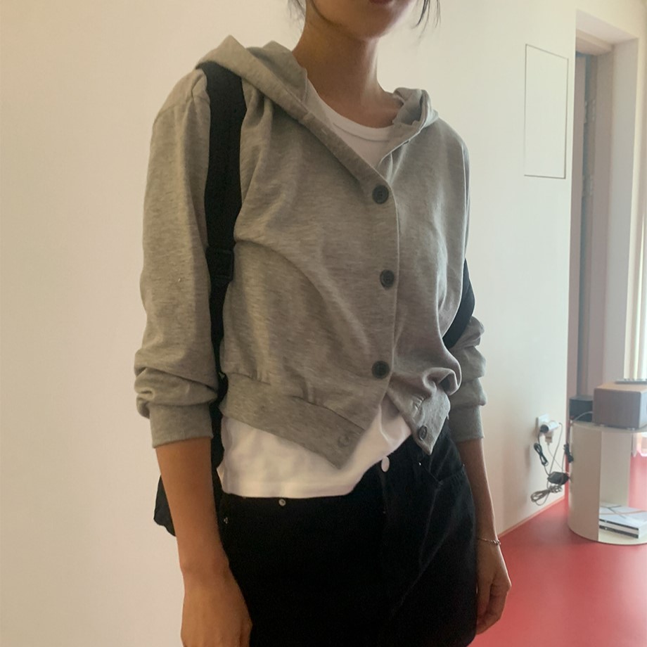 ユニークボタンフード付きスウェット