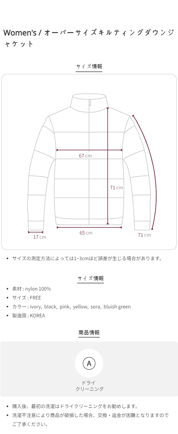 [裏地起毛] オーバーサイズキルティングダウンジャケット(6color)