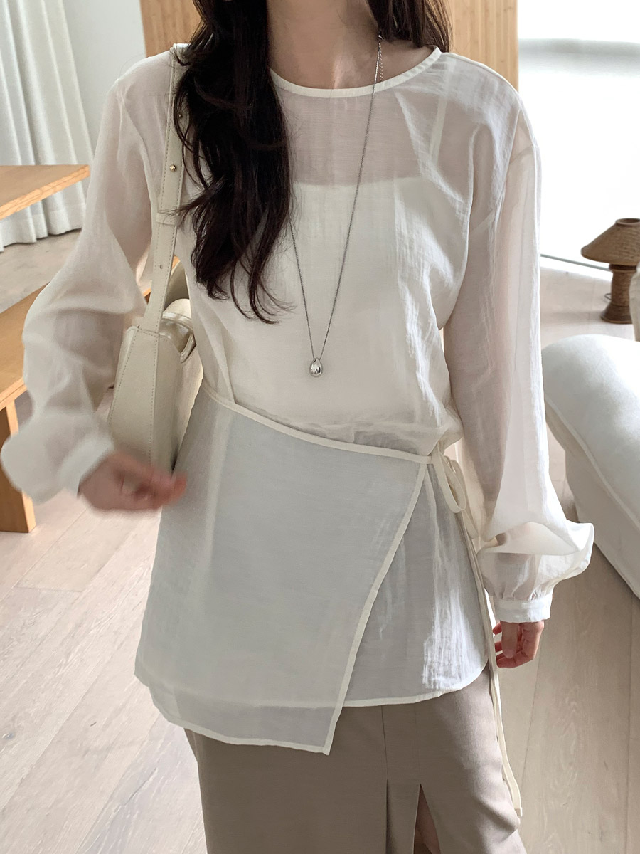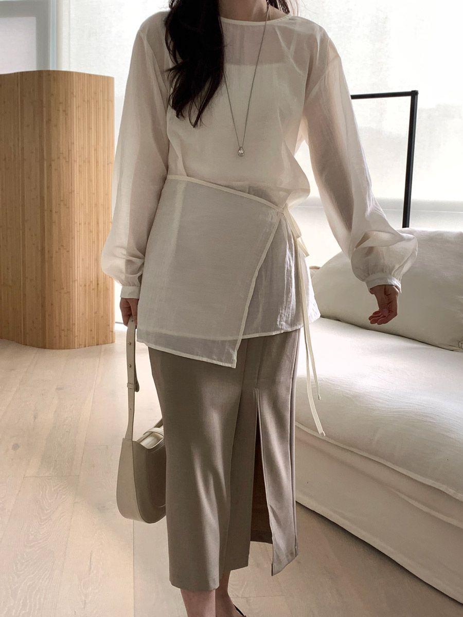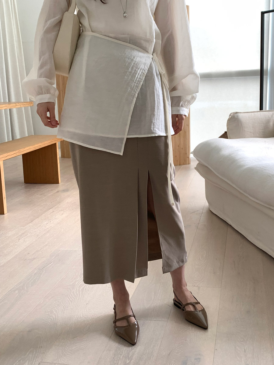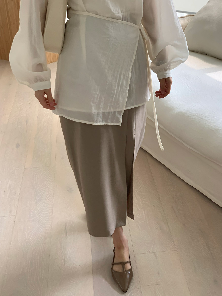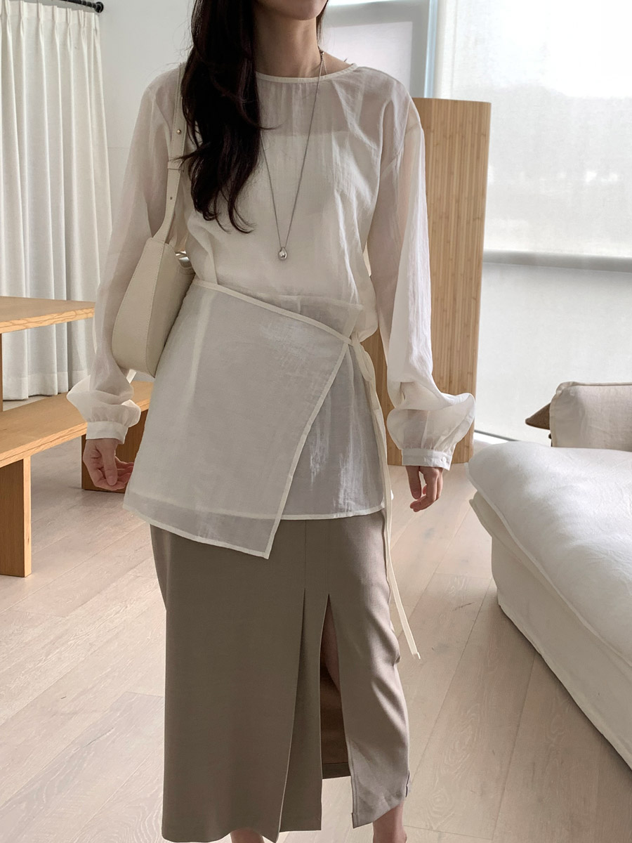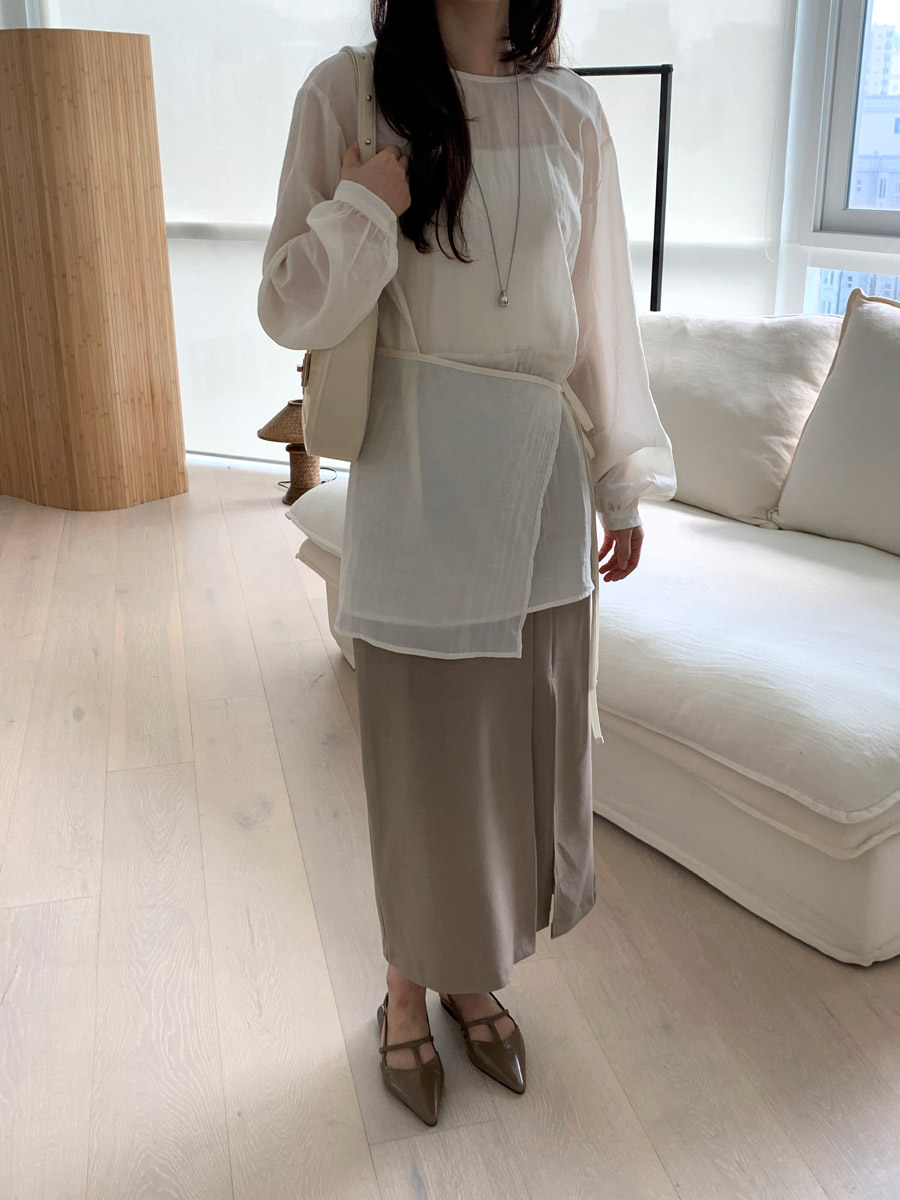 ラップスカートレイヤードシースルーミドル丈ブラウス