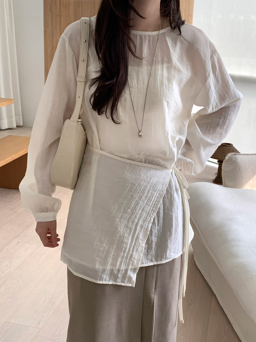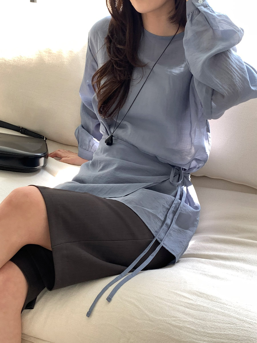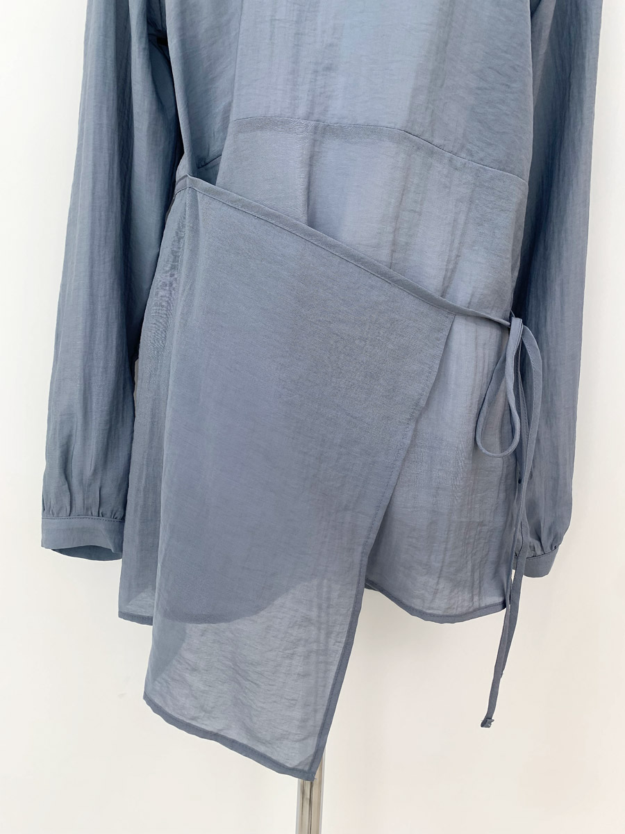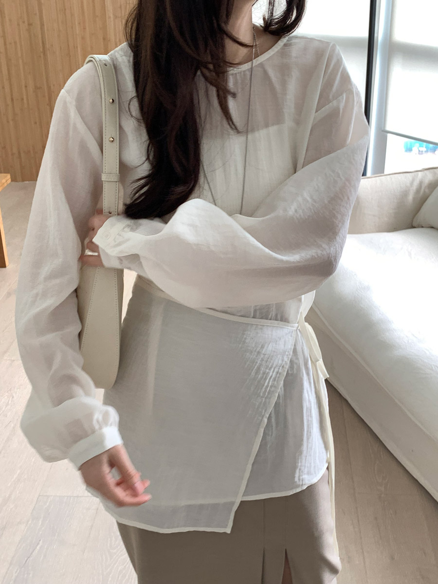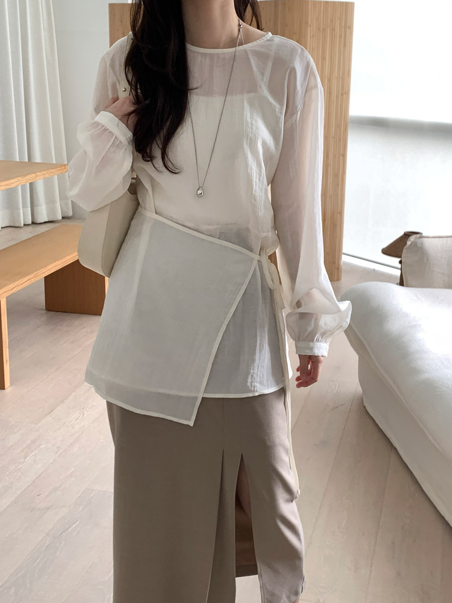 ラップスカートレイヤードシースルーミドル丈ブラウス