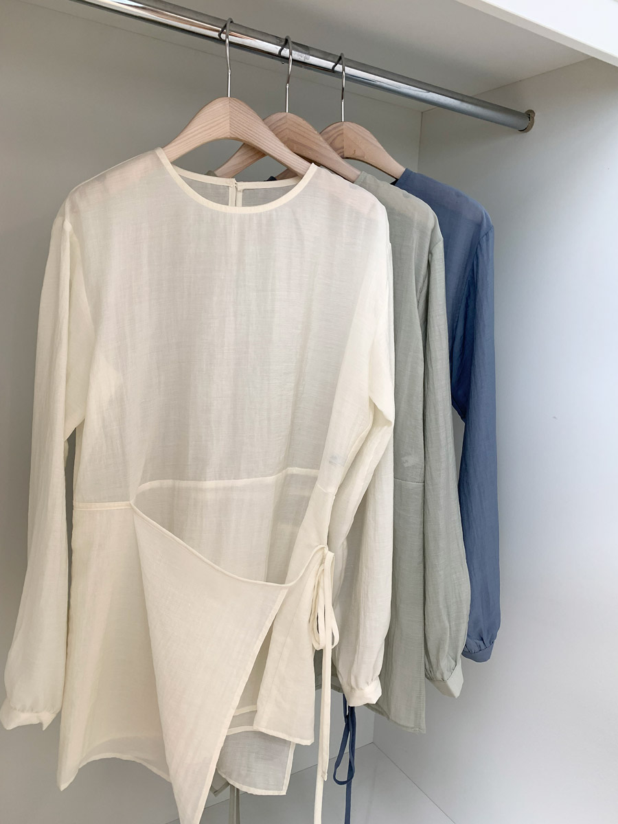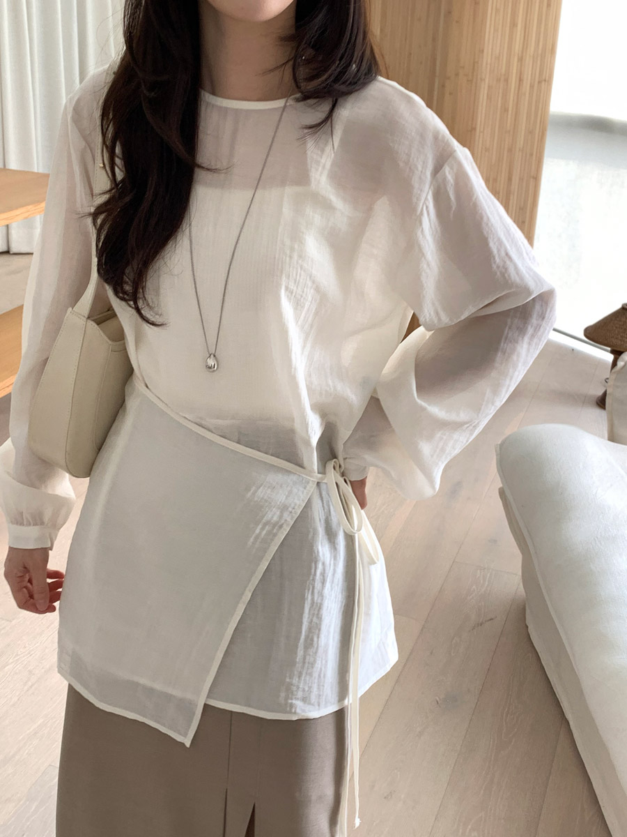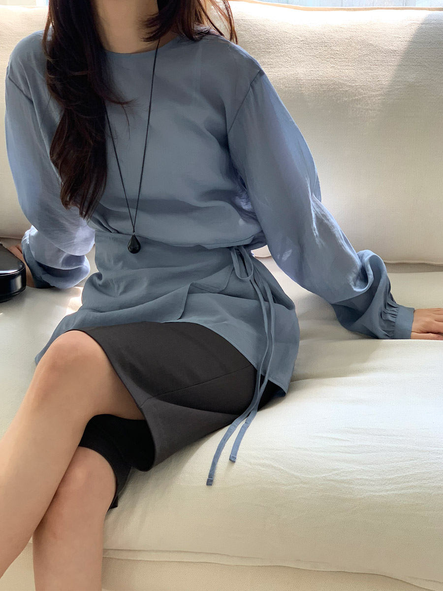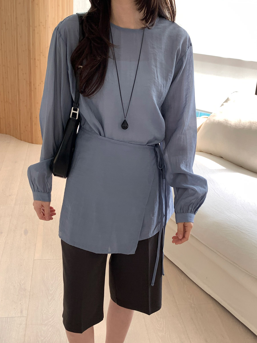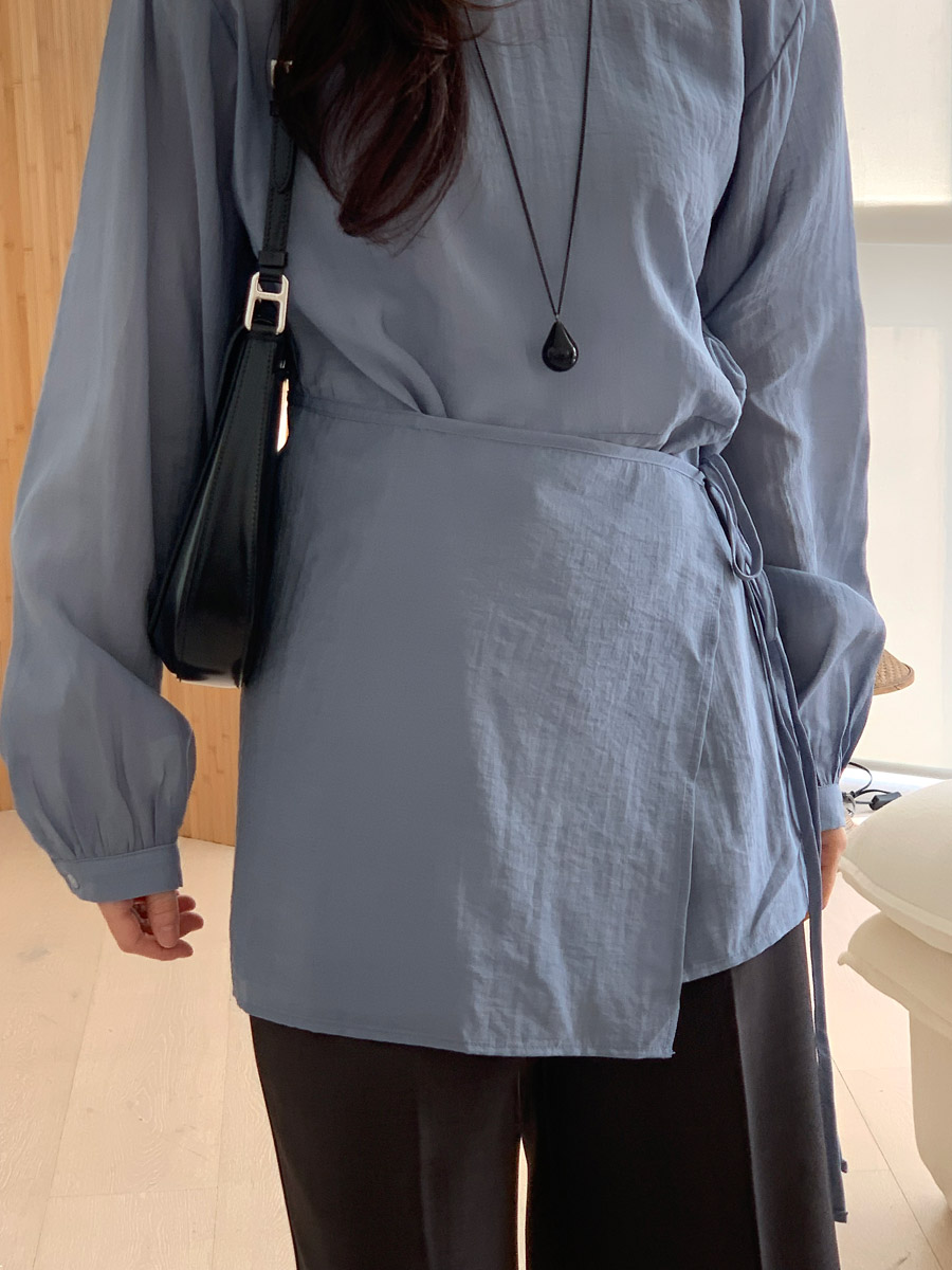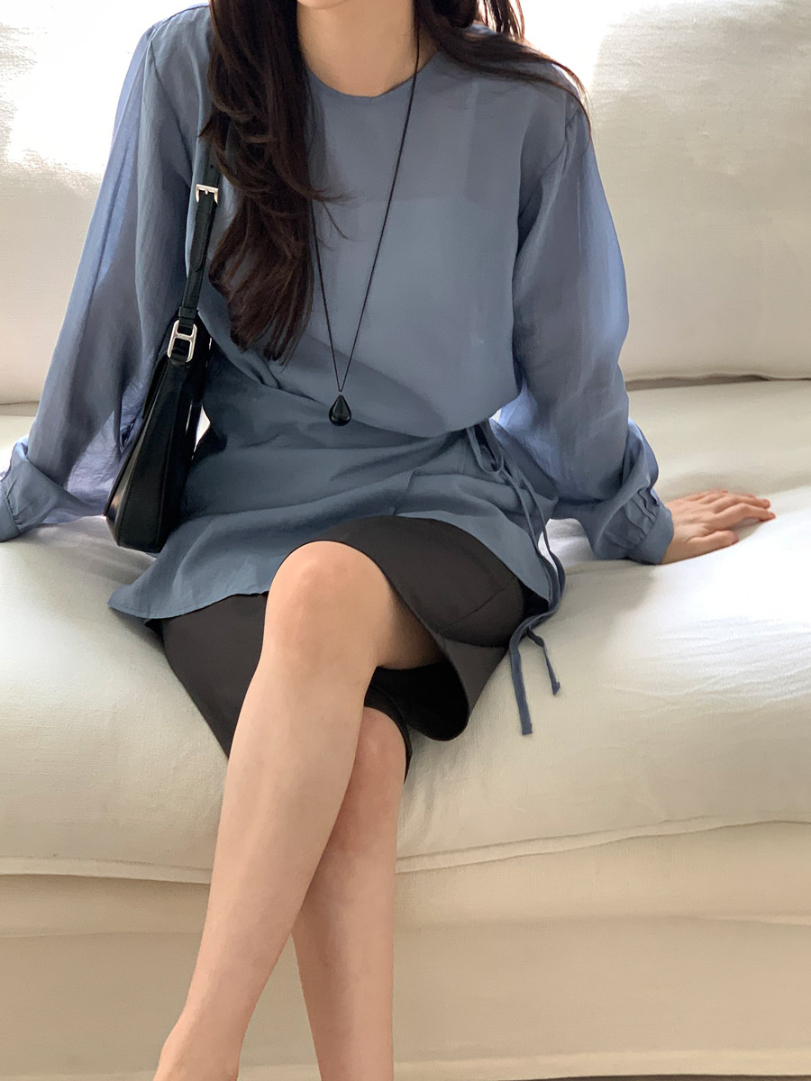 ラップスカートレイヤードシースルーミドル丈ブラウス