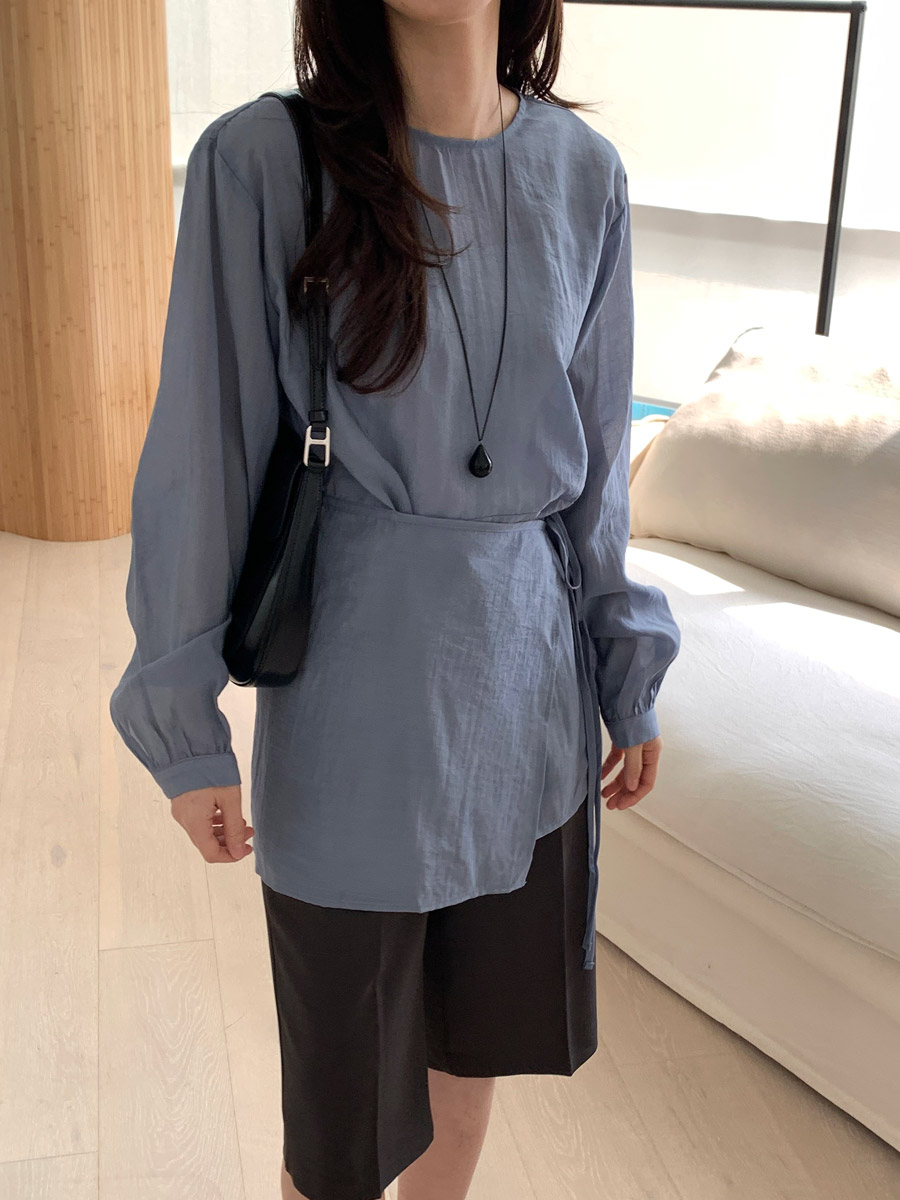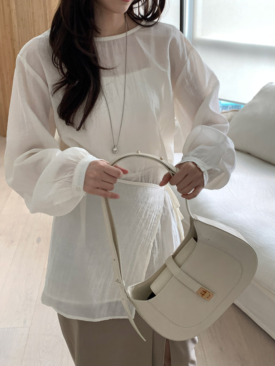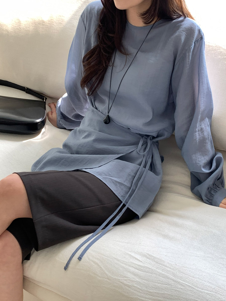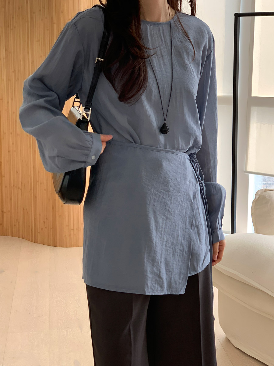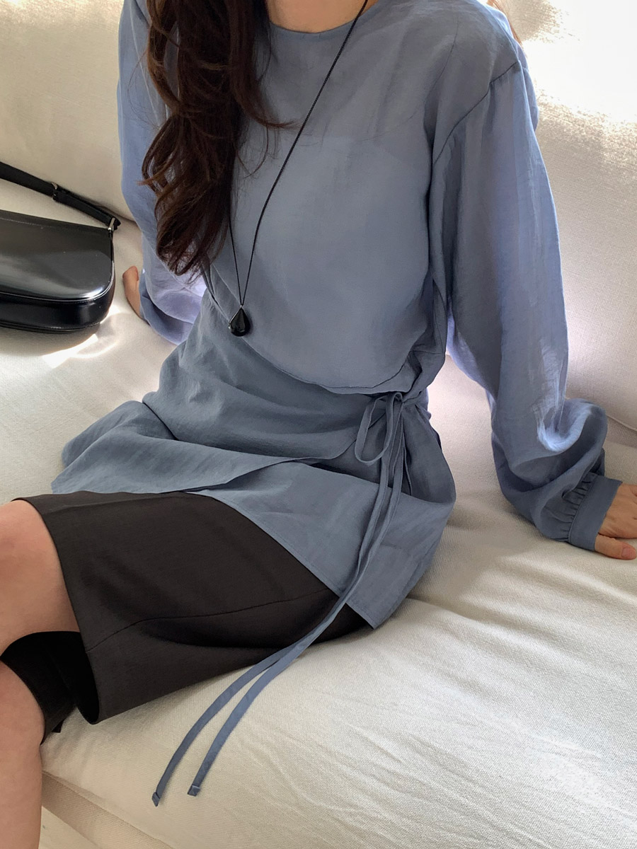 ラップスカートレイヤードシースルーミドル丈ブラウス