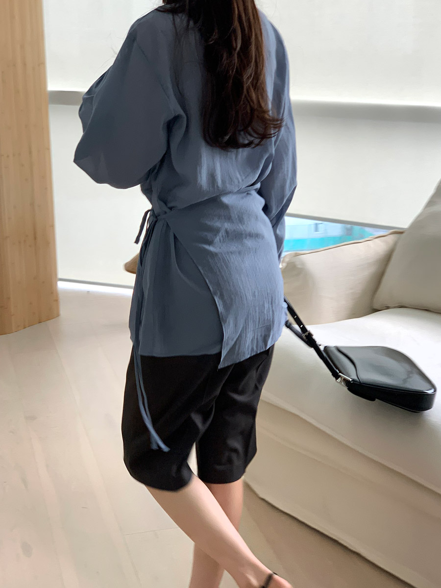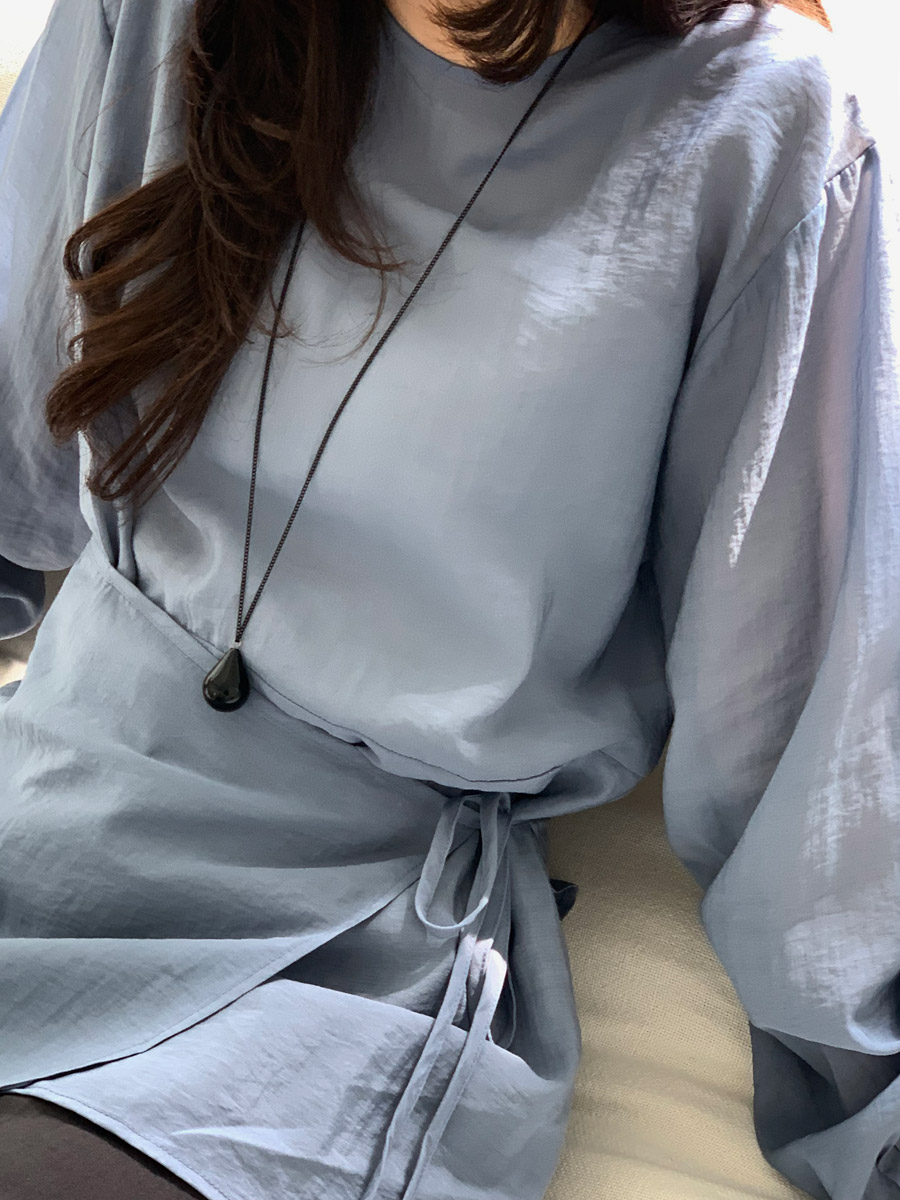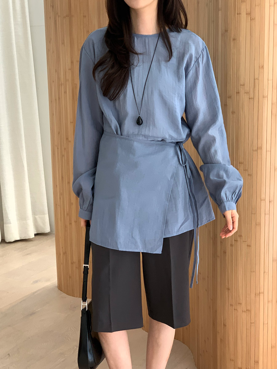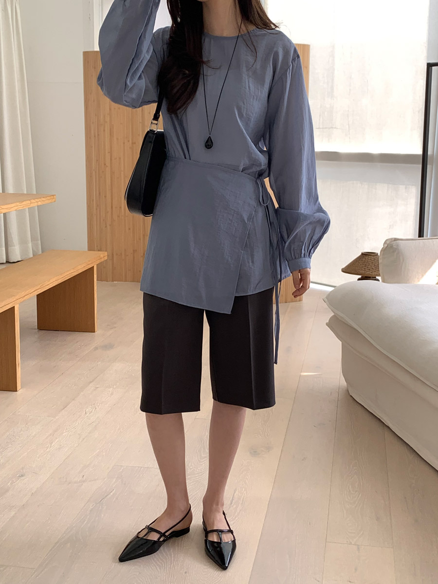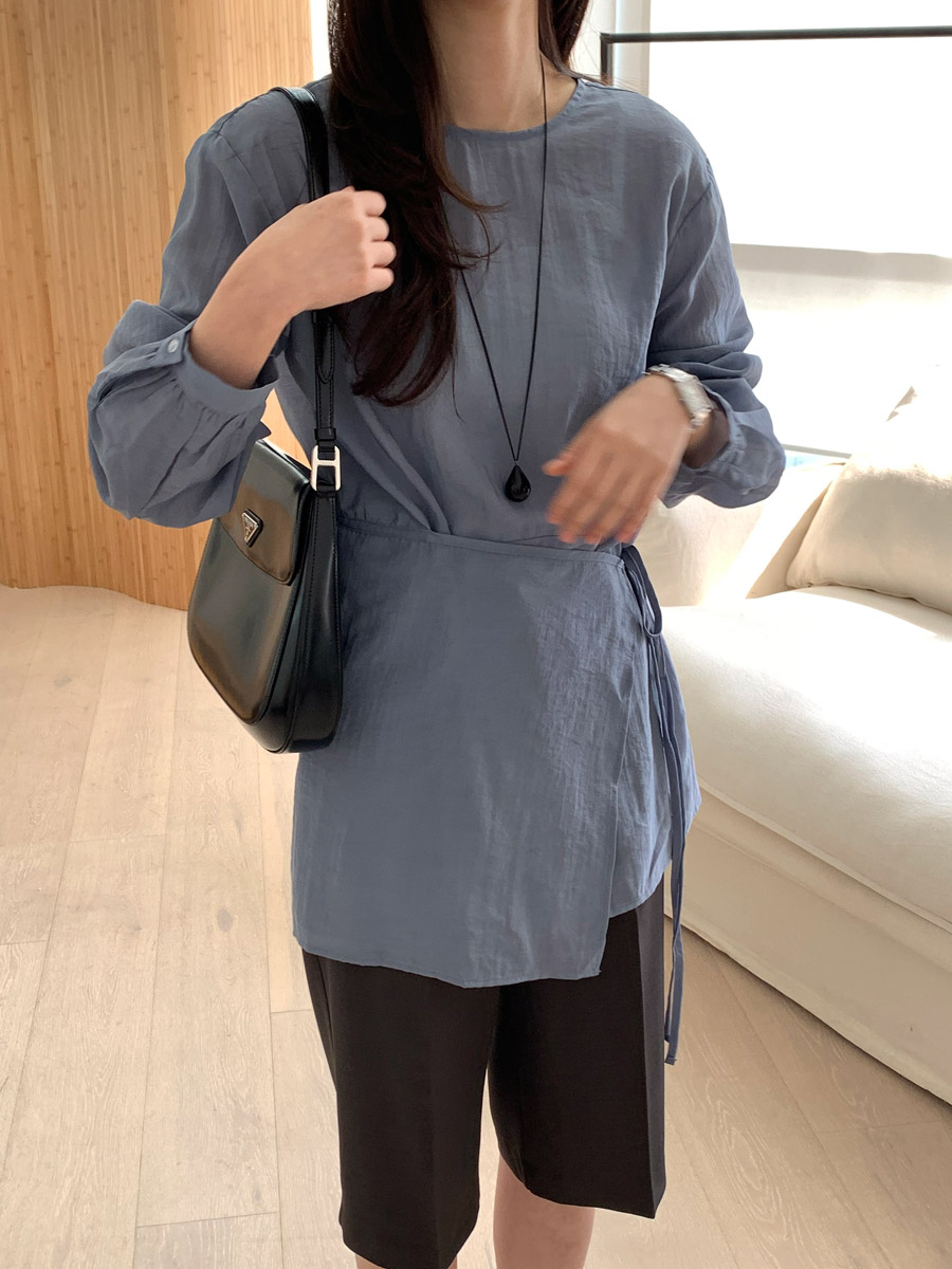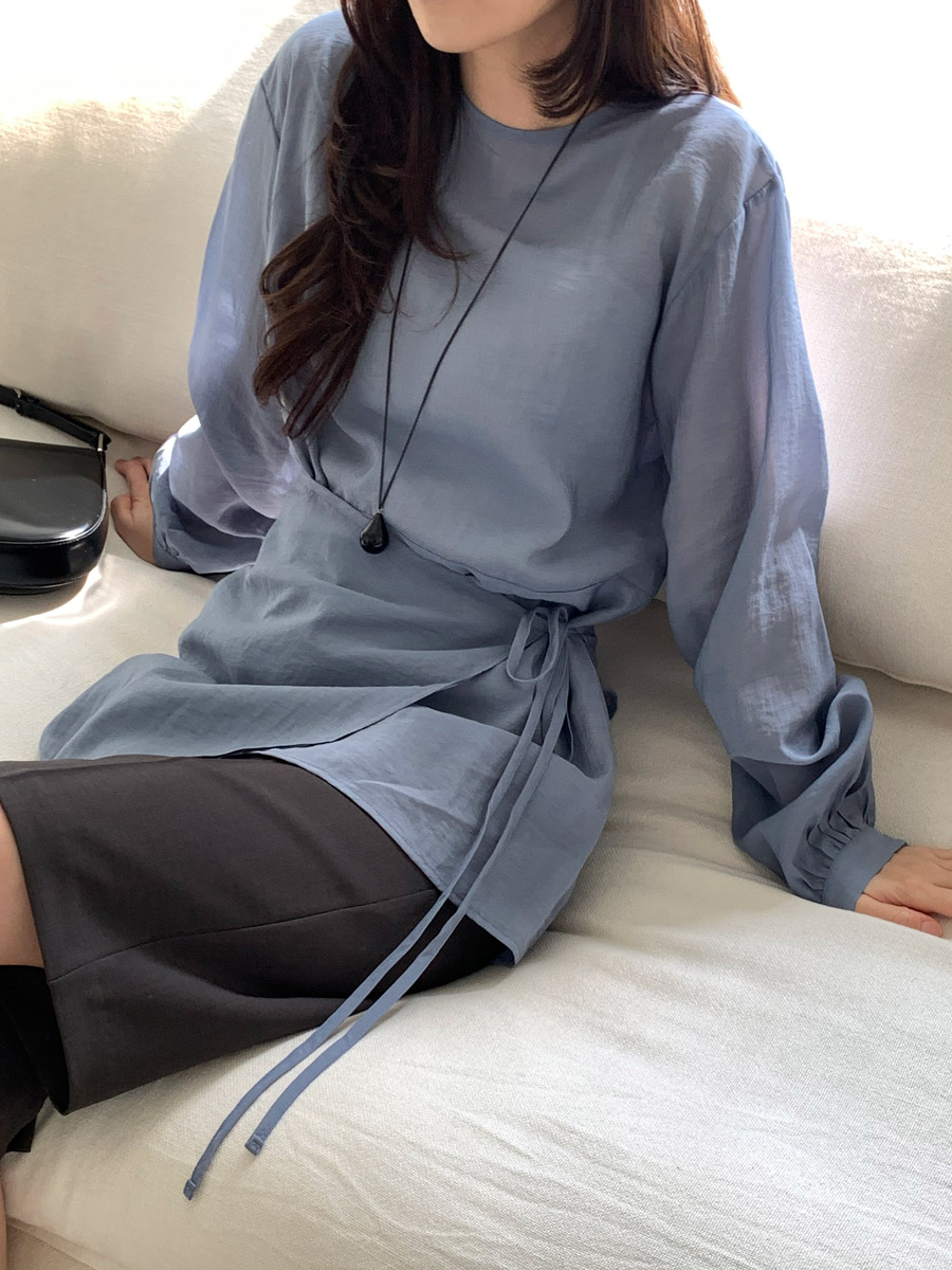 ラップスカートレイヤードシースルーミドル丈ブラウス