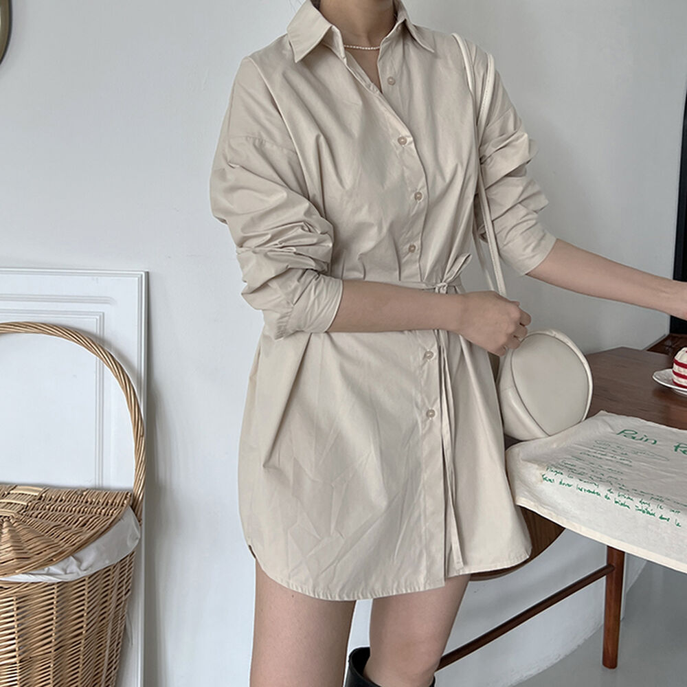 コットンロングシャツワンピース
