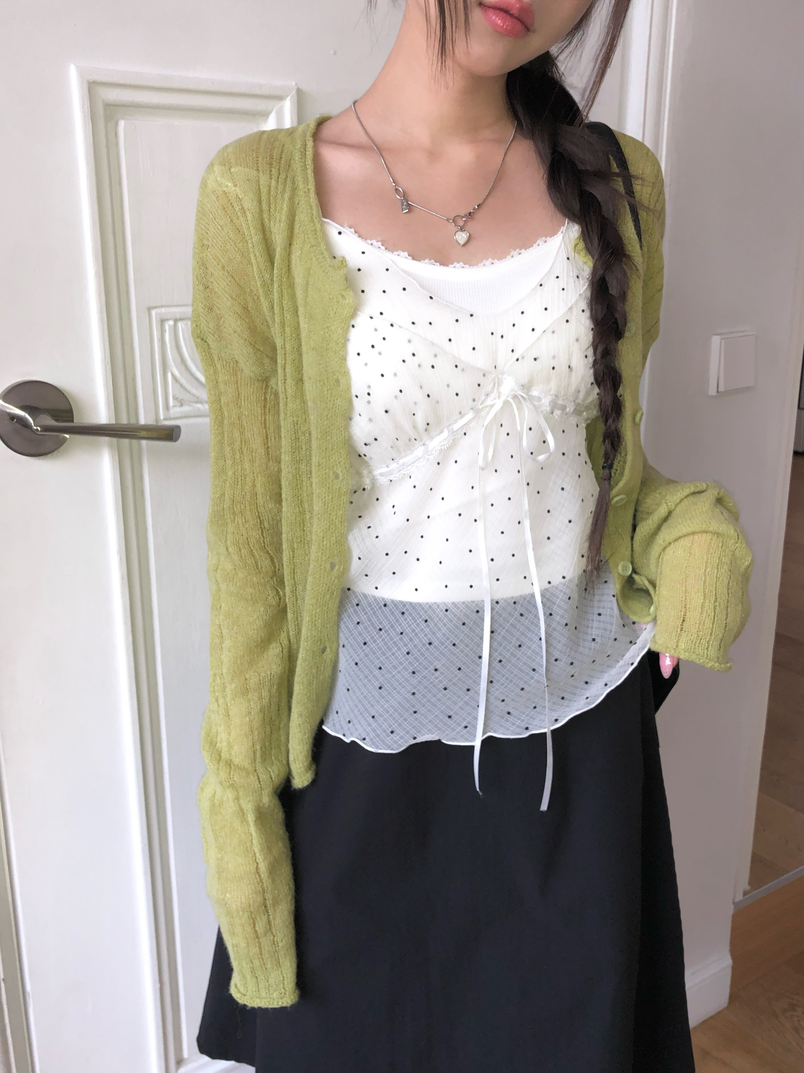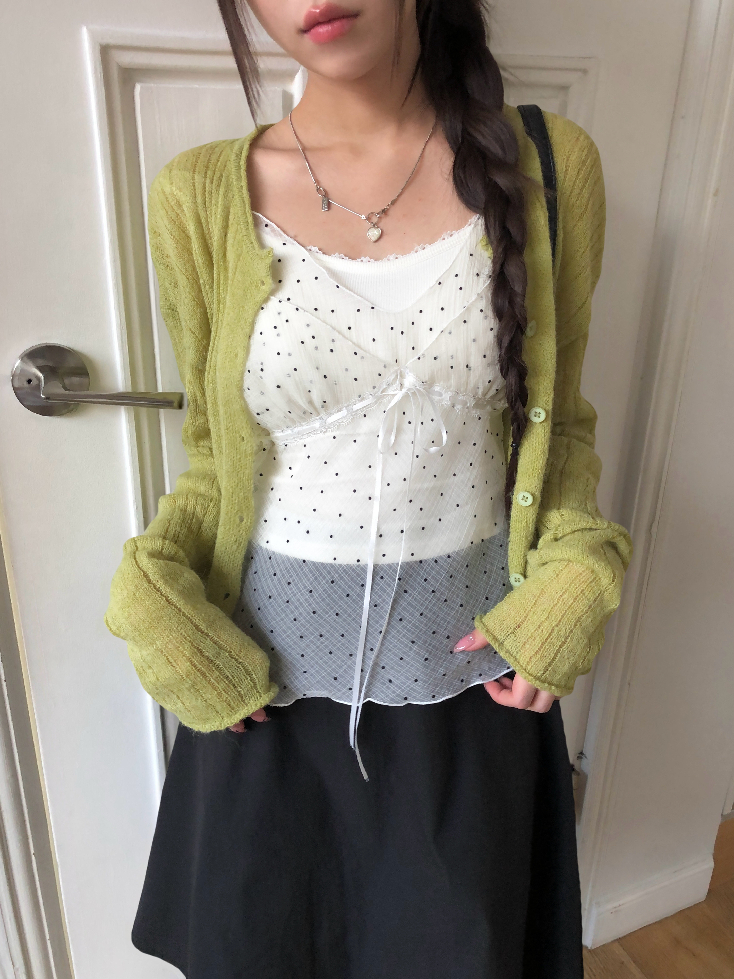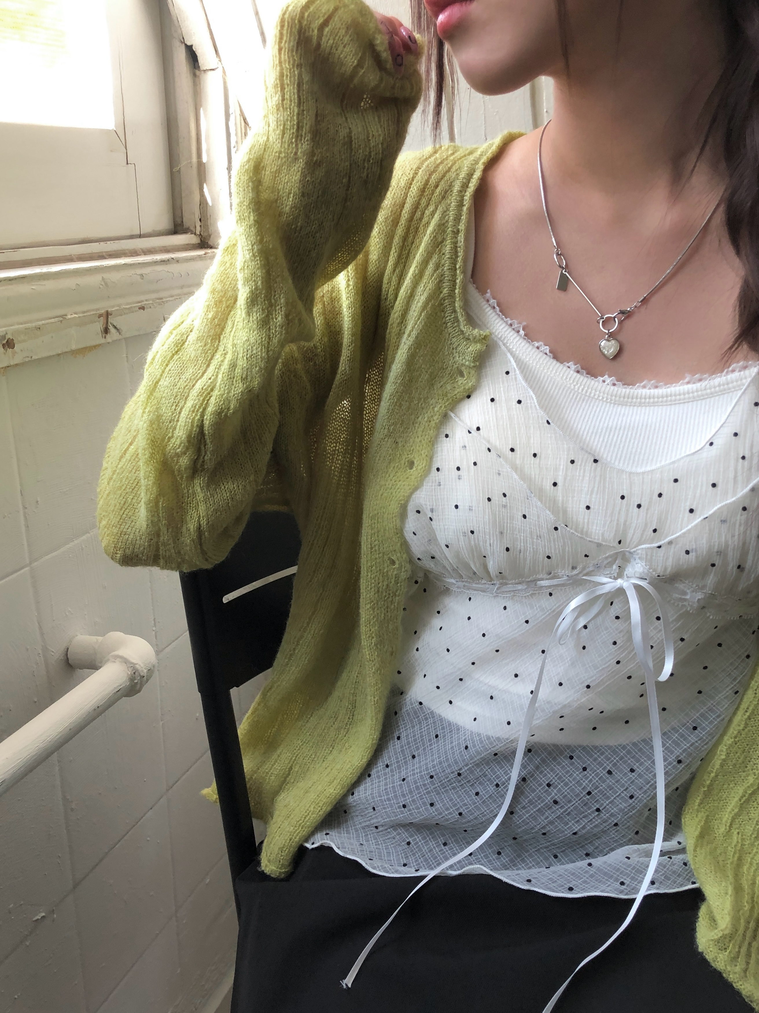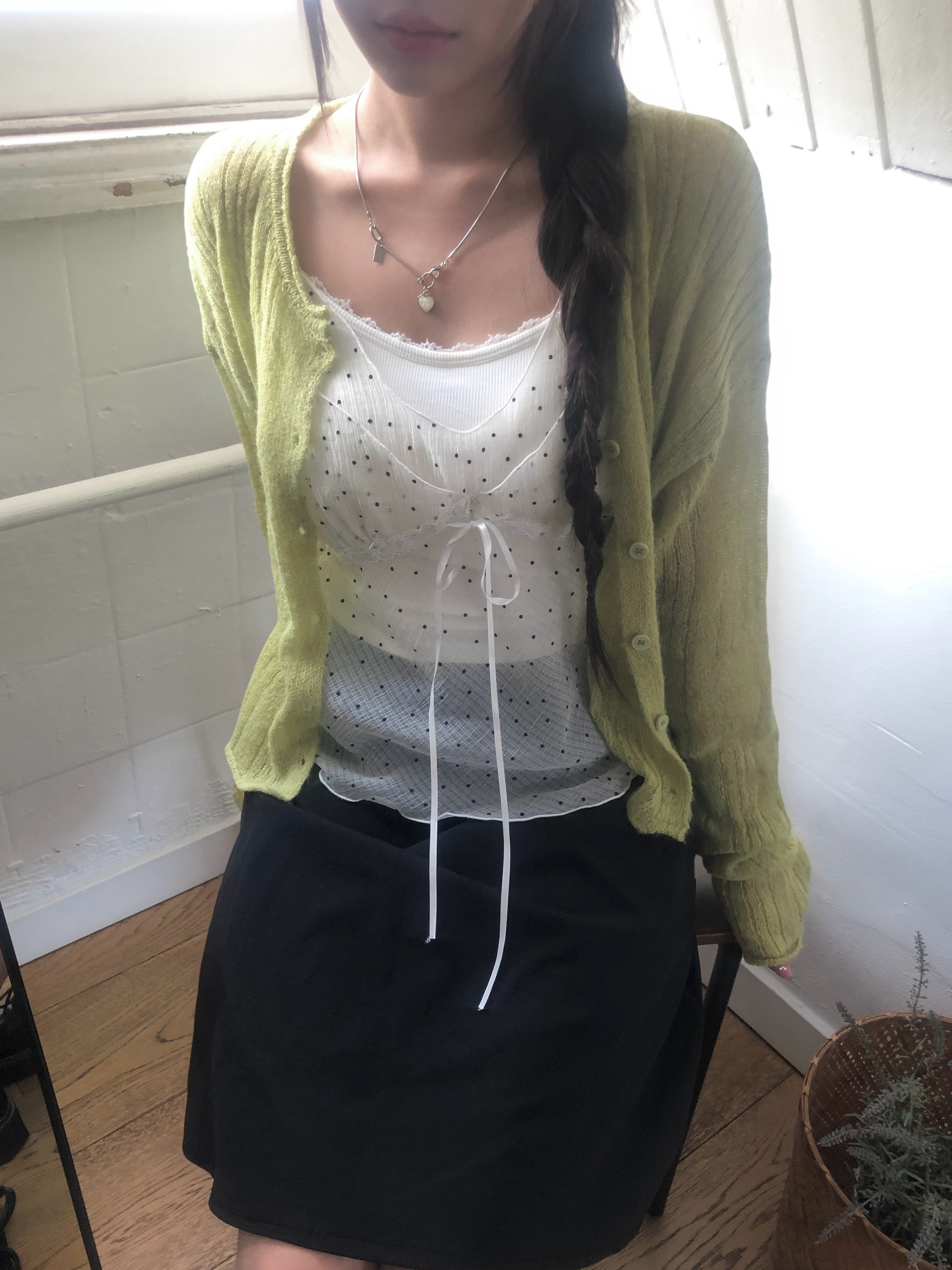 ミニドットリボンシースルーシフォンビスチェ