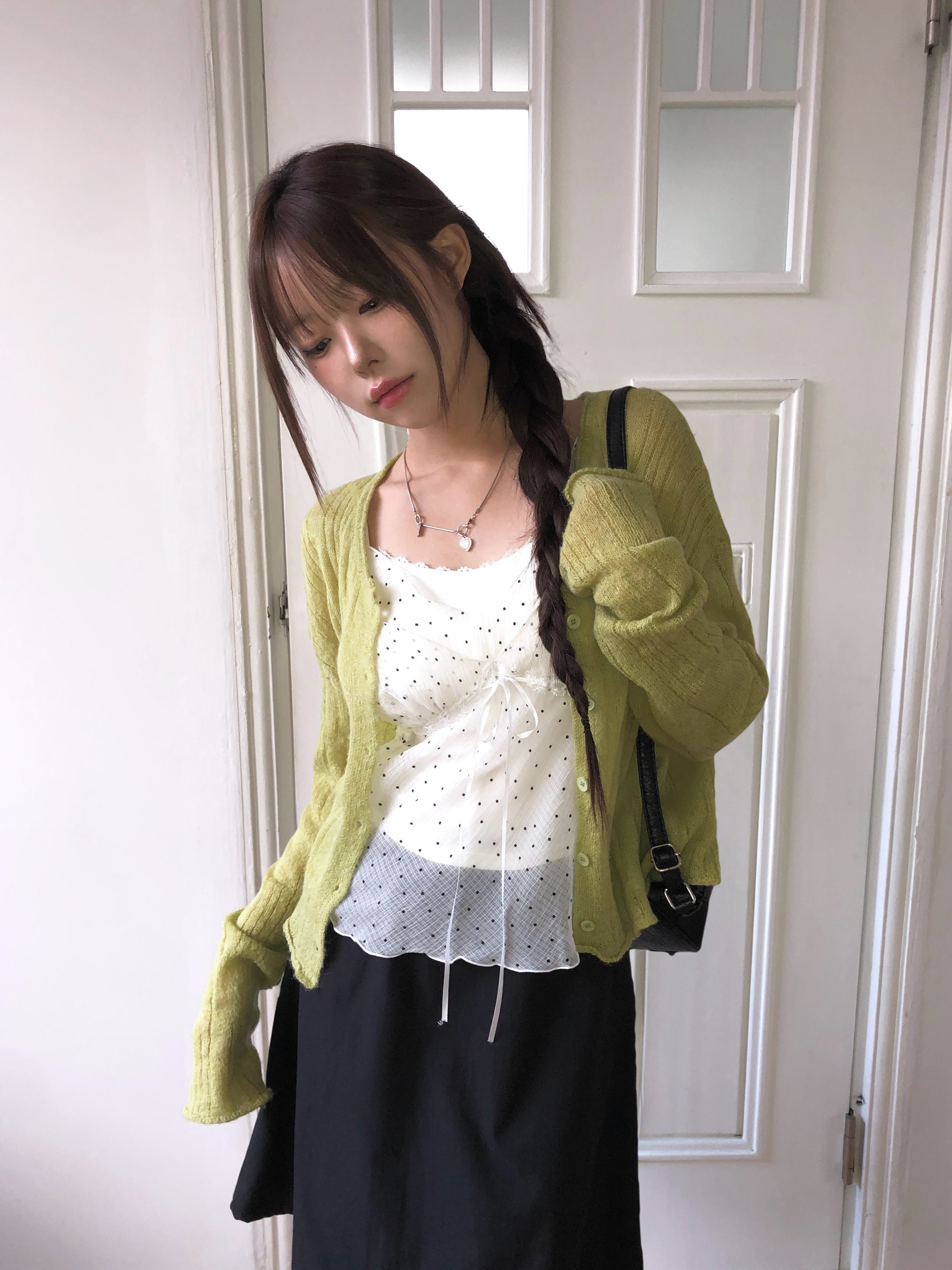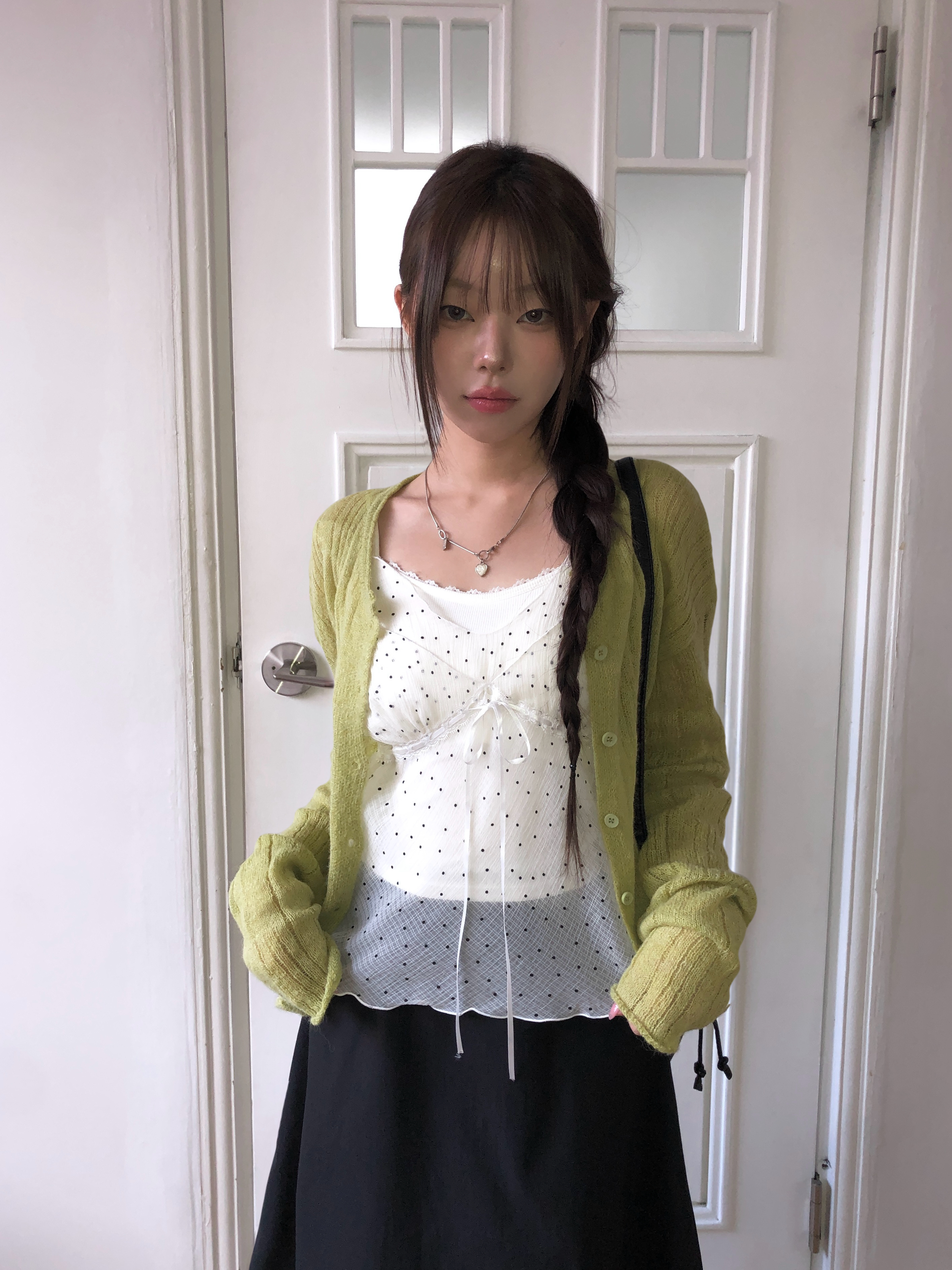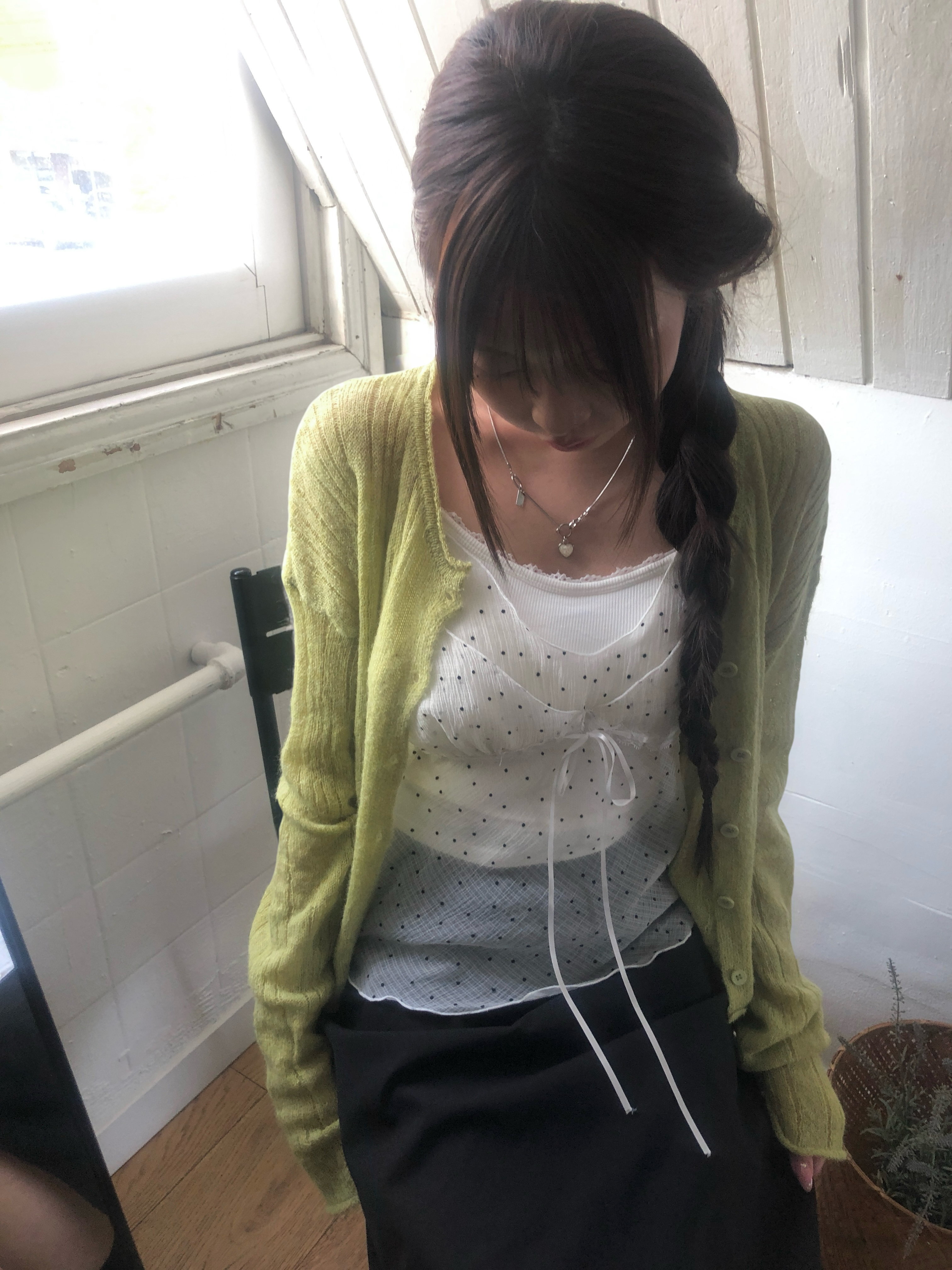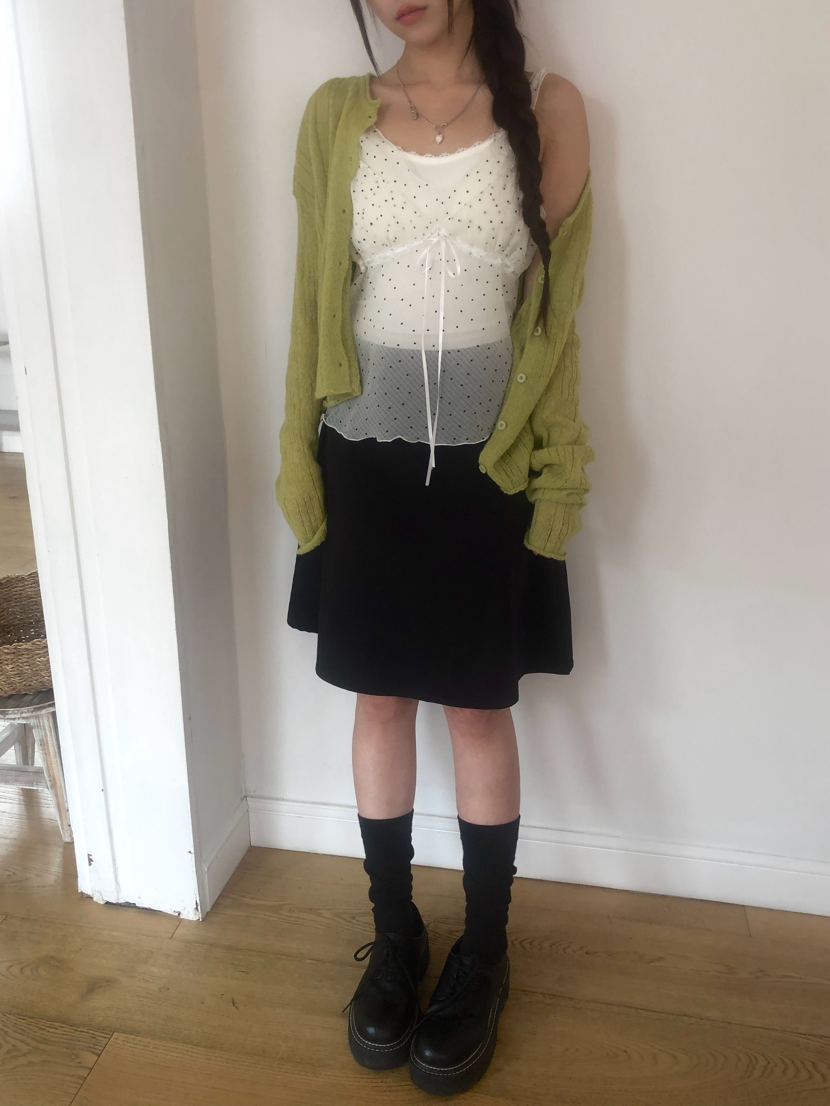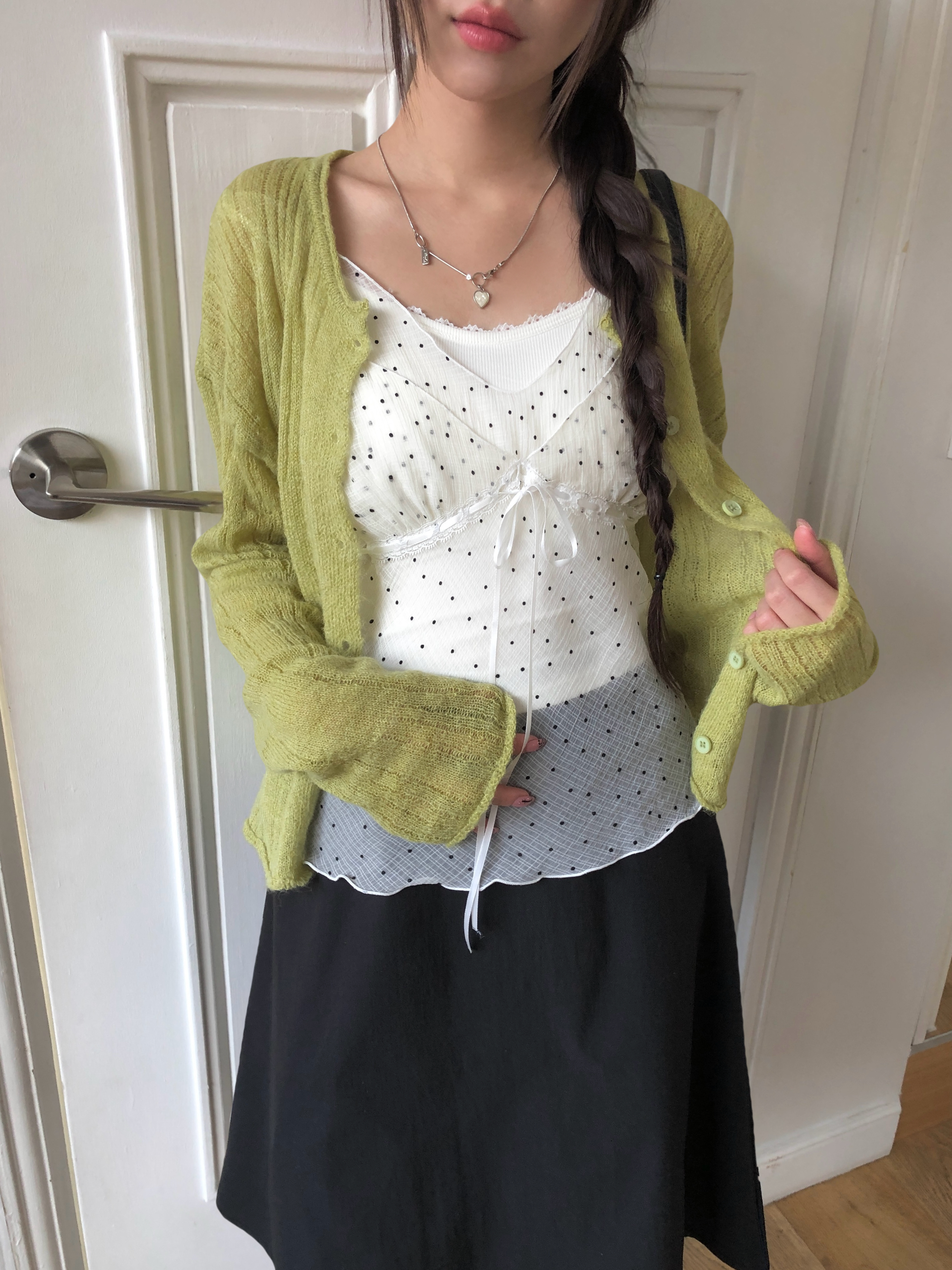 ミニドットリボンシースルーシフォンビスチェ