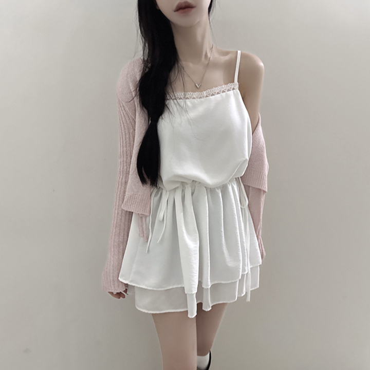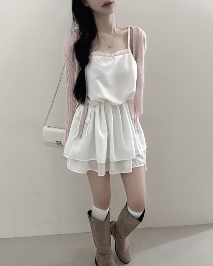 レースシャーリングキャミレイヤードミニワンピース