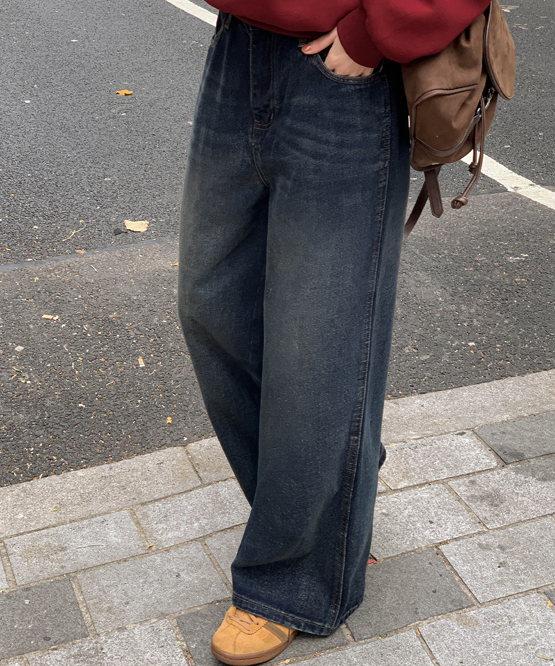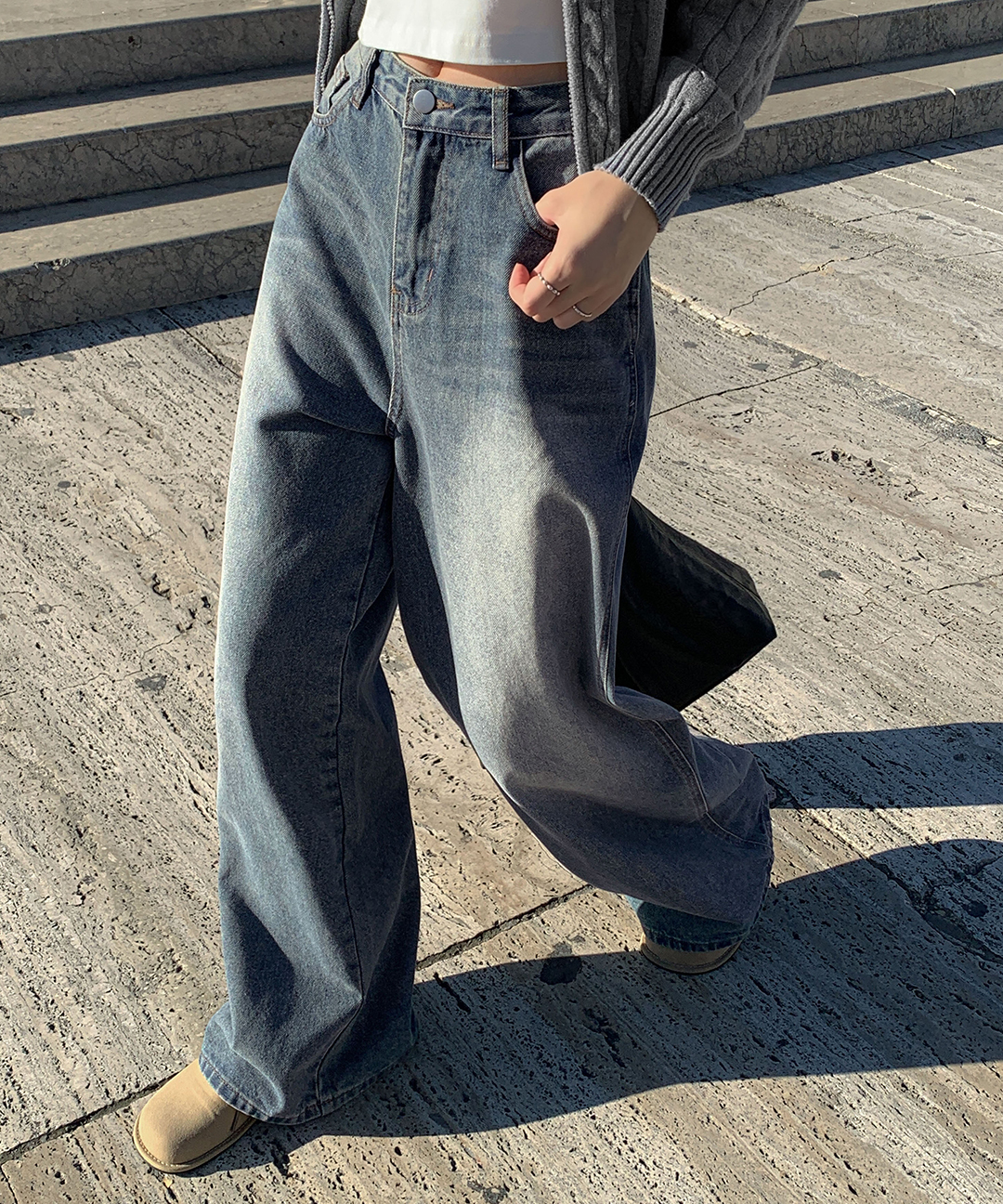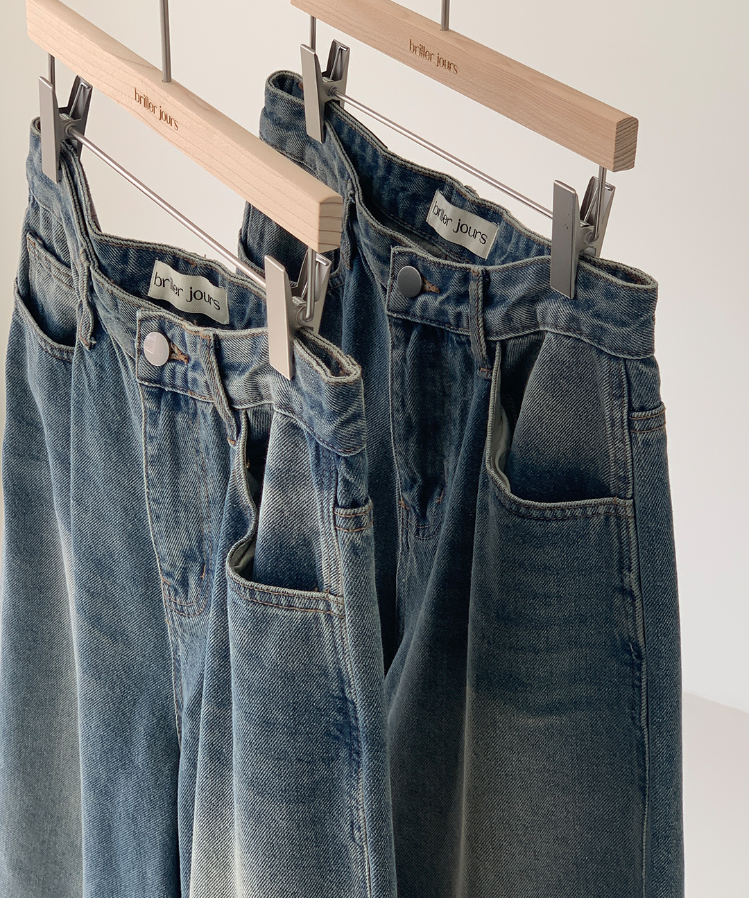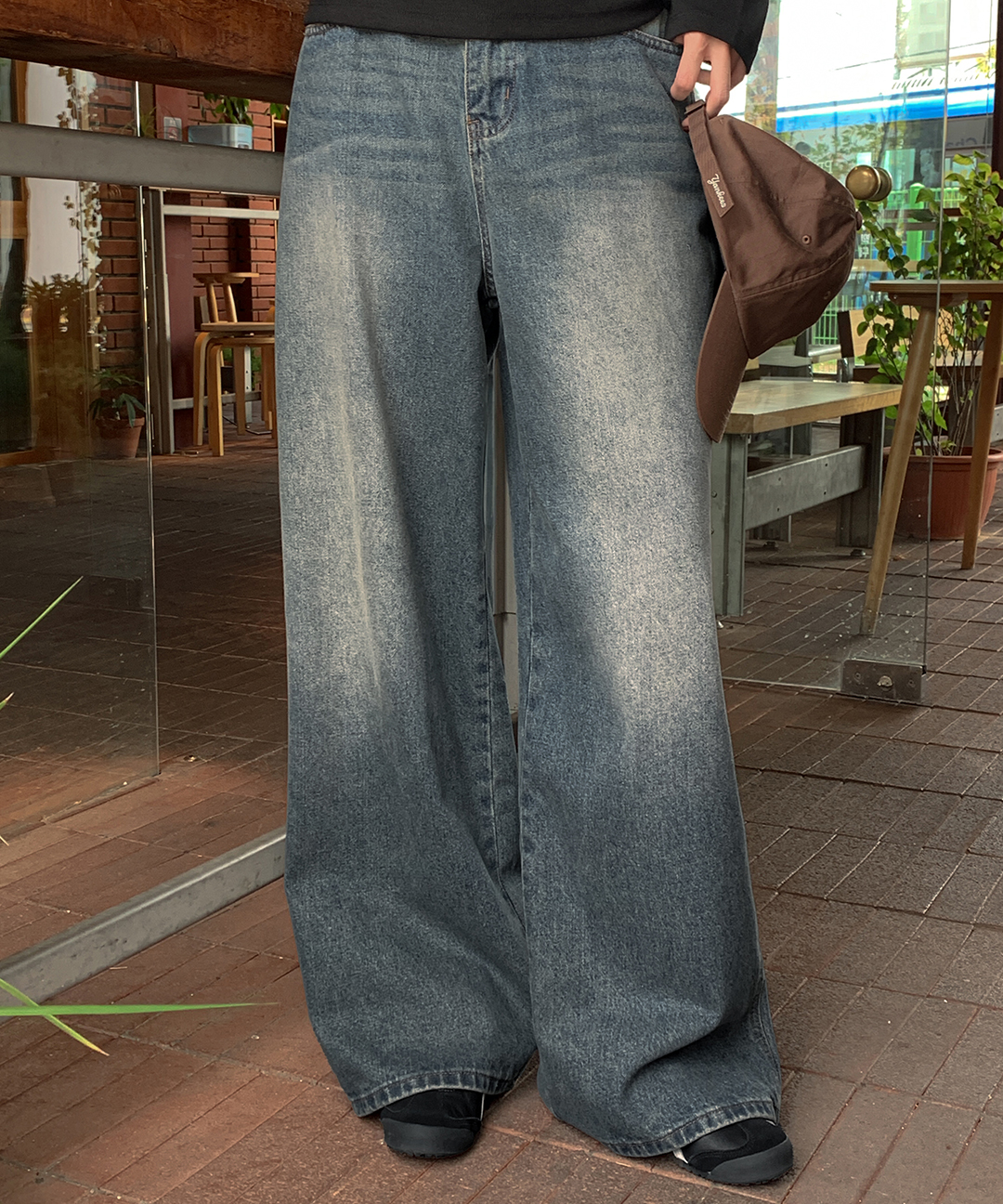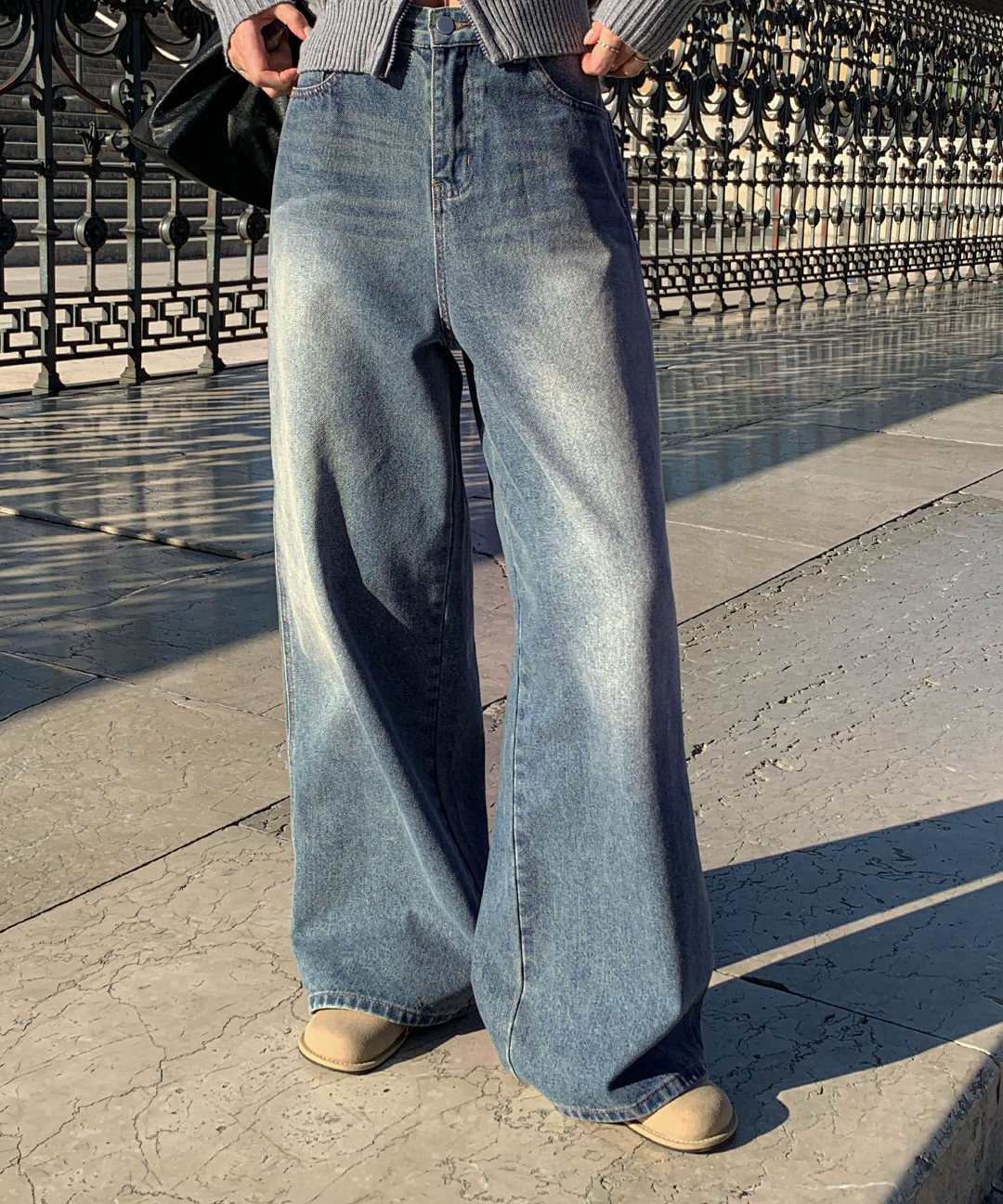 ヴィンテージ ウォッシュ加工 ワイド デニム パンツ