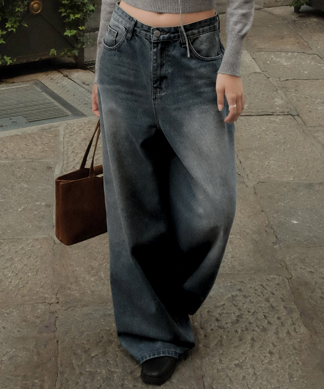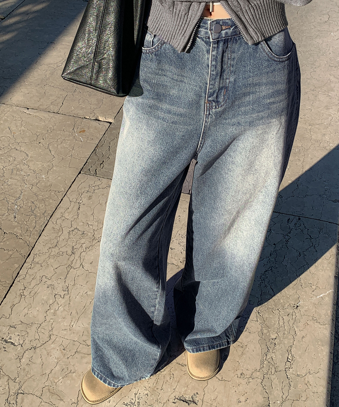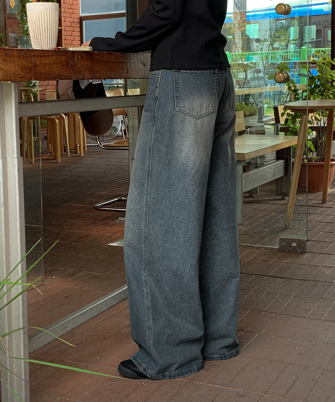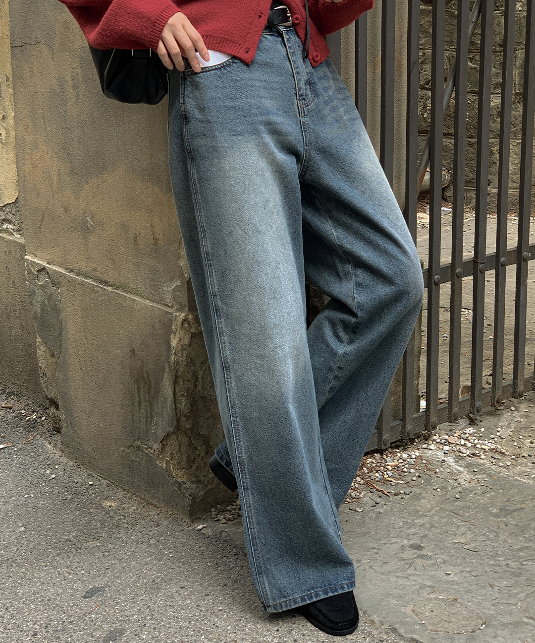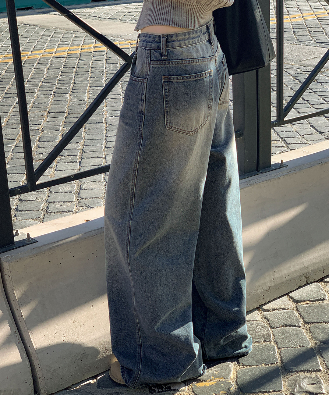 ヴィンテージ ウォッシュ加工 ワイド デニム パンツ