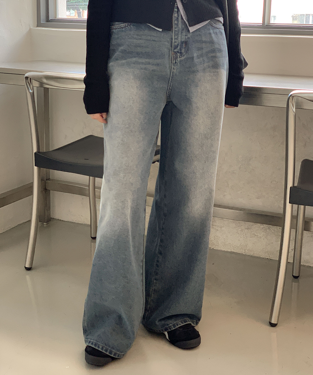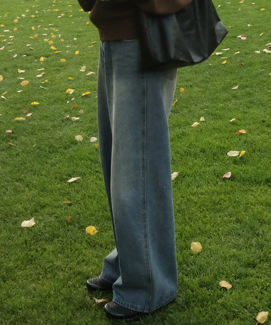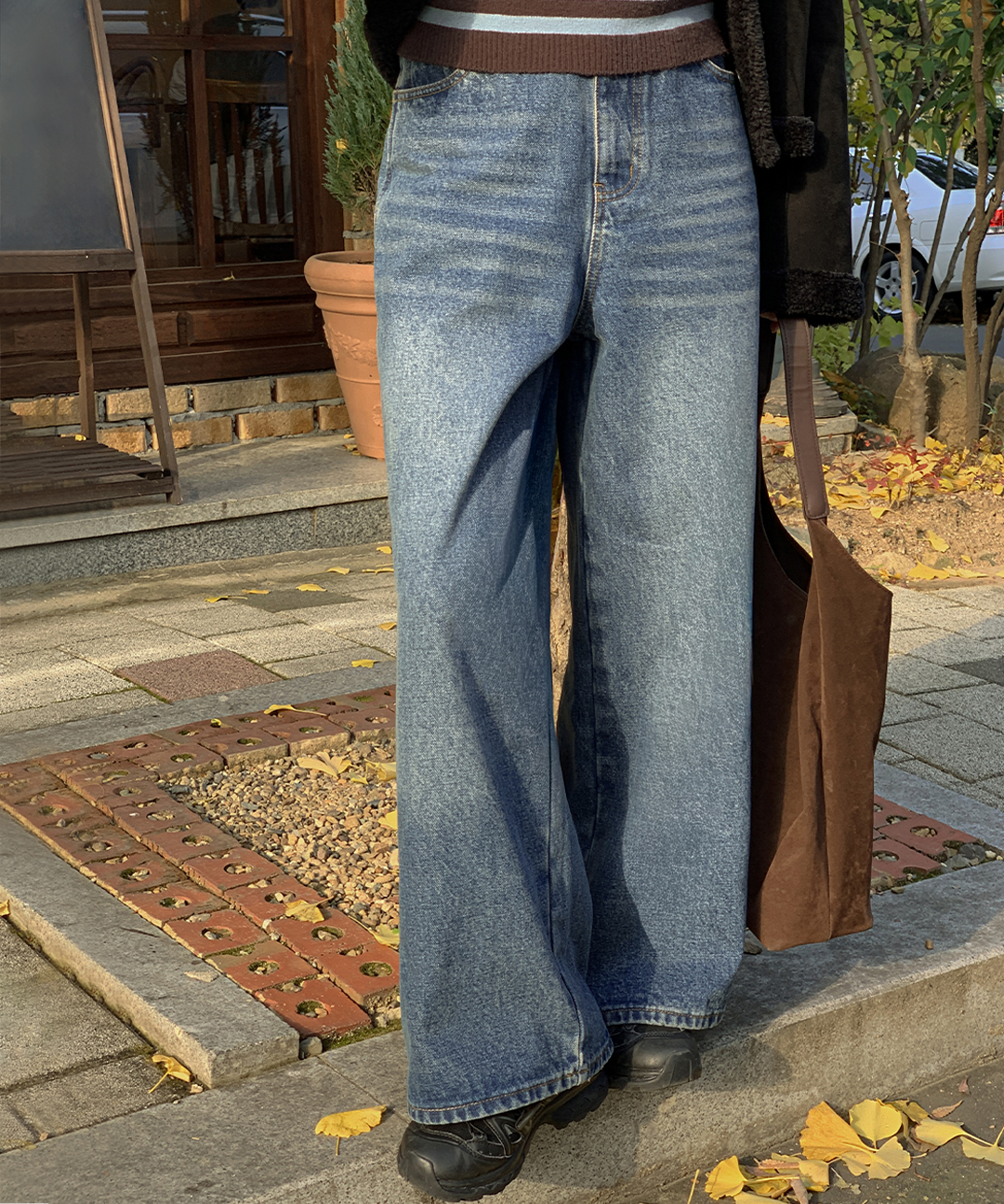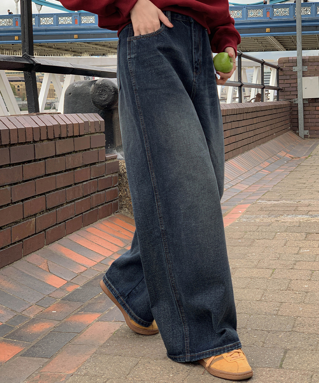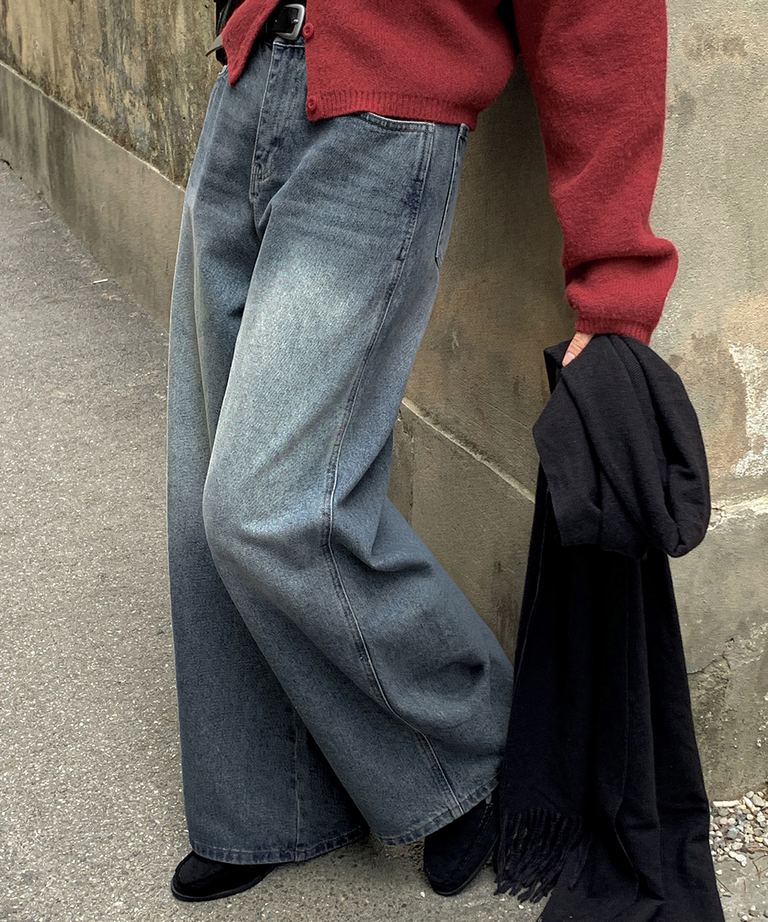 ヴィンテージ ウォッシュ加工 ワイド デニム パンツ