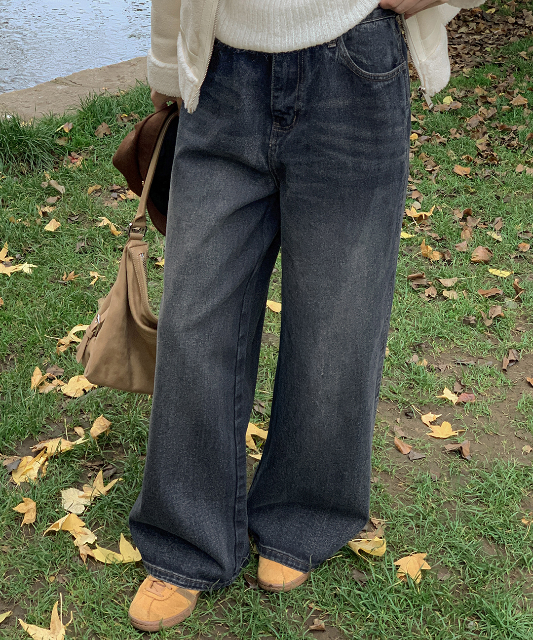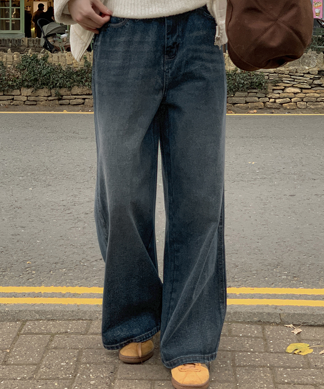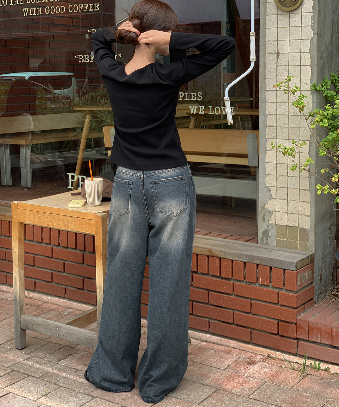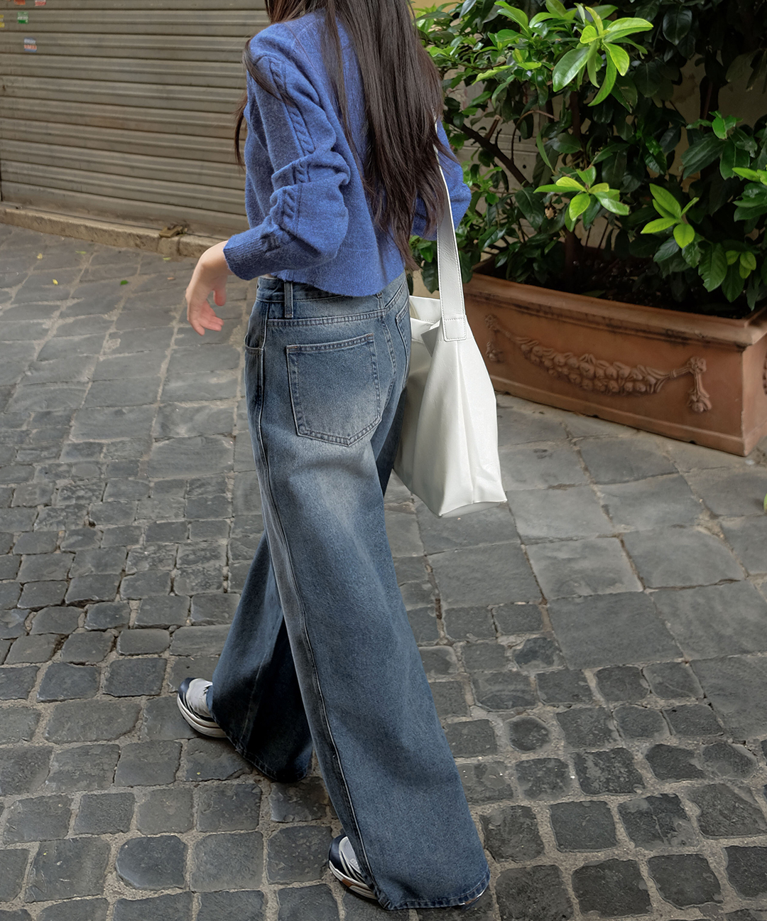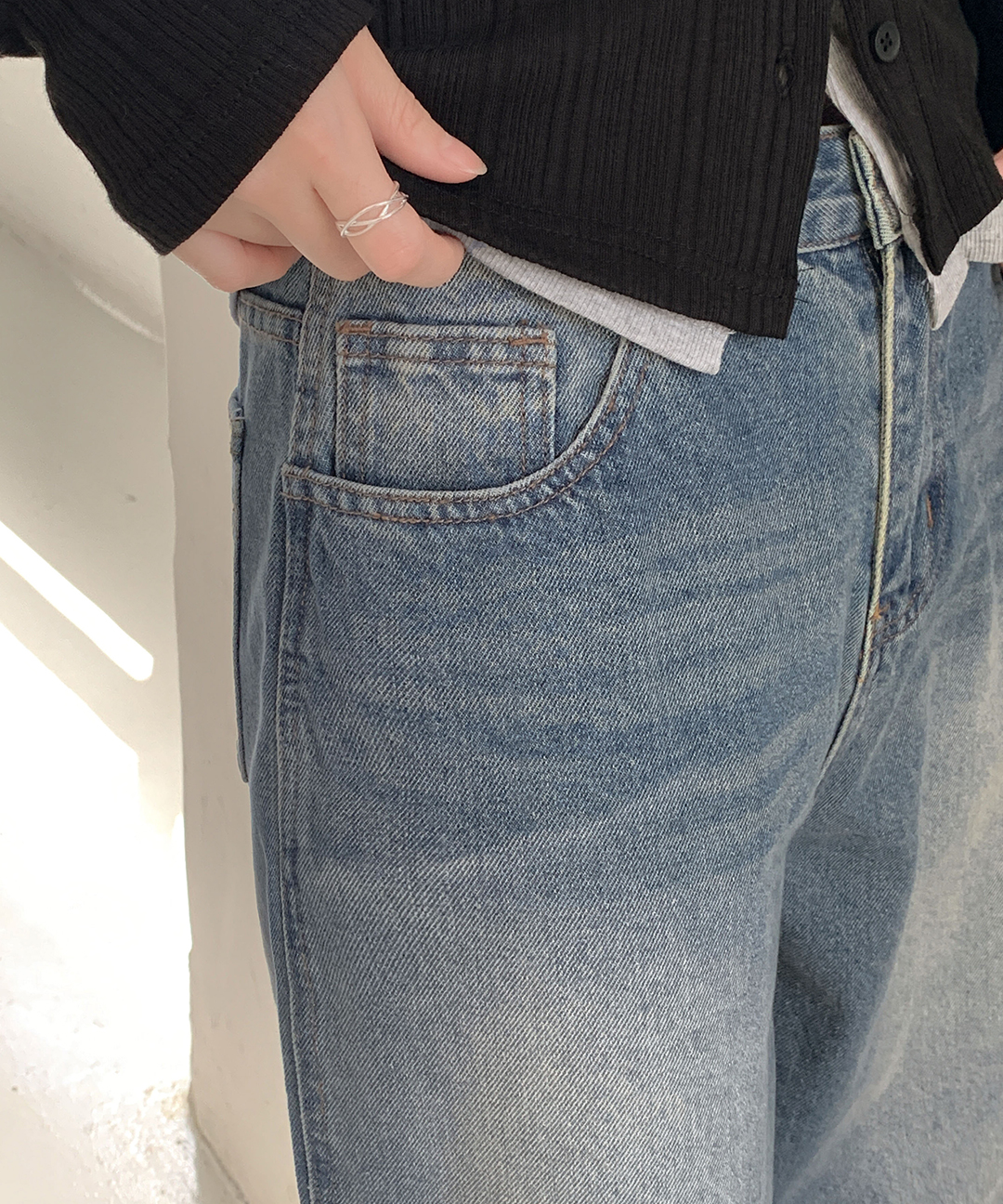 ヴィンテージ ウォッシュ加工 ワイド デニム パンツ