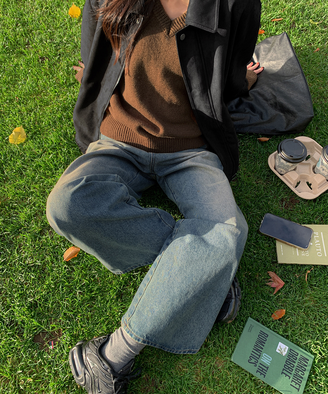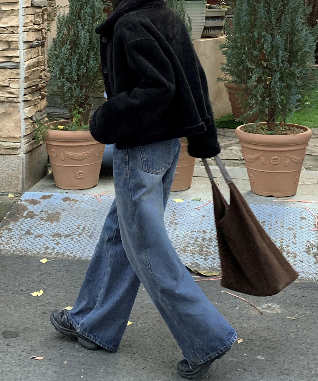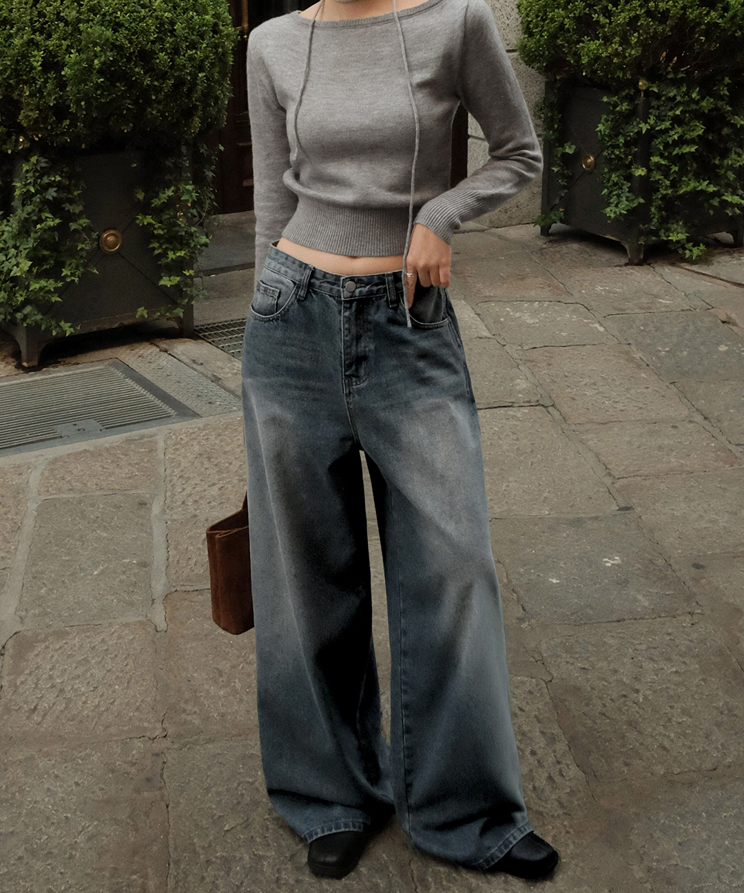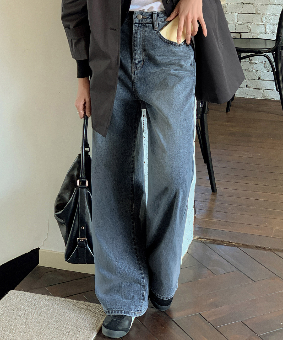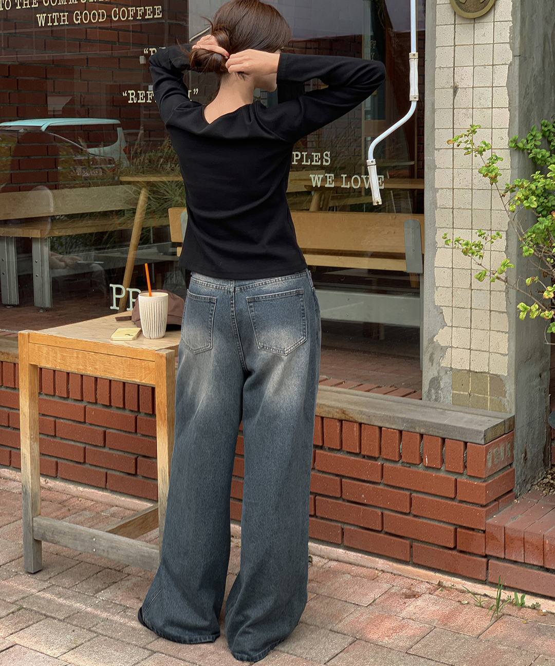 ヴィンテージ ウォッシュ加工 ワイド デニム パンツ