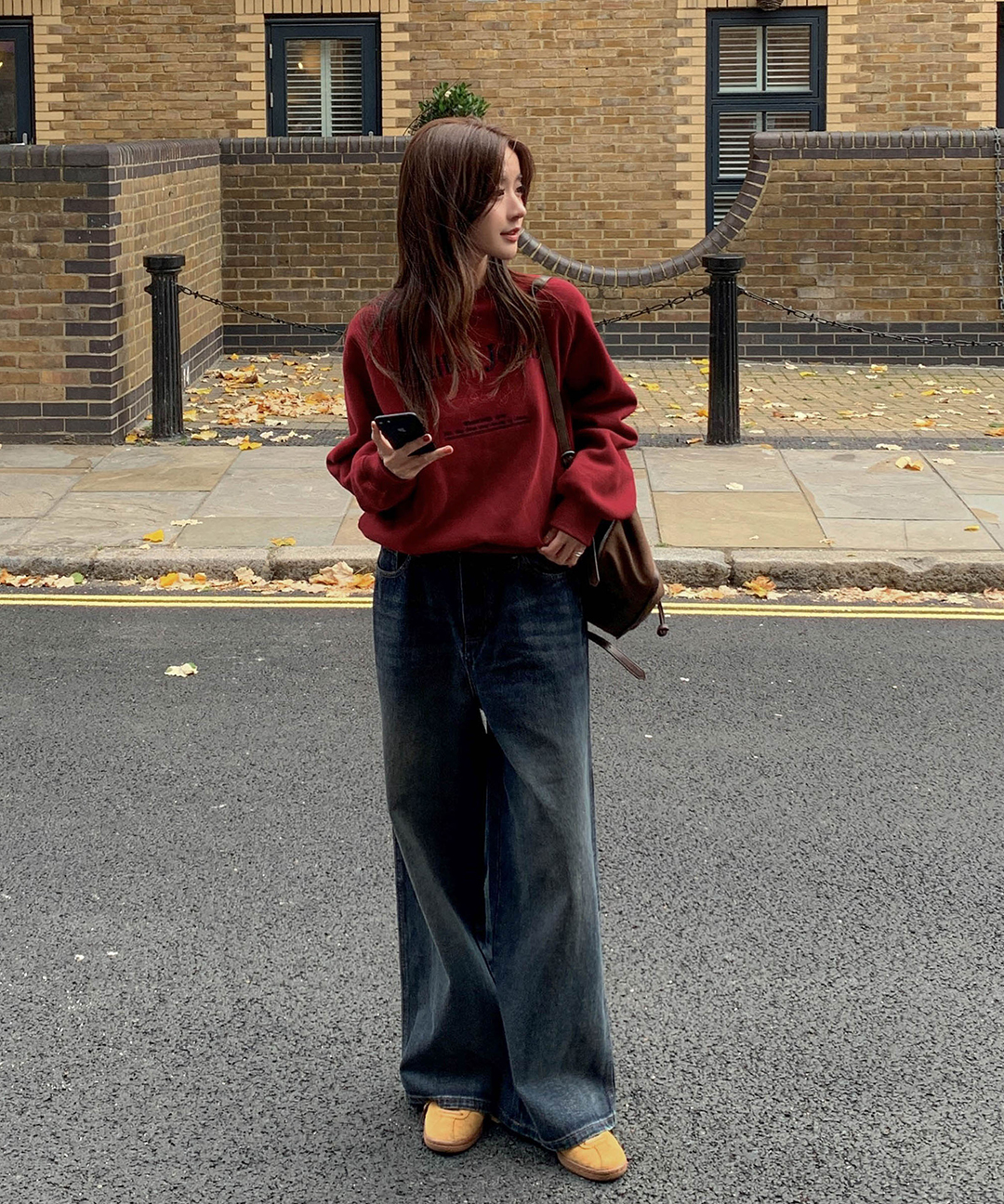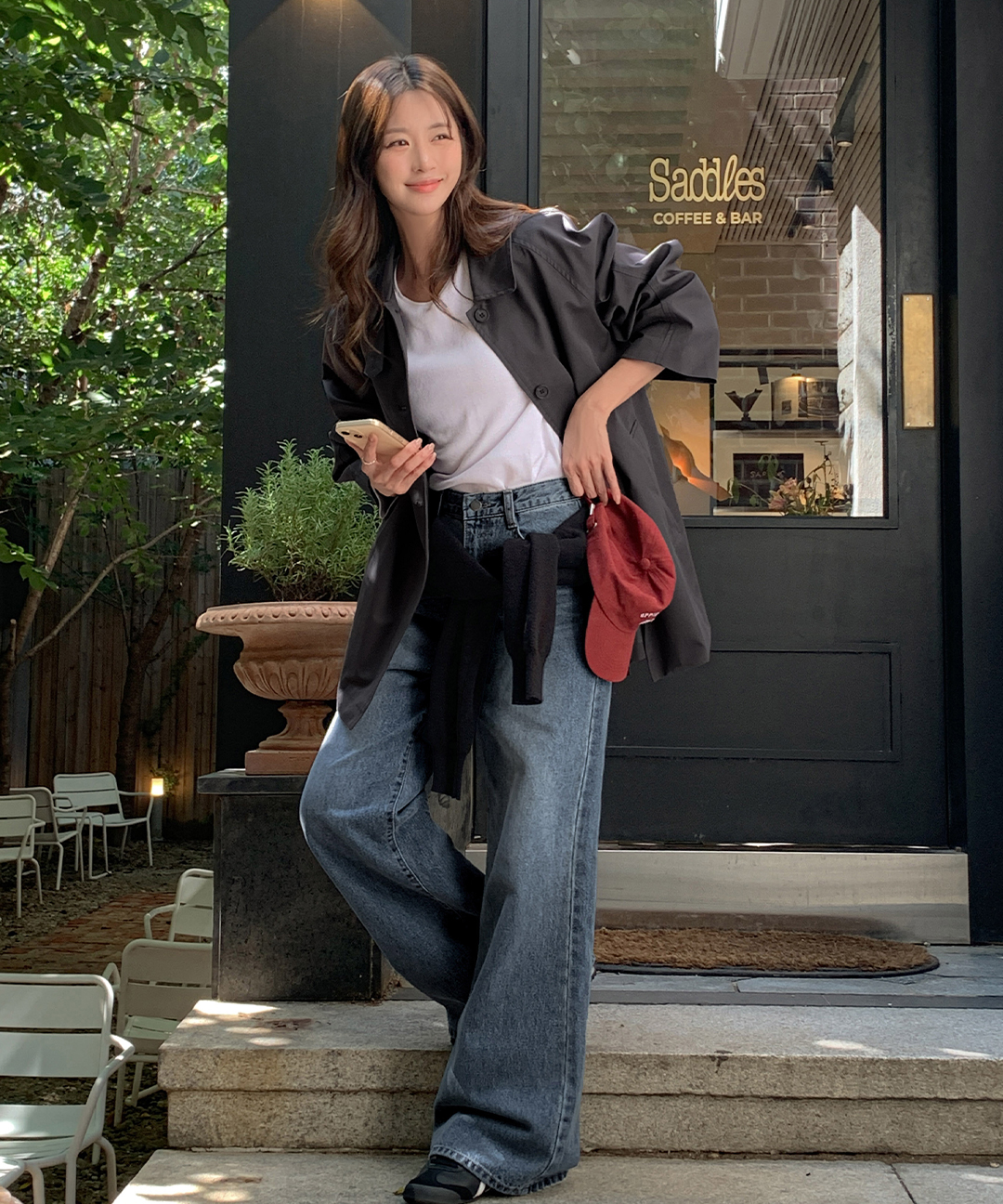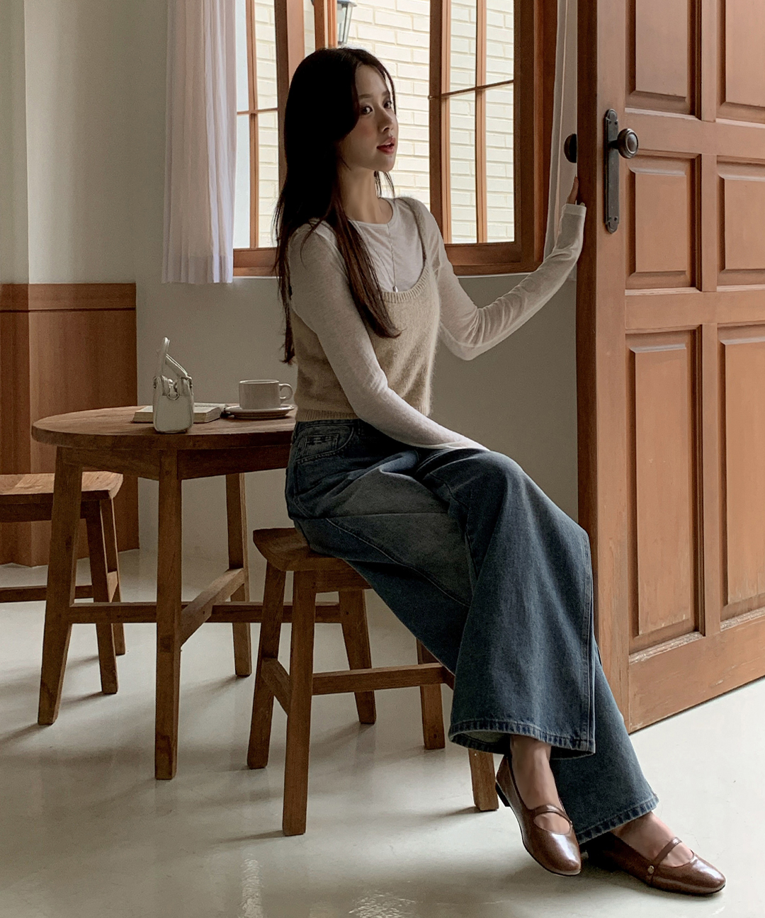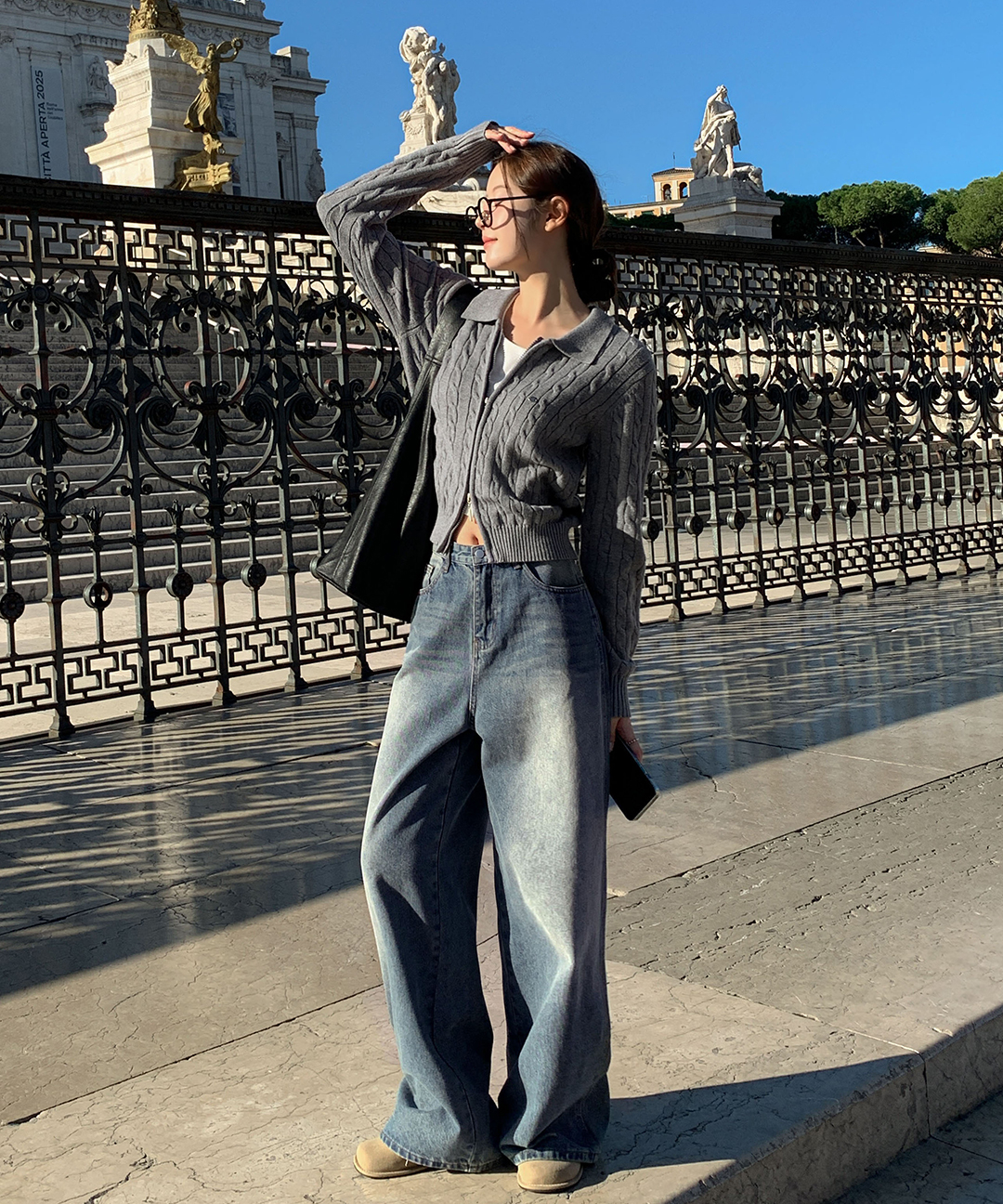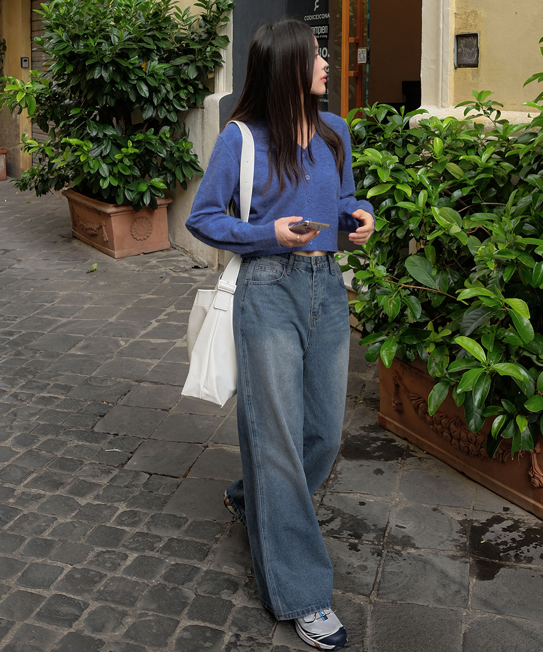 ヴィンテージ ウォッシュ加工 ワイド デニム パンツ