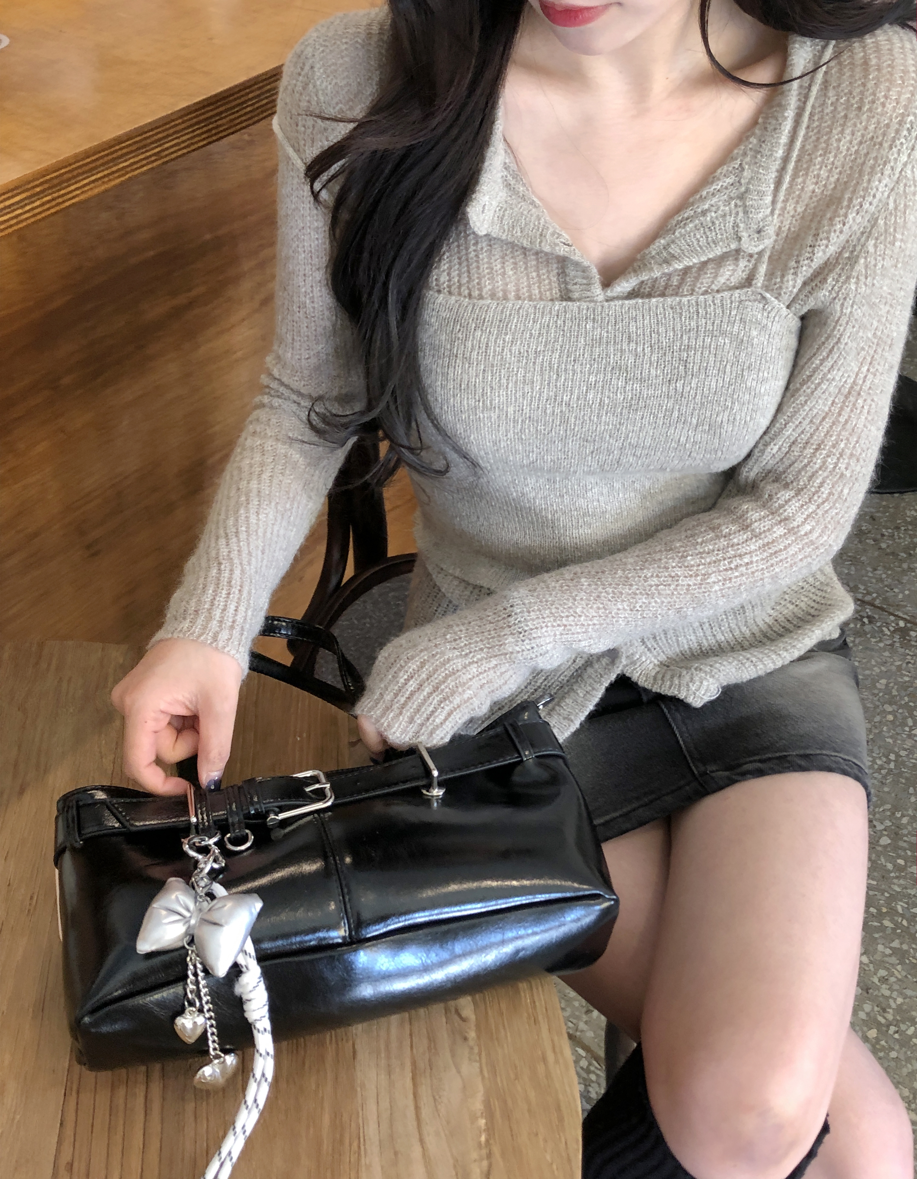 [チャームSET]ベルトレザートートバッグ/ショルダーバッグ