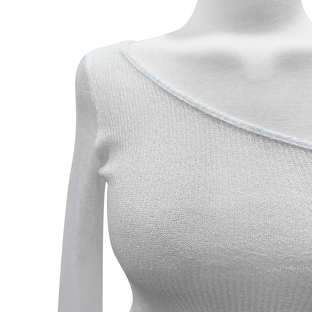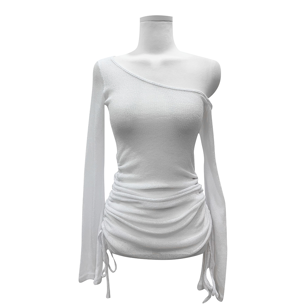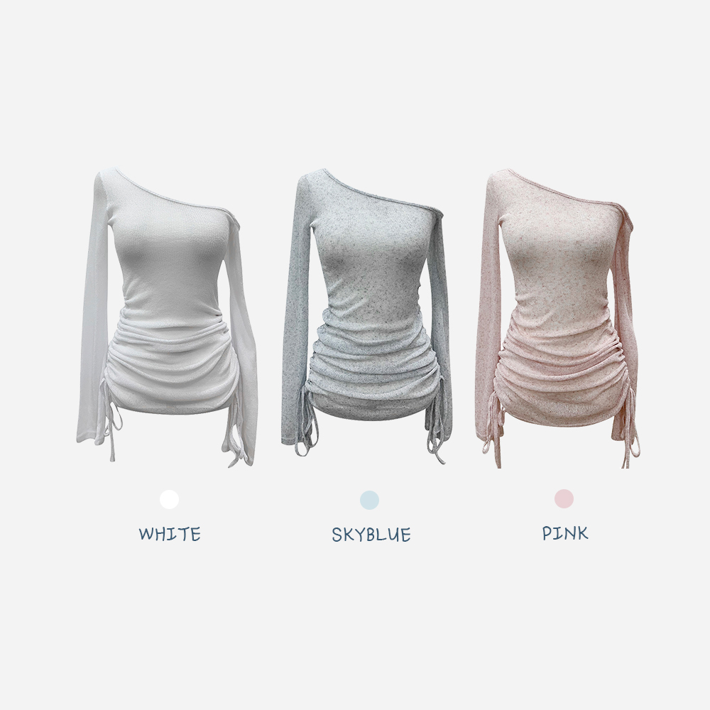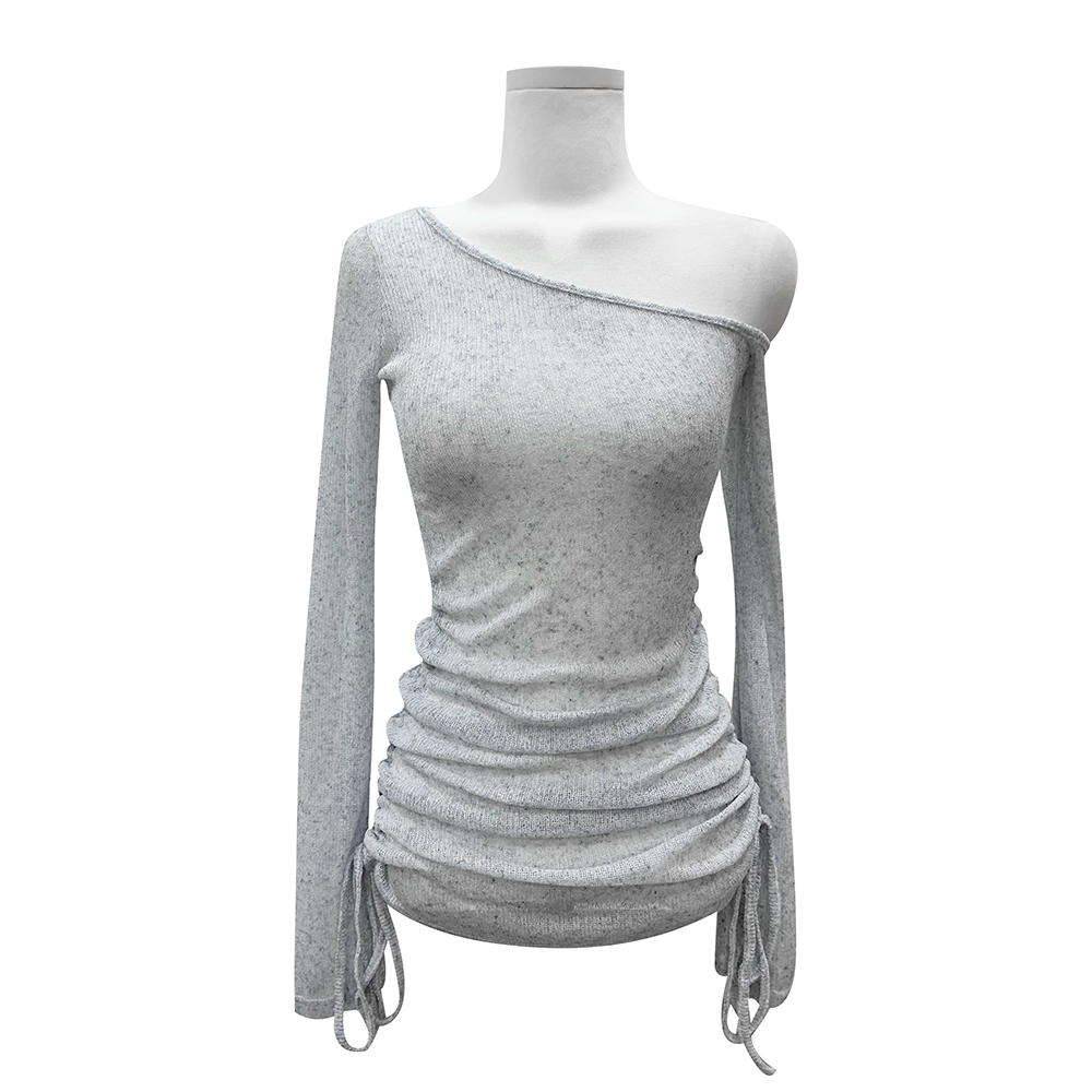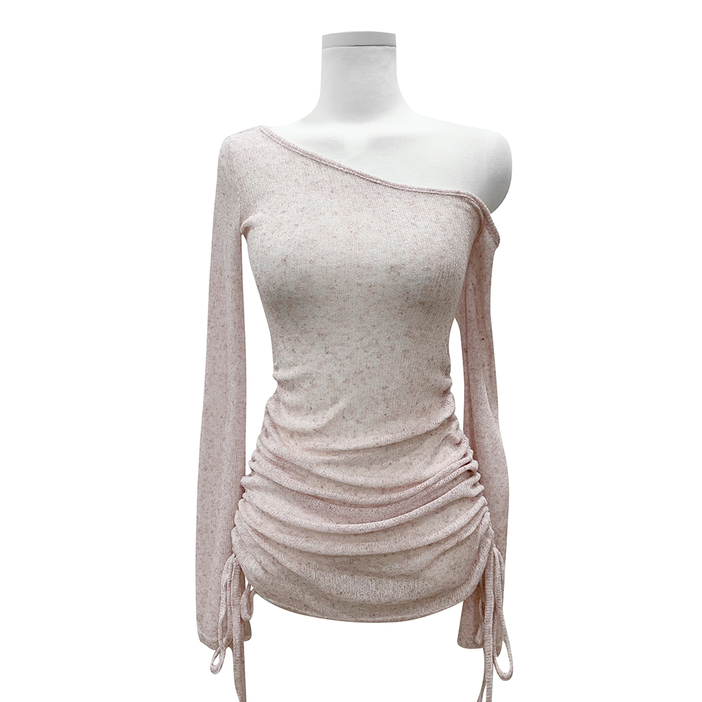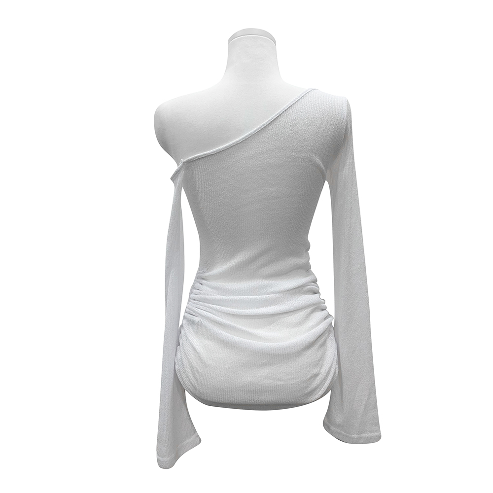 フェミニンなワンオフショルダーネックで、