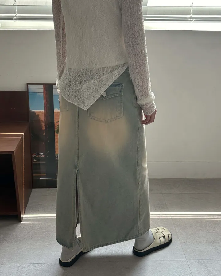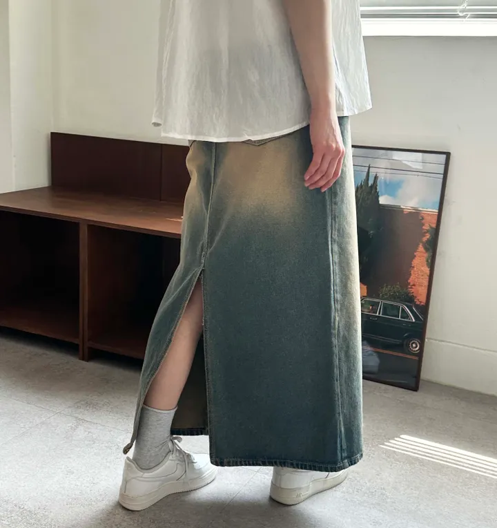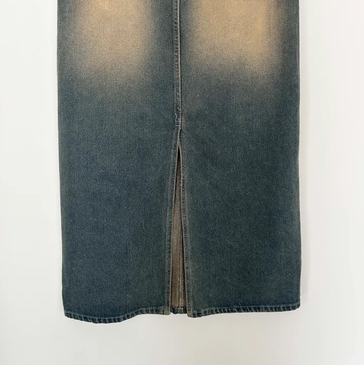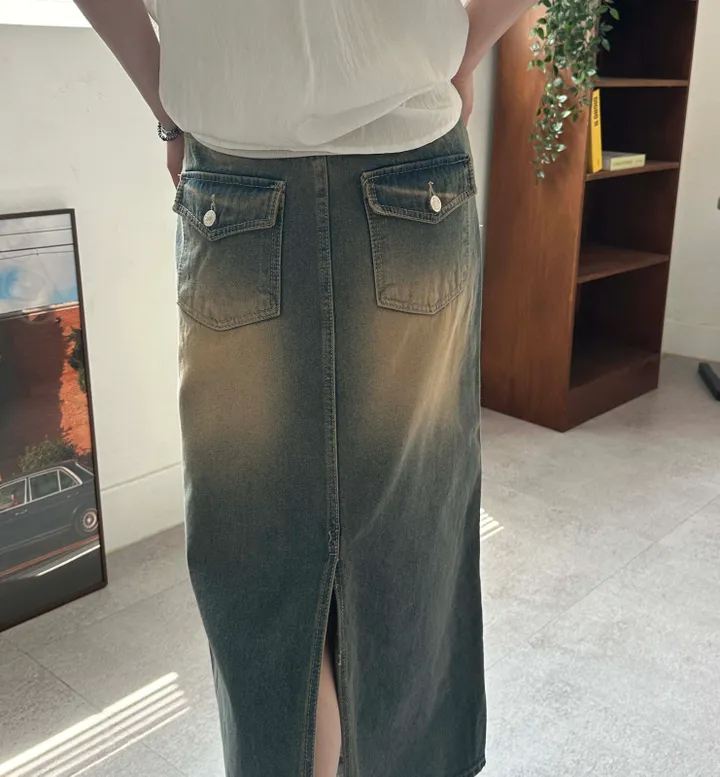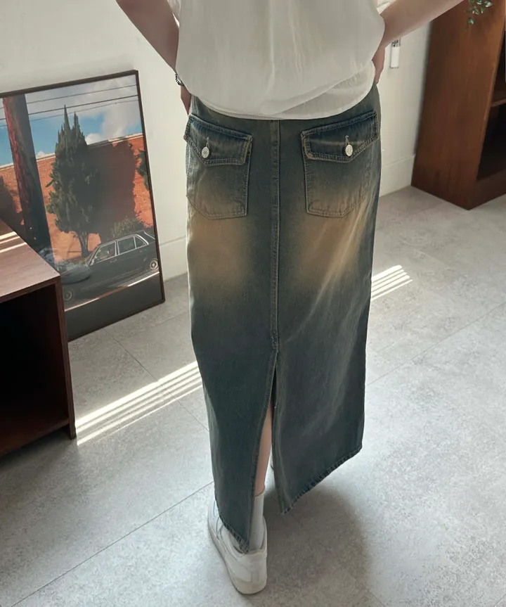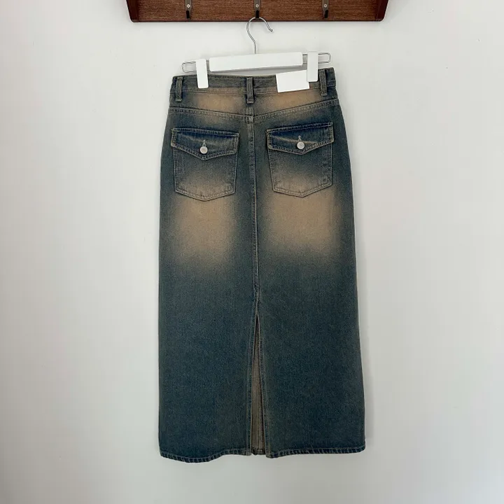 ヴィンテージウォッシュポケットスリットロングデニムスカート[2color]