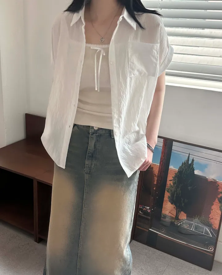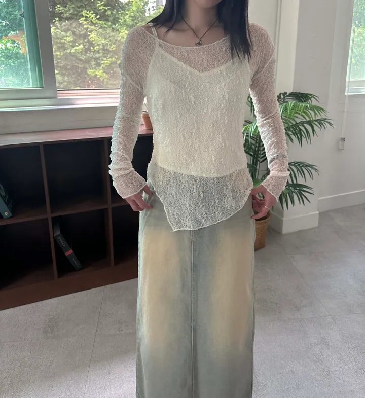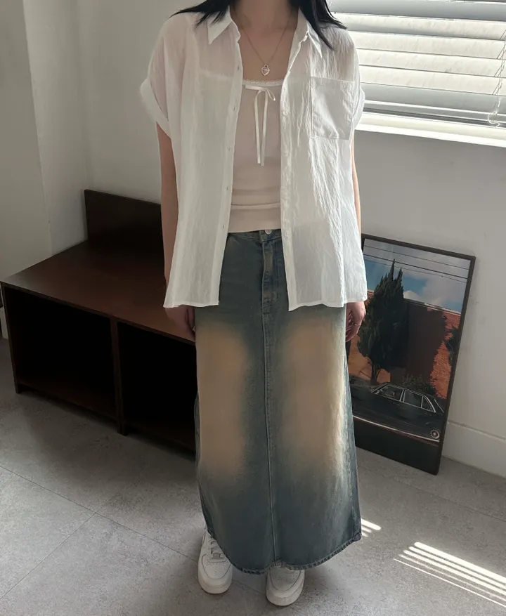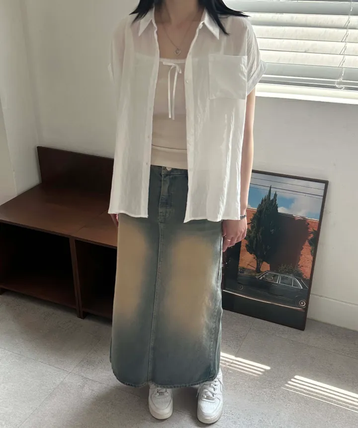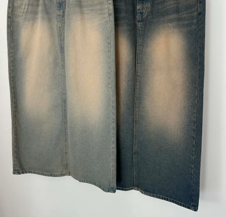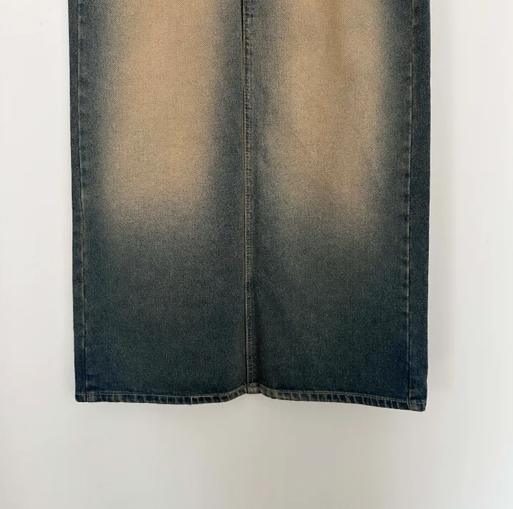 ヴィンテージウォッシュポケットスリットロングデニムスカート[2color]