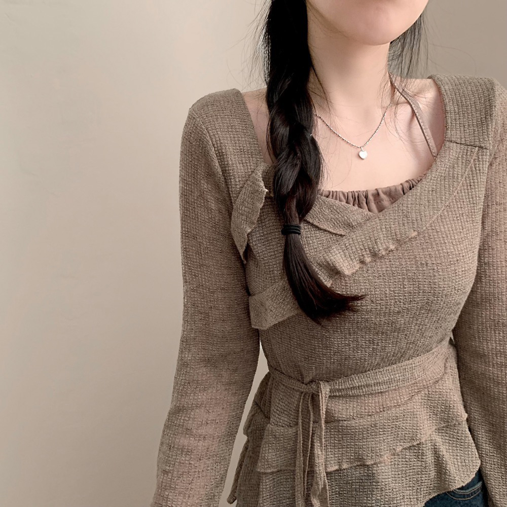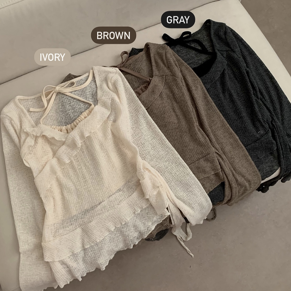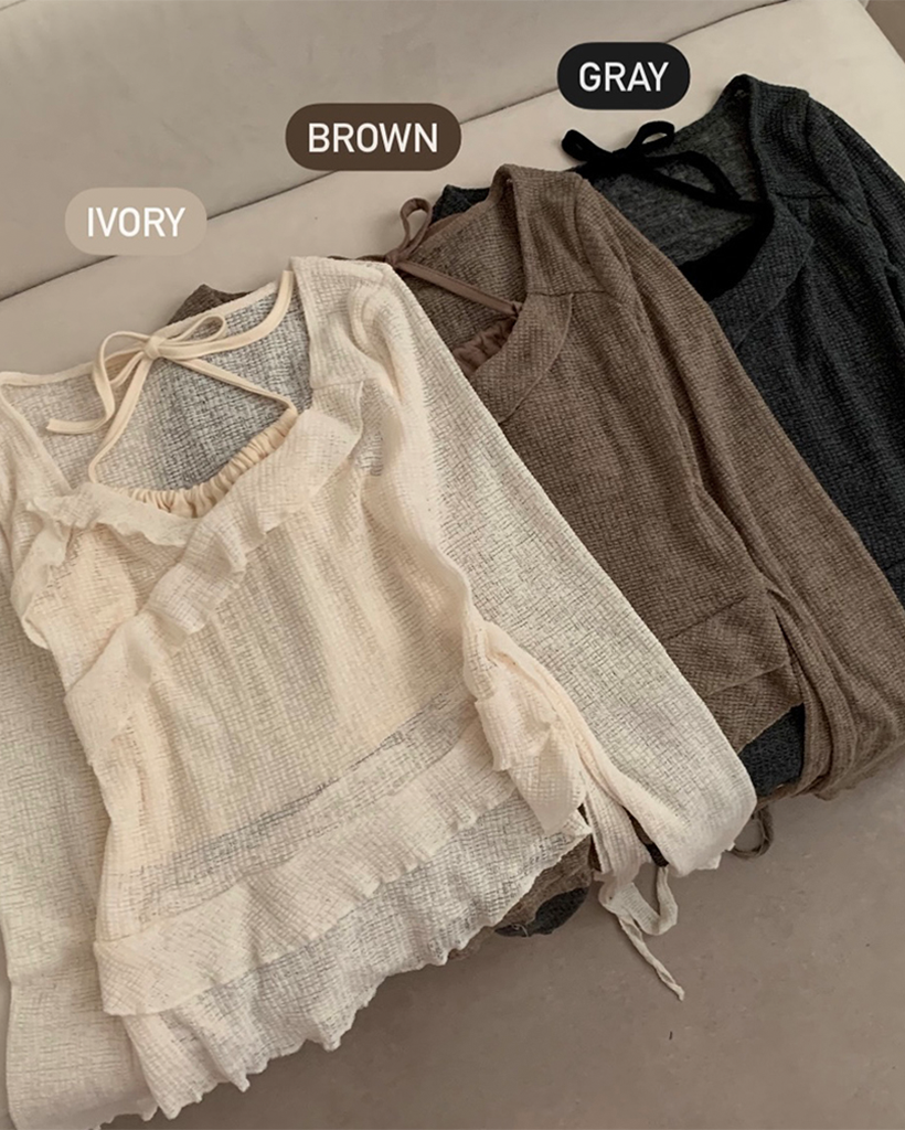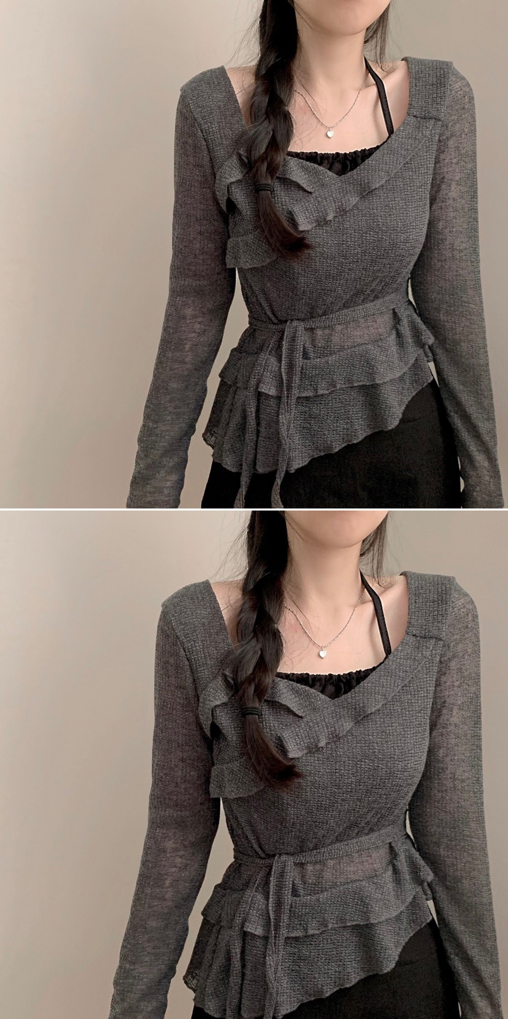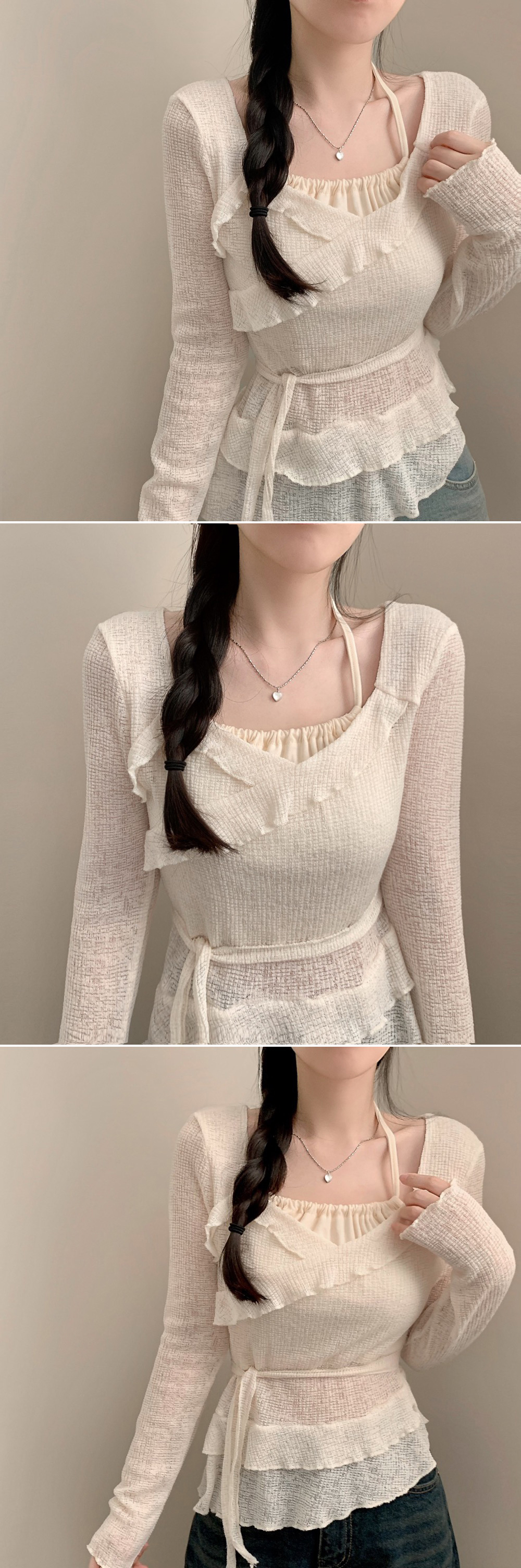 ホルターキャミソールフリル斜めストライプアンバランスTシャツ