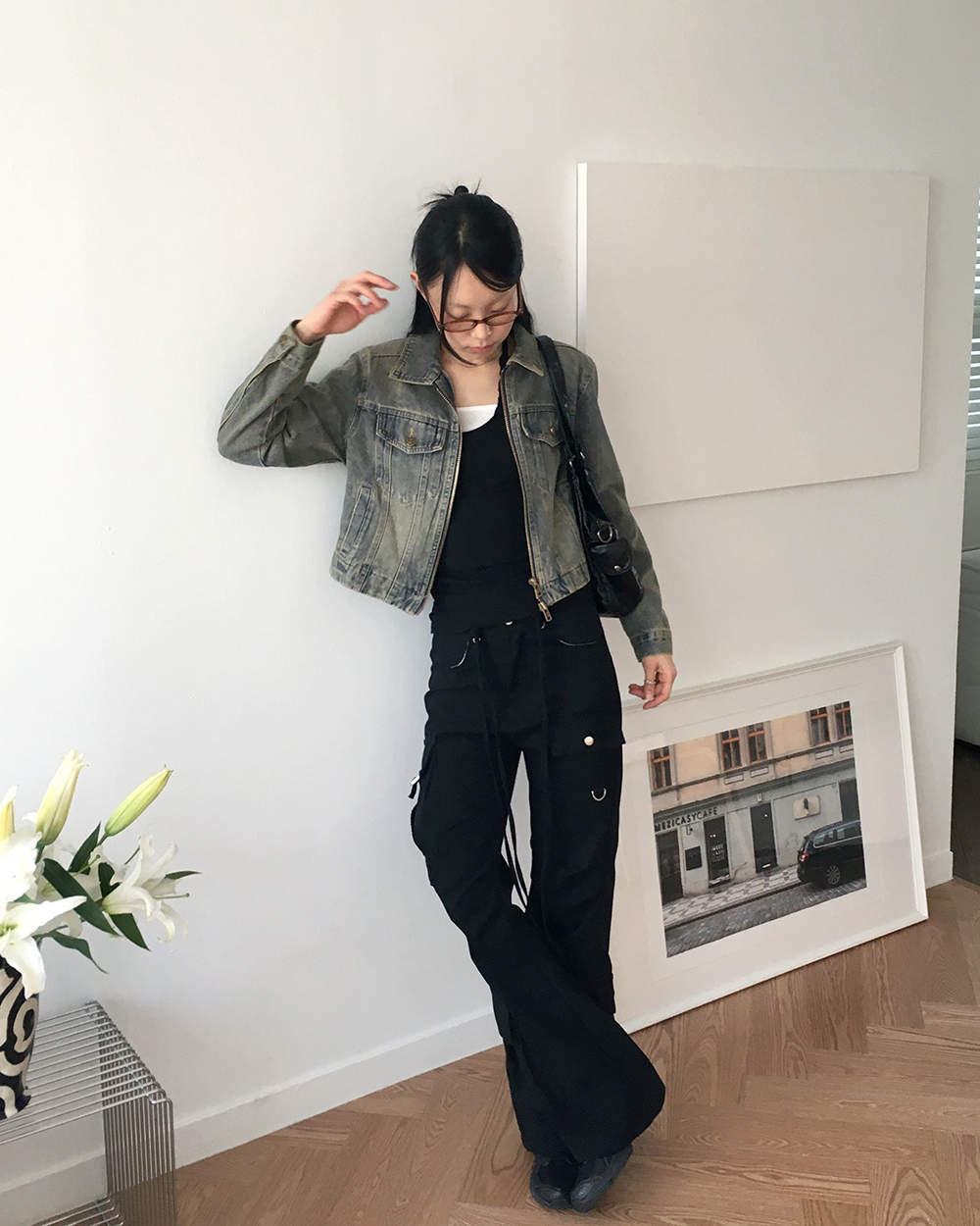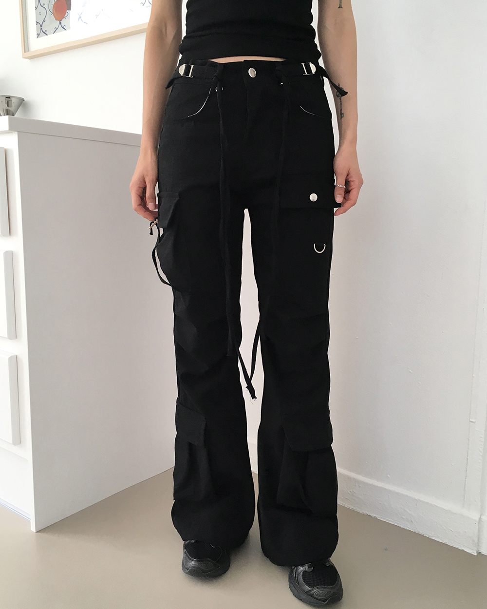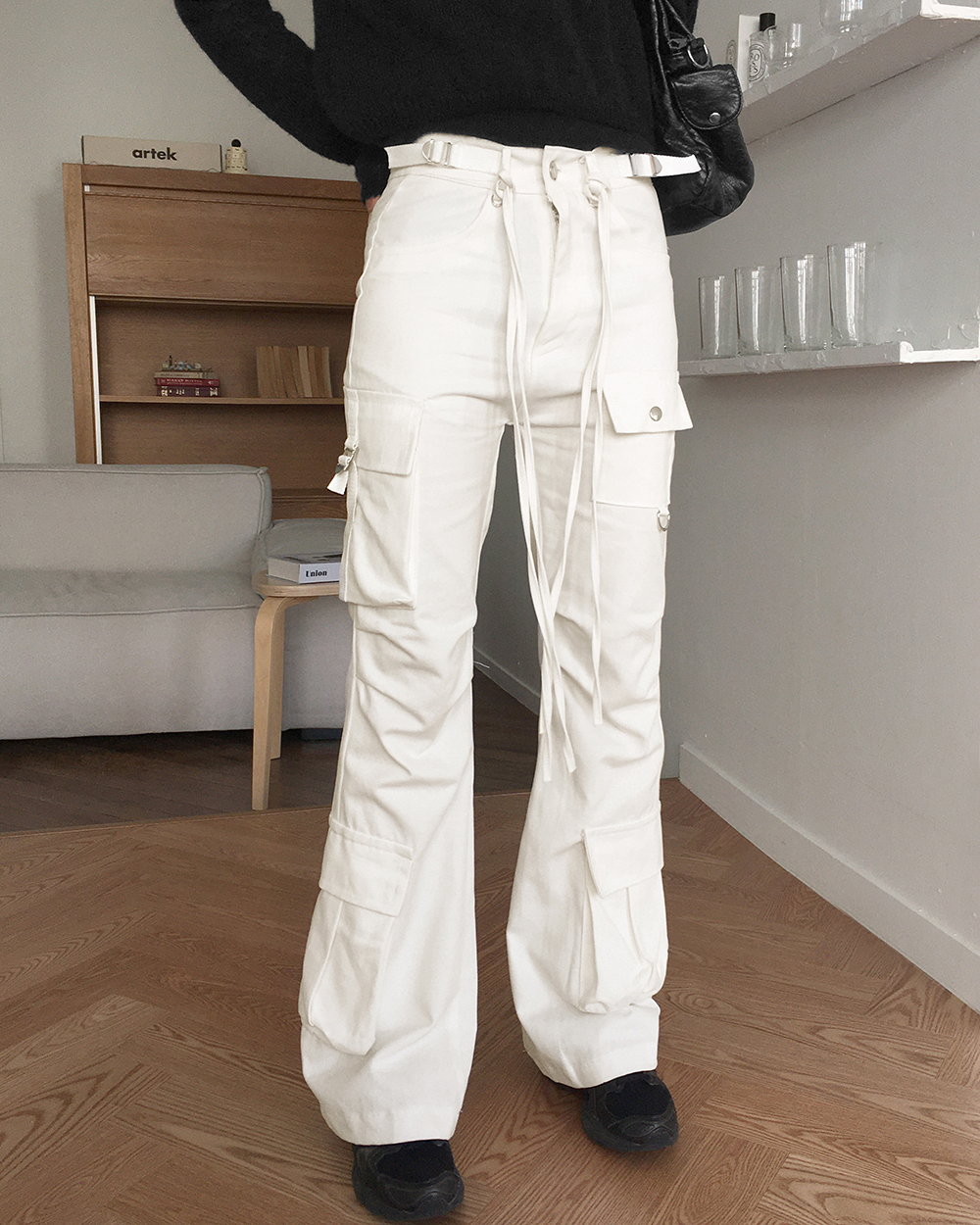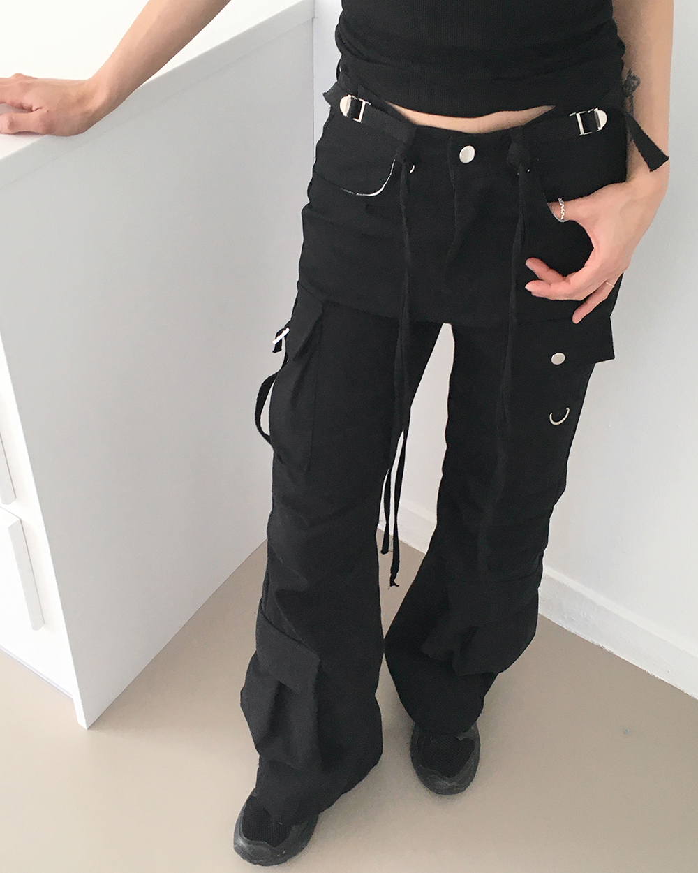 [original]サイドバックルポケットカーゴセミブーツカットパンツ