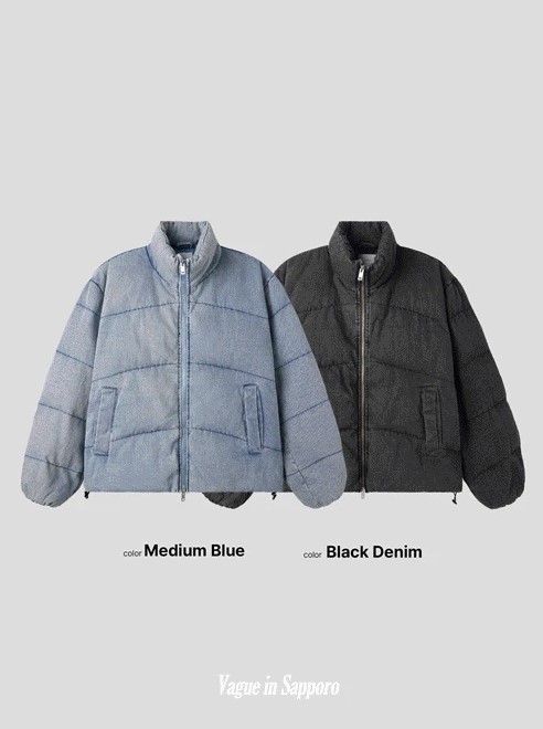 겉감은 데님 코튼 소재로, 안감은 6온스 웰론 충전재를 넣어