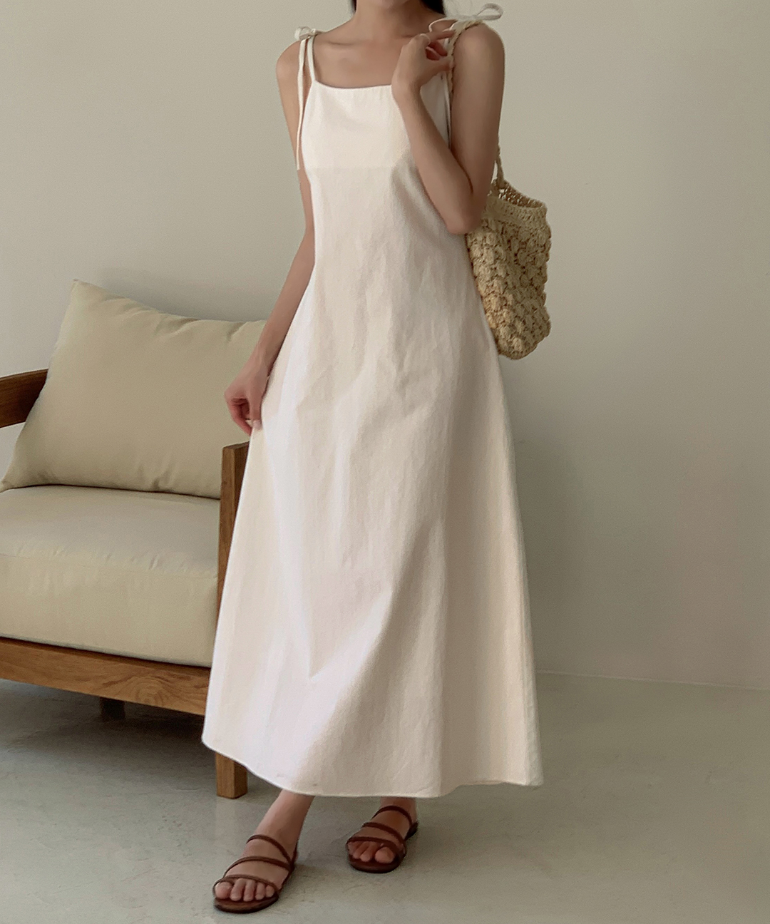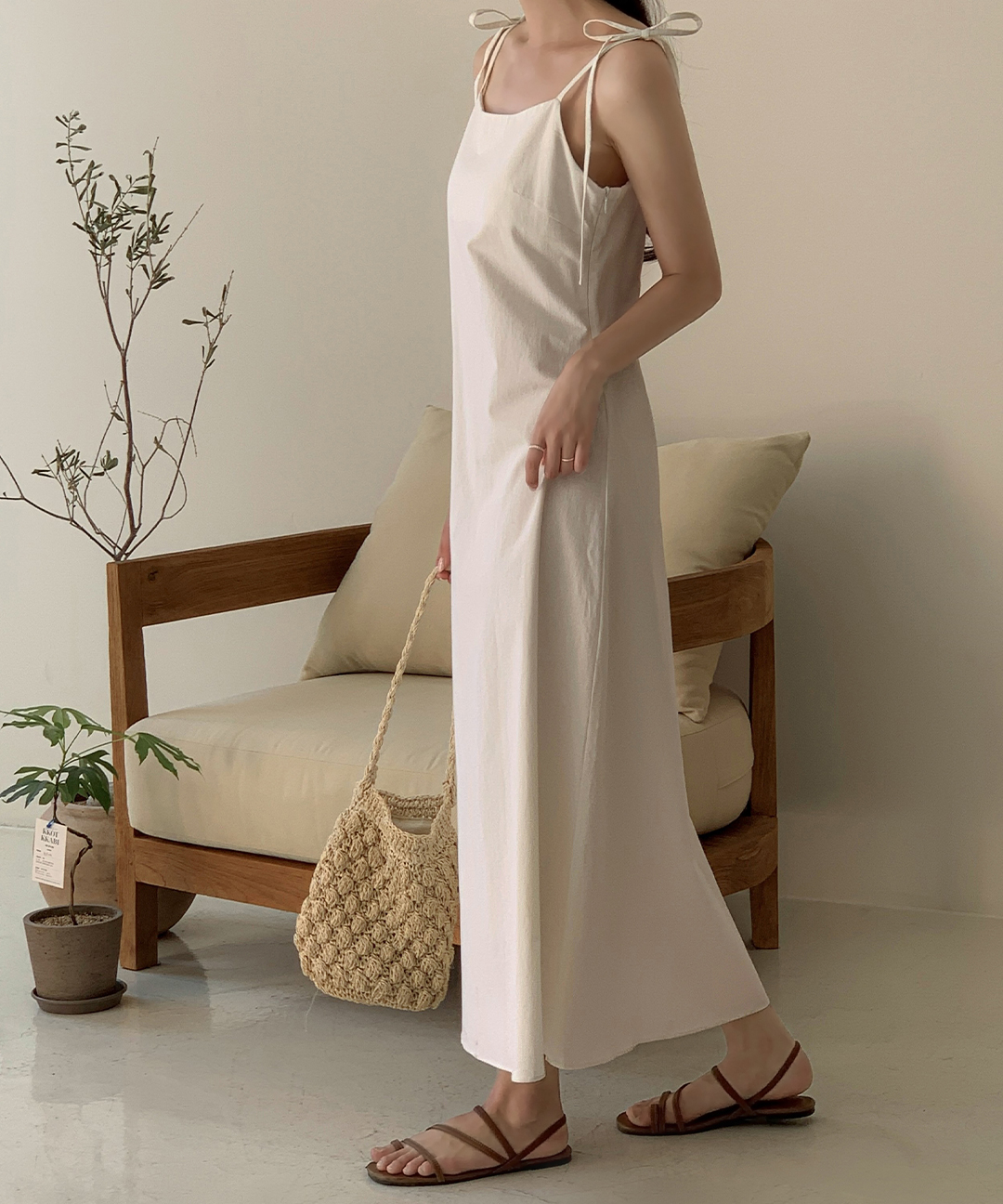 [original/S-L]ロイナリネンリボンキャミワンピース