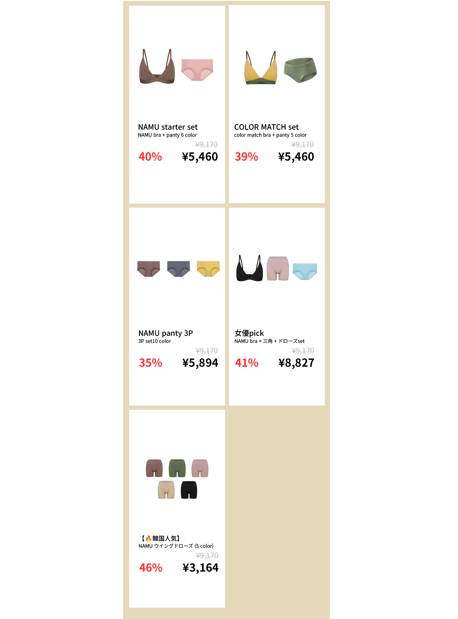 [SET]NAMU ブラ+ショーツ3点セット(レディース)3color