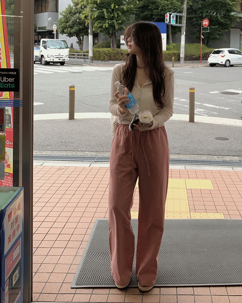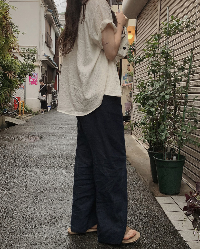 (basic/long) ウッドリネンワイドパンツ-6color