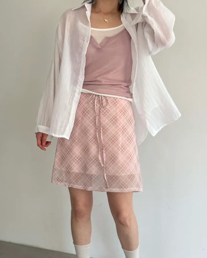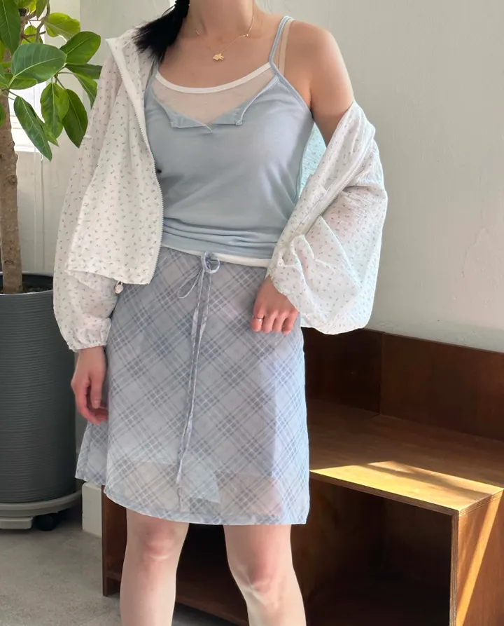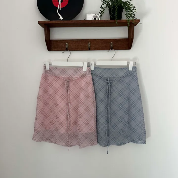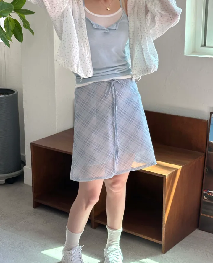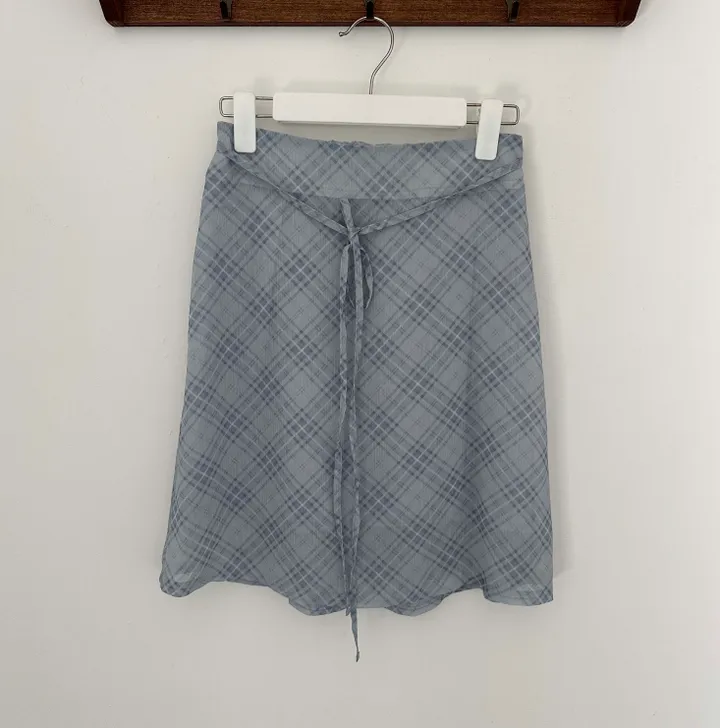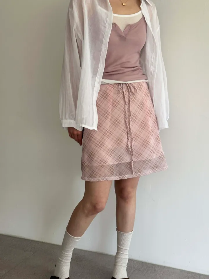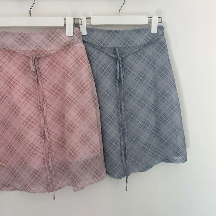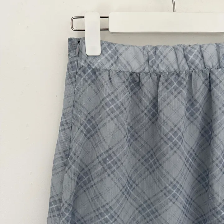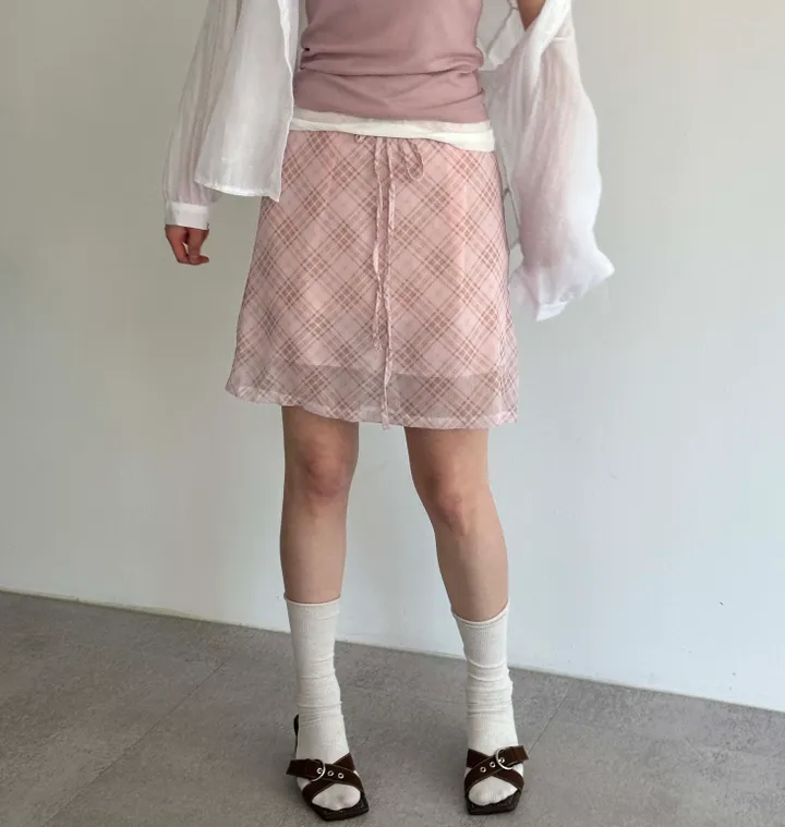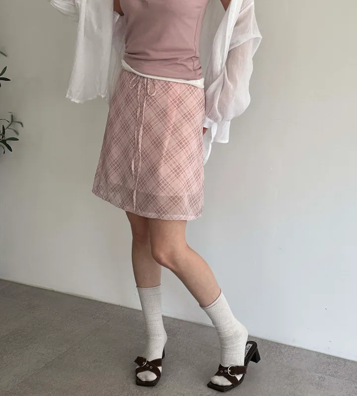 斜めストライプチェックミドル丈リボンスカート[2color]