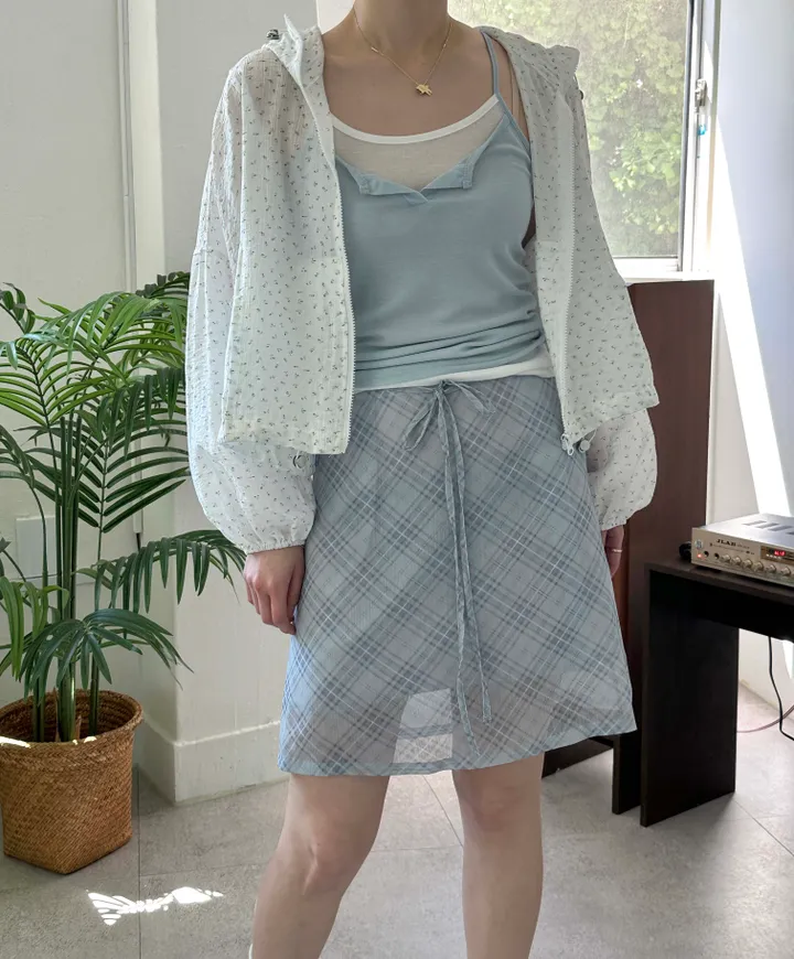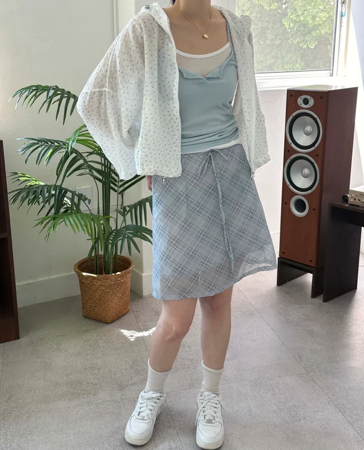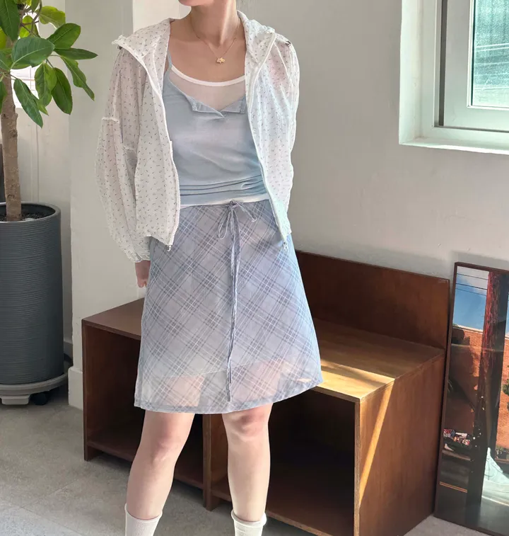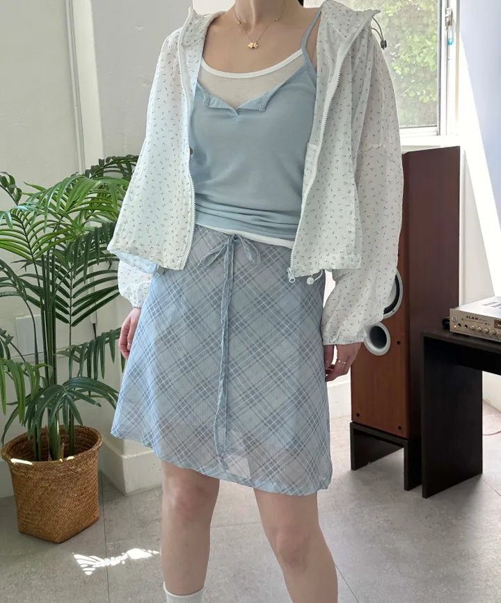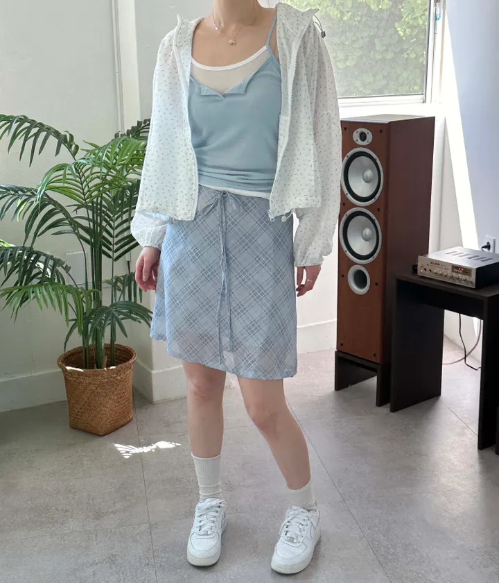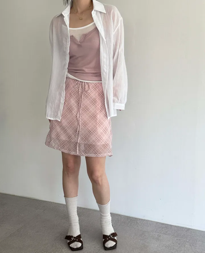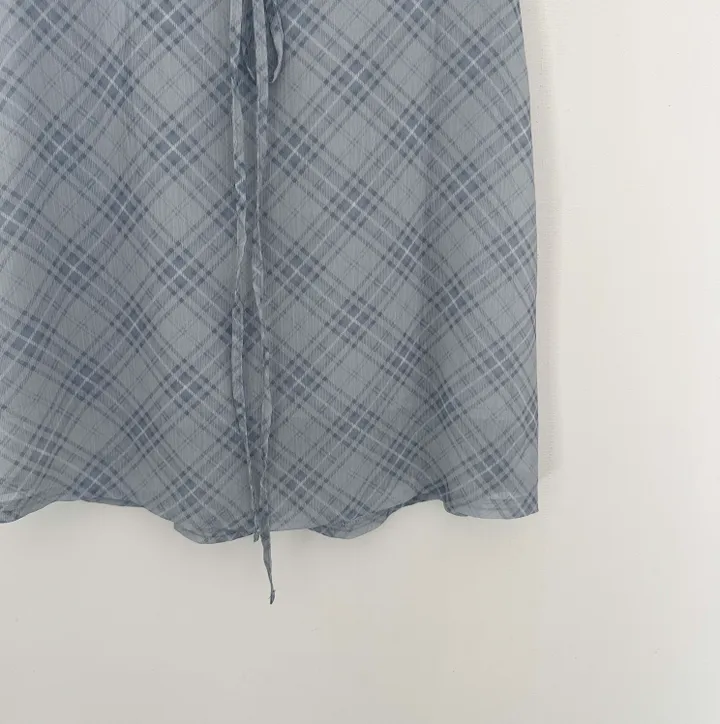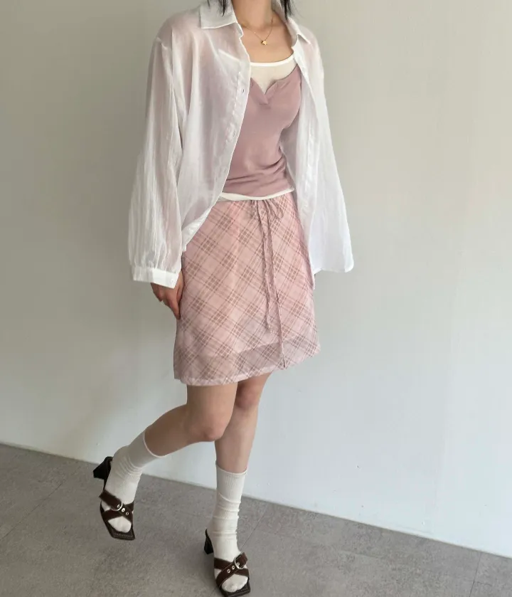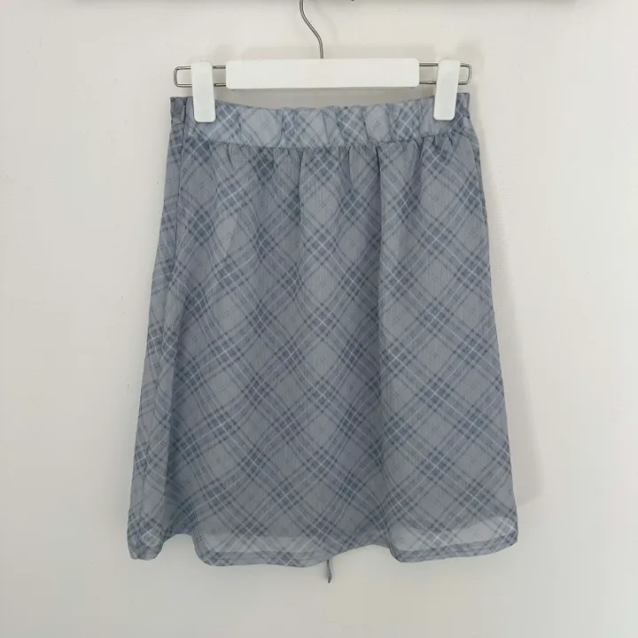 斜めストライプチェックミドル丈リボンスカート[2color]