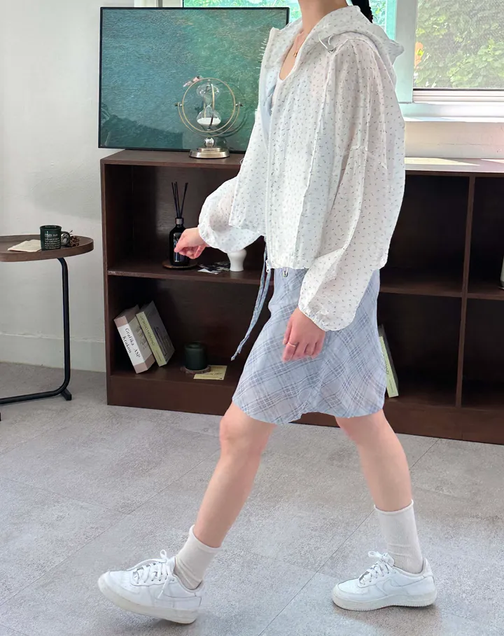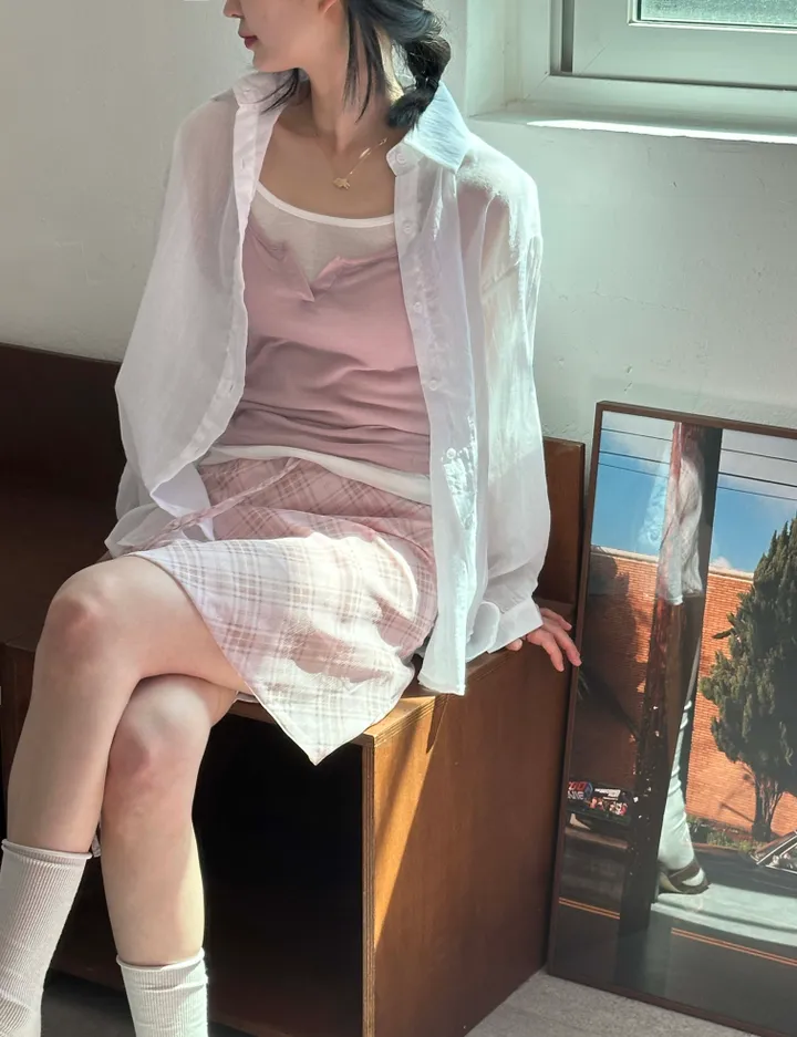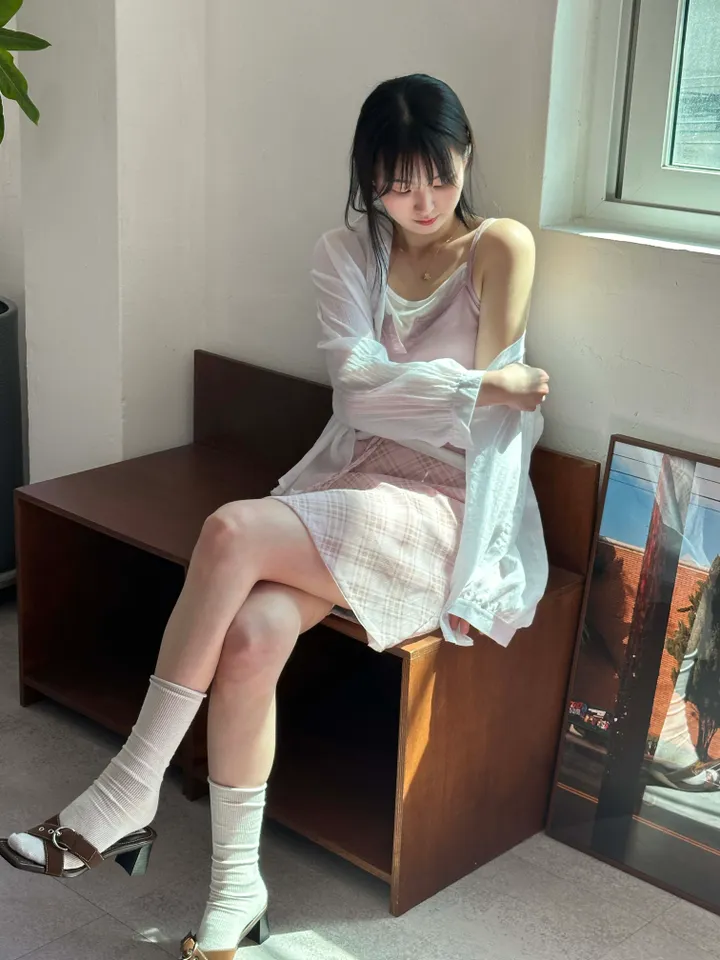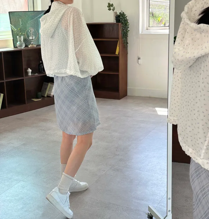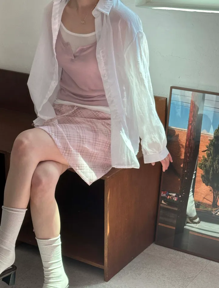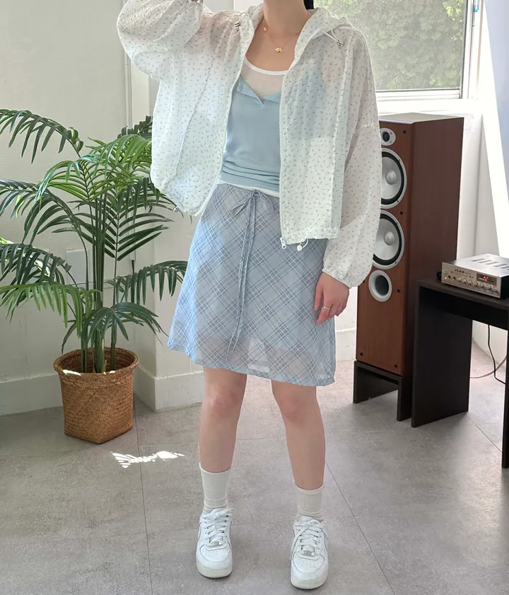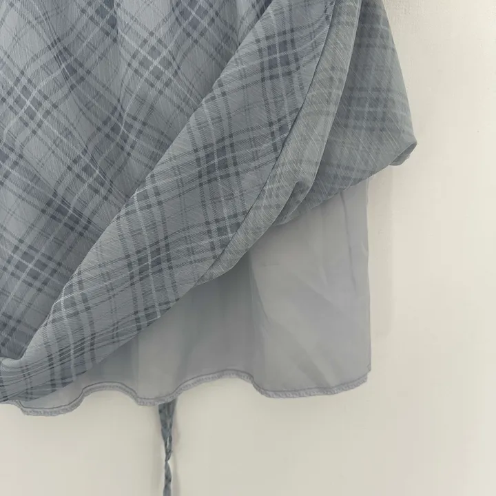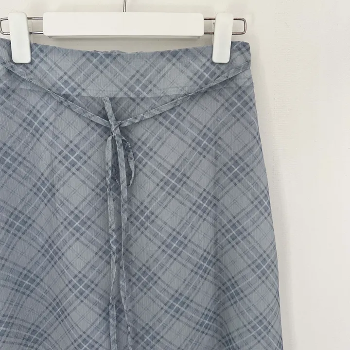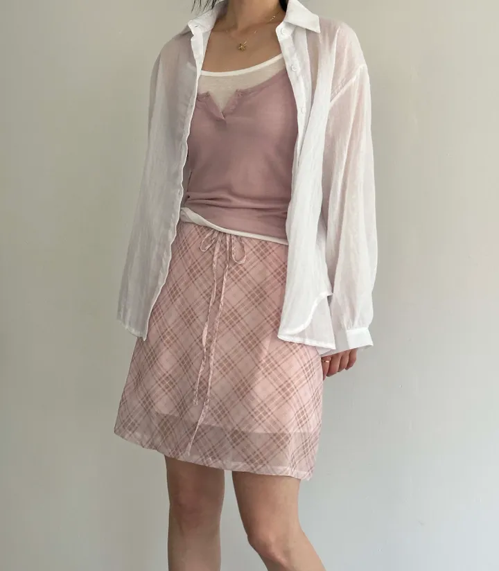 斜めストライプチェックミドル丈リボンスカート[2color]