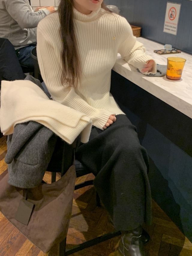 [original]ホールガーメントウールカシミヤリブタートルネックニット