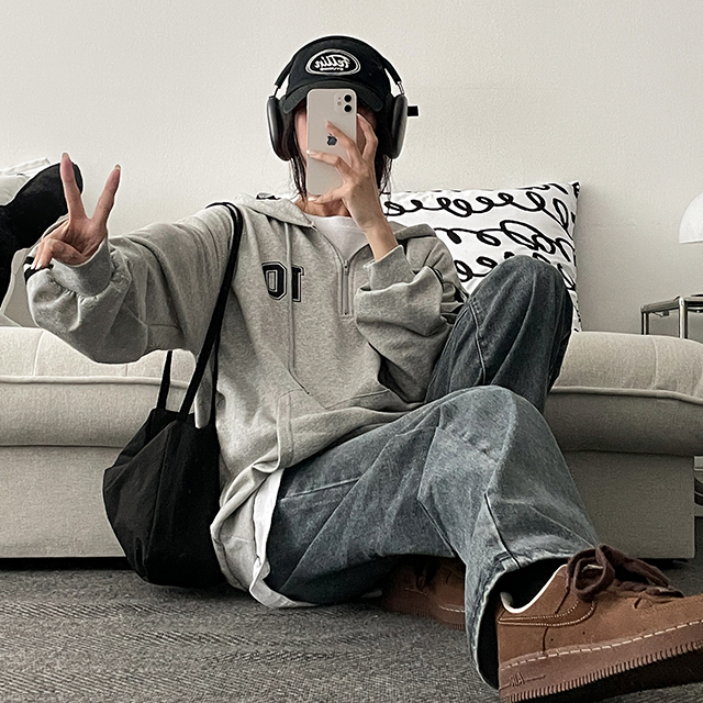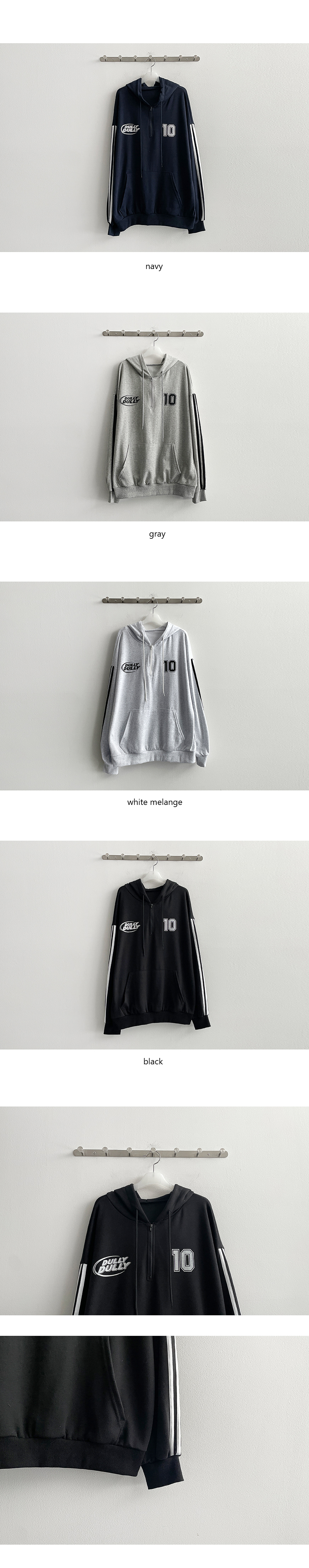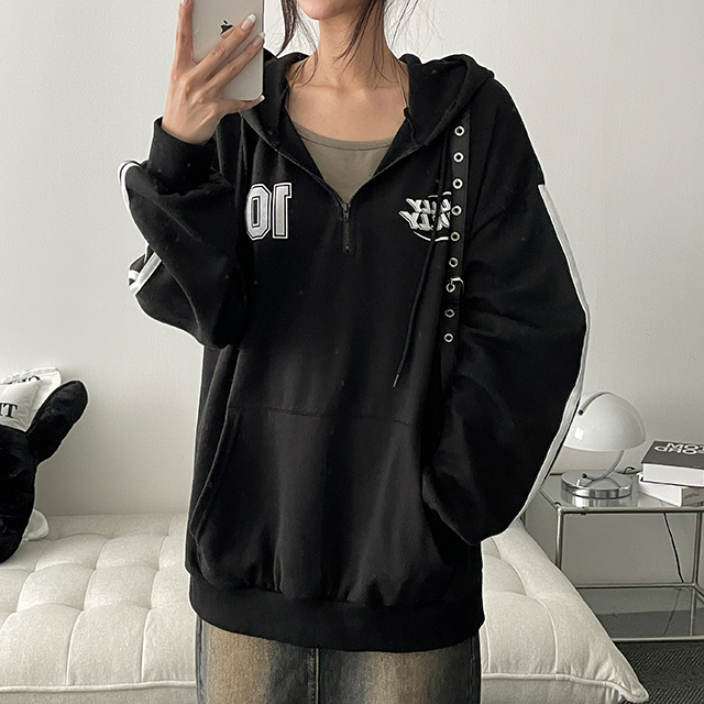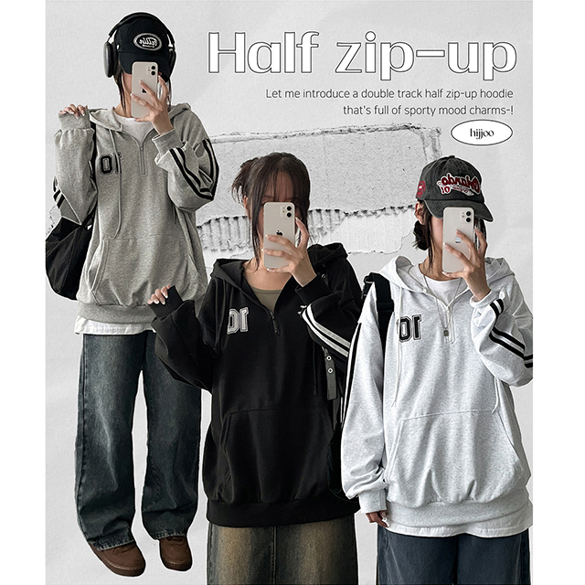 ダブルトラック半ジップアップフードパーカー(4color)
