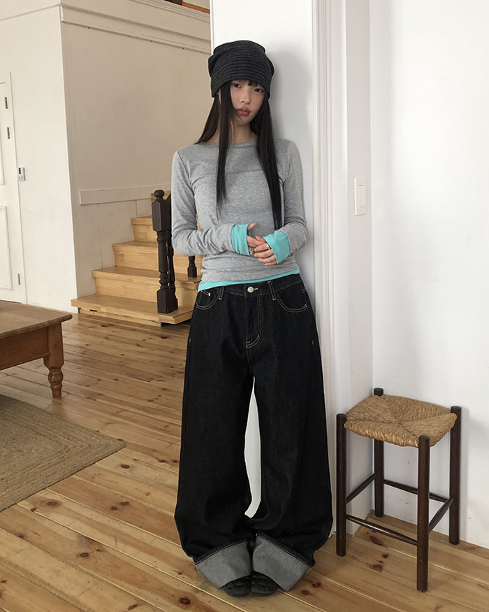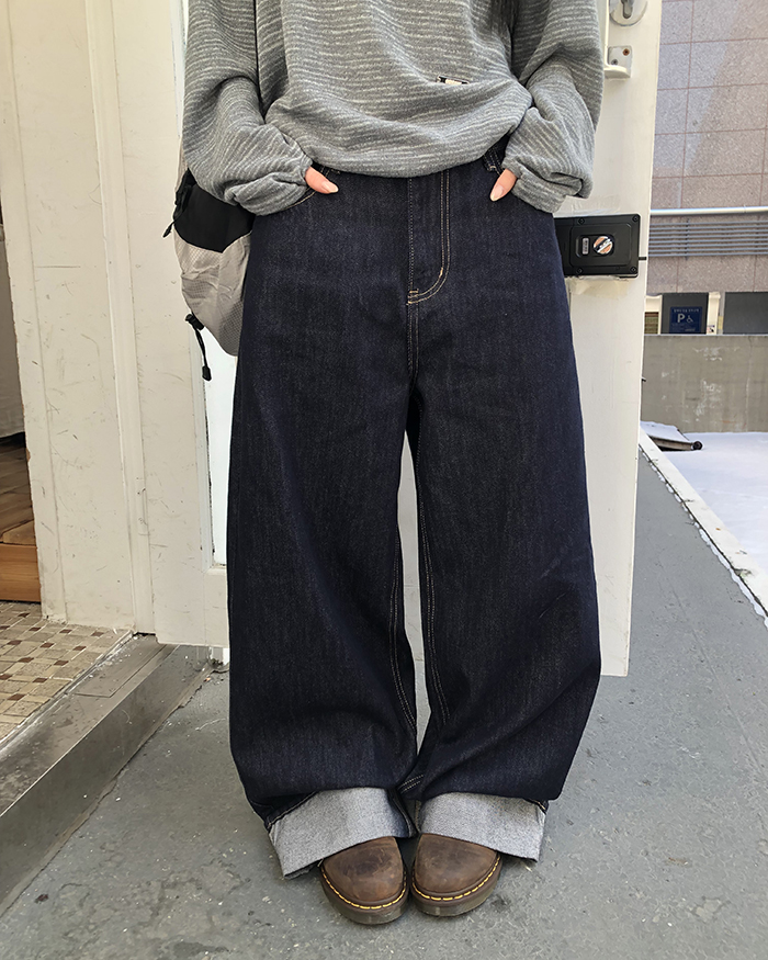 [選べる着]リジッドデニムワイドパンツ