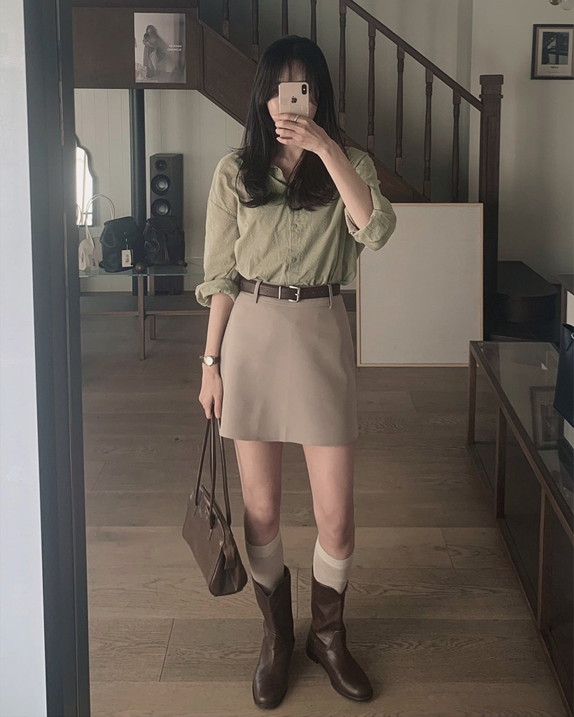 -#SLOWMADE. 플레인 클린핏 미니스커트 /S
