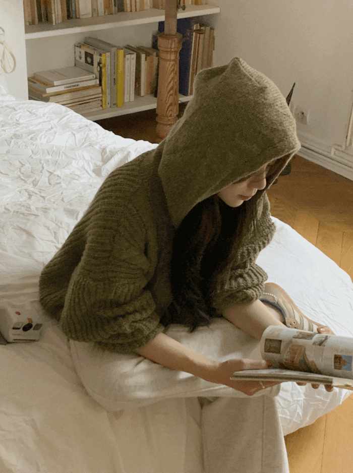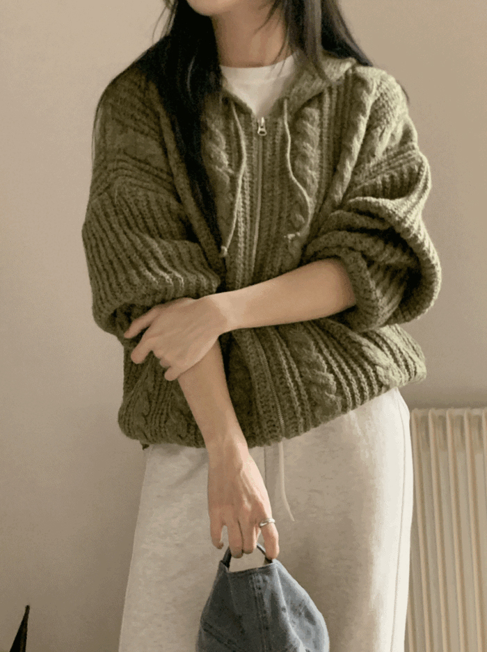 ケーブル編み ニット パーカー