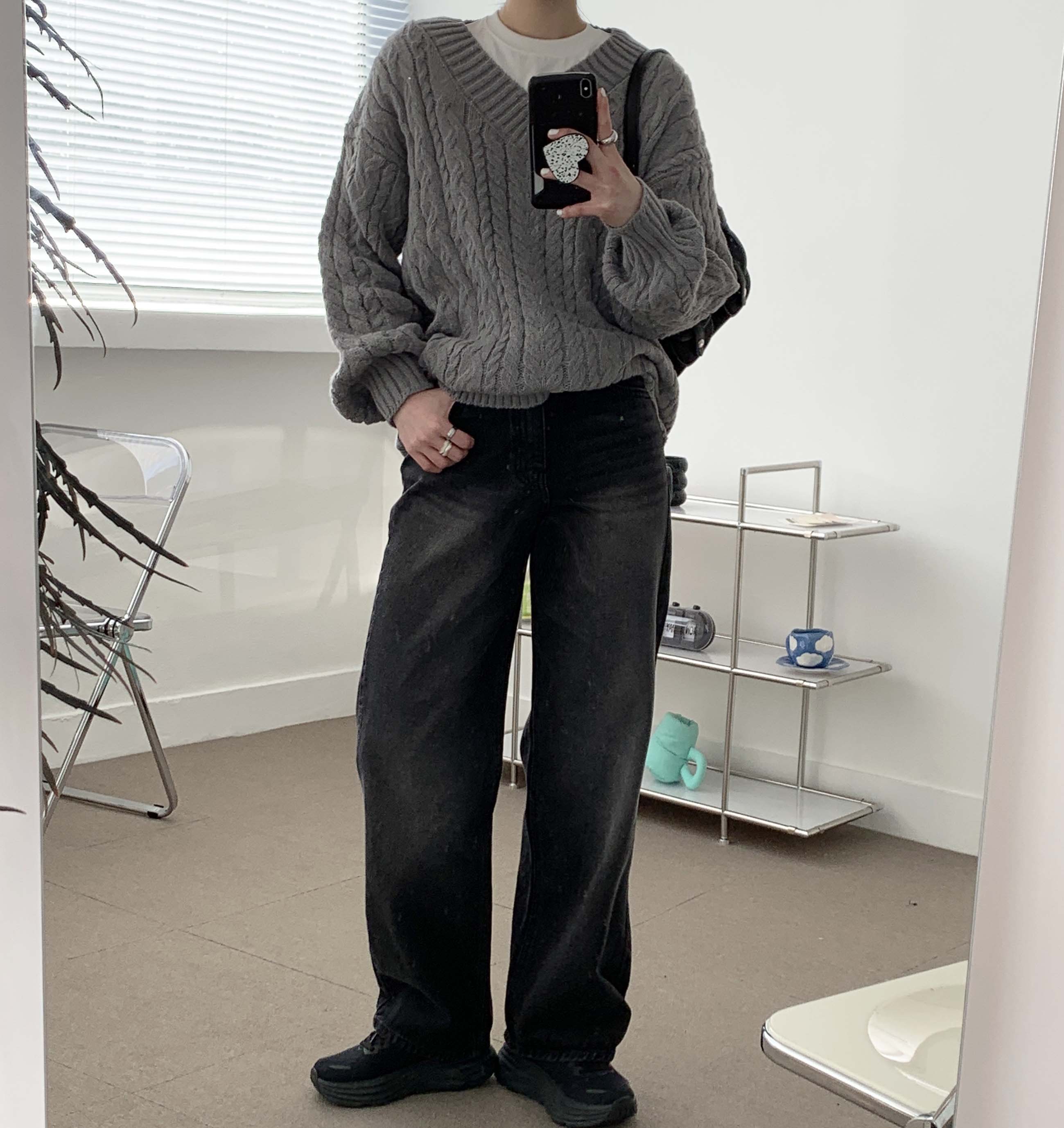 ブラックルーズドルマンスリーブワイドデニムロングパンツ[1color]