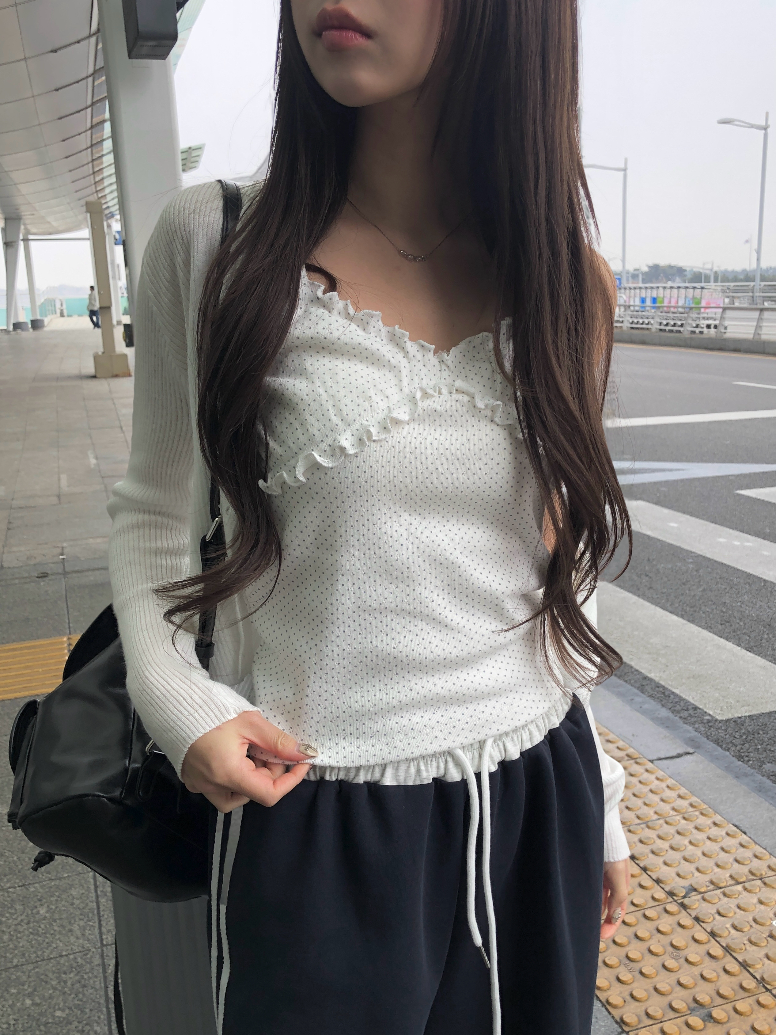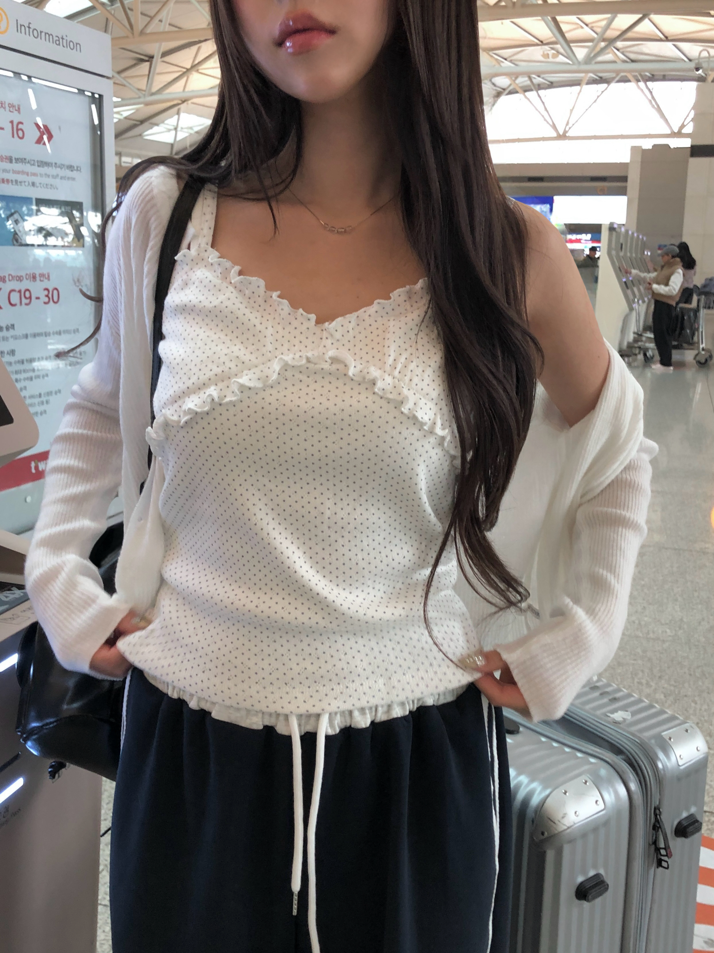 フリルミニドットVネックキャミソール