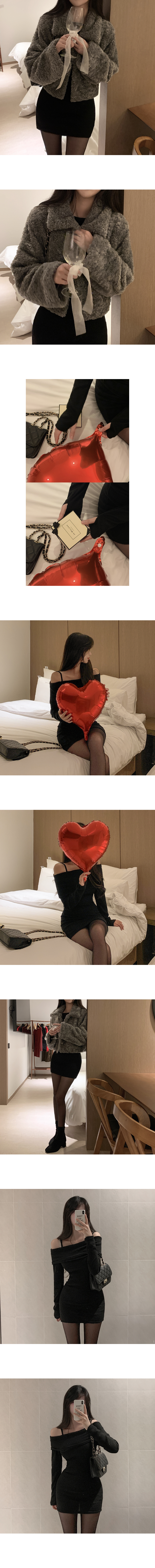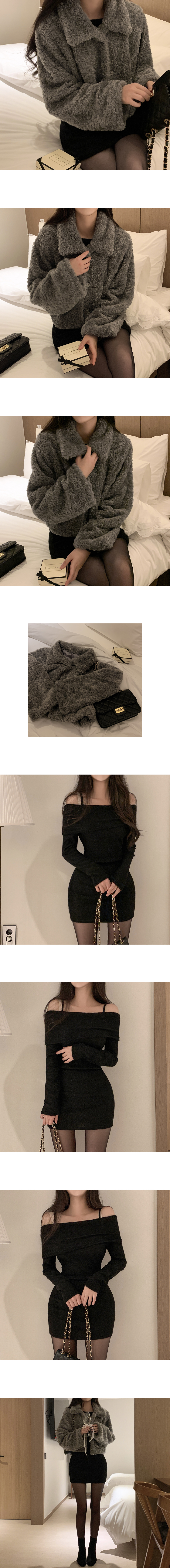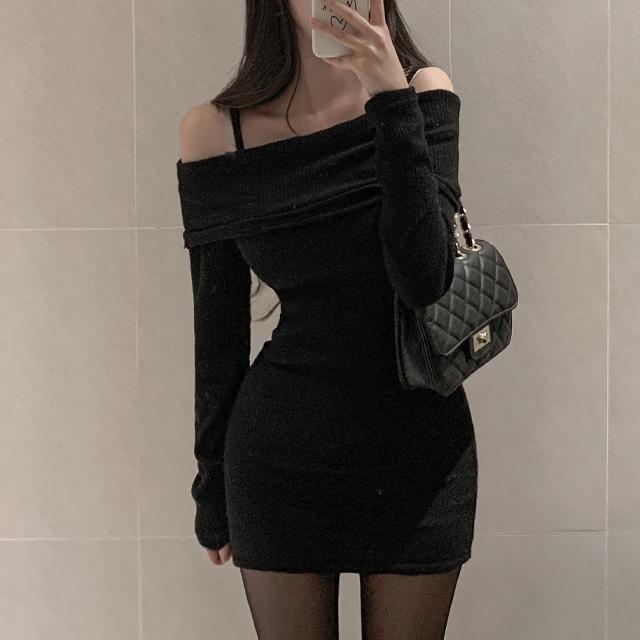 裏起毛ミニリブスリムオフショルワンピース