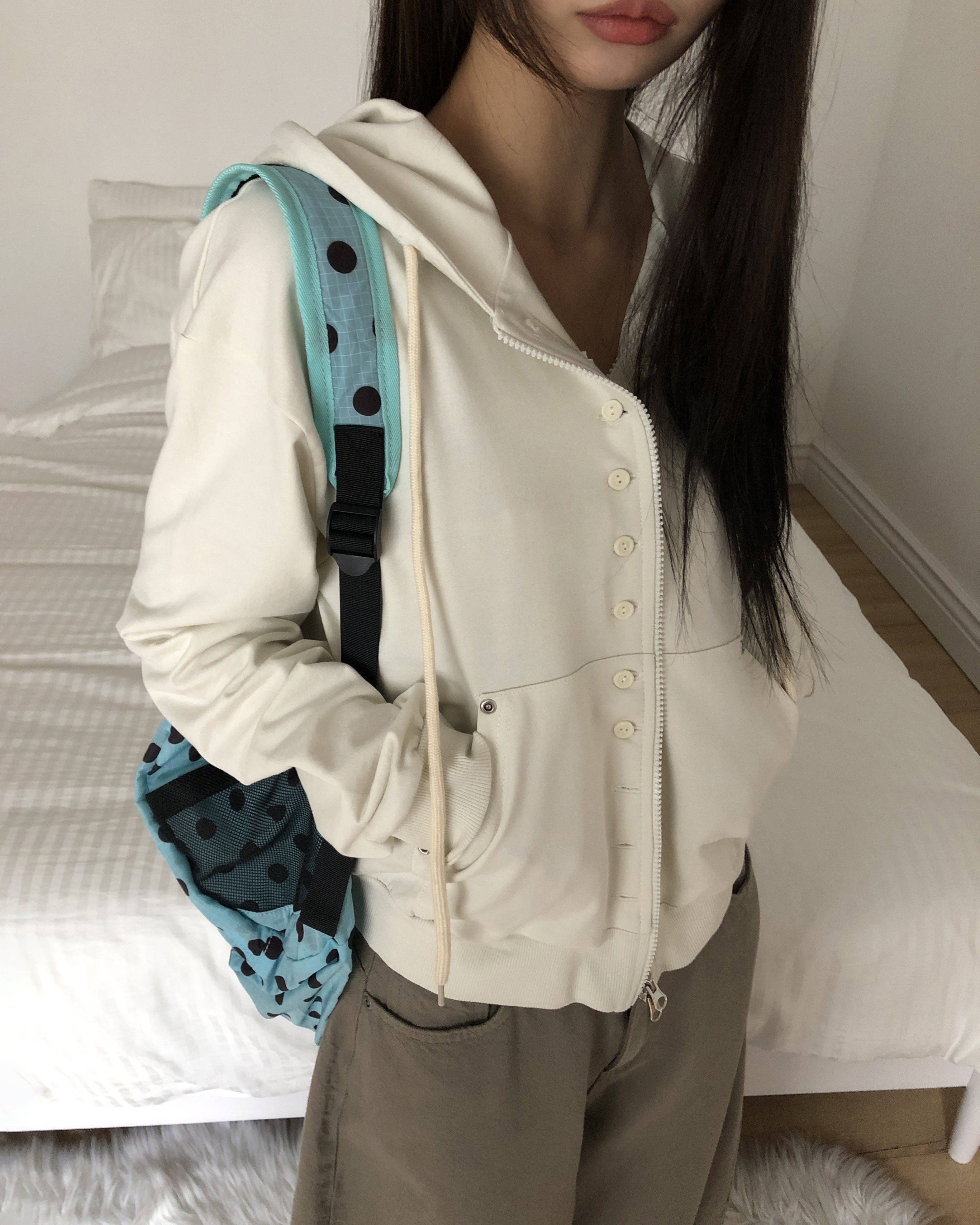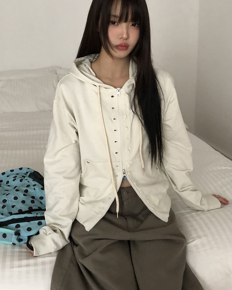 ボタンポイントジップアップパーカー