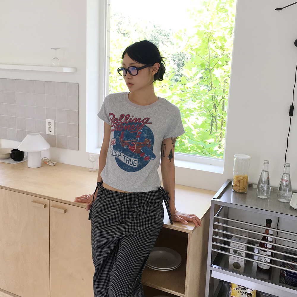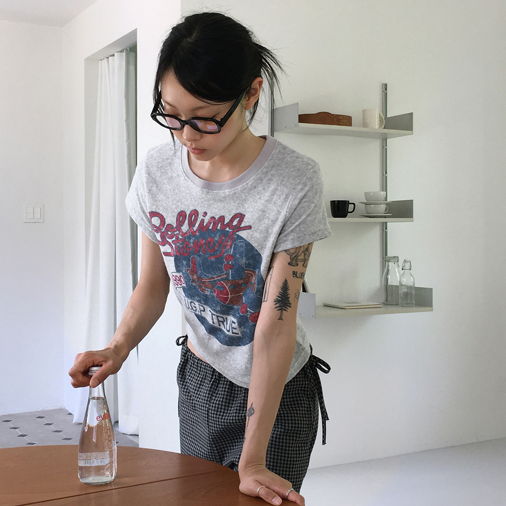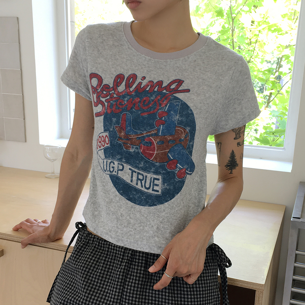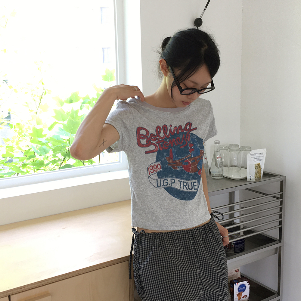 パイル地セミクロップド半袖Tシャツ