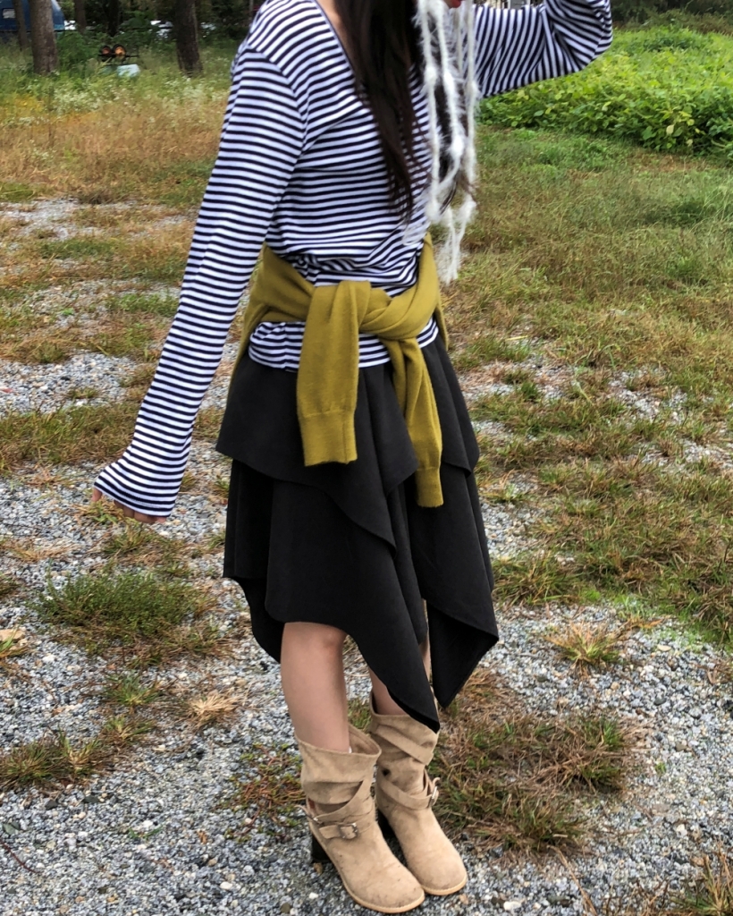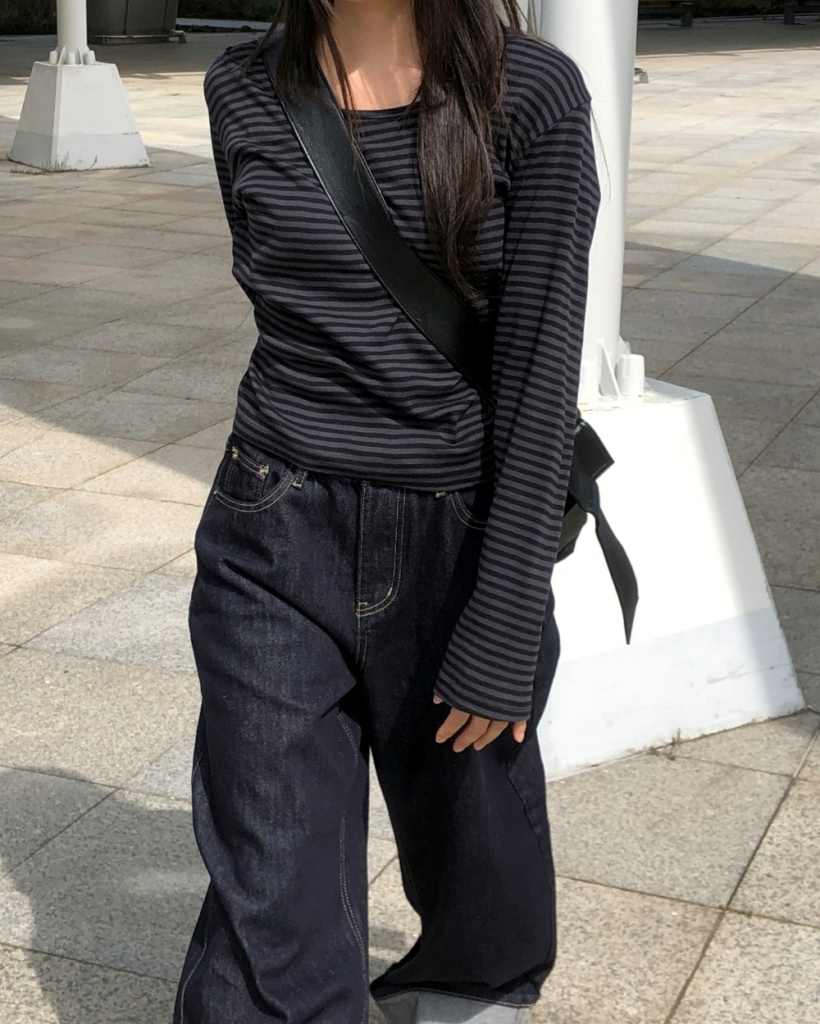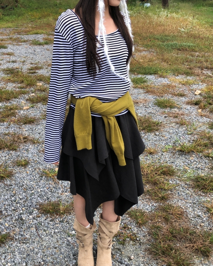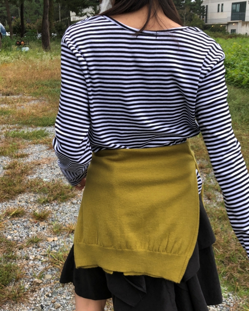 (4color)レイヤードスクエアネックストライプ ボーダーTシャツ