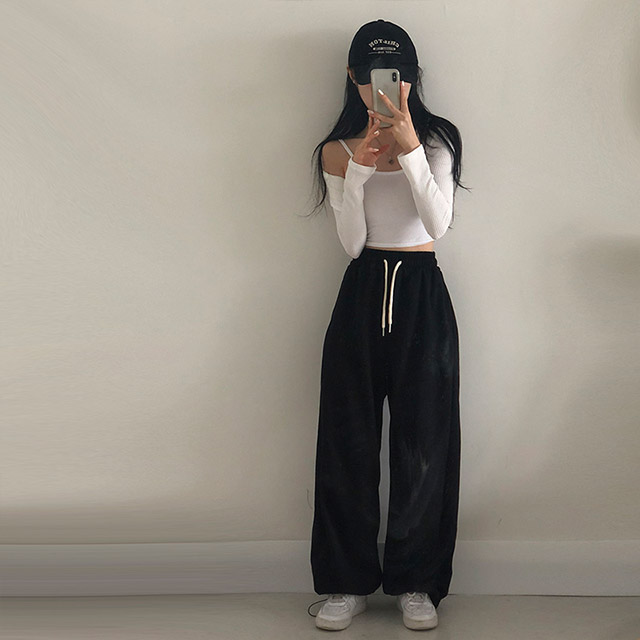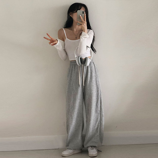 [7color]スリットストリング2WAYワイドジョガートレーニングパンツ