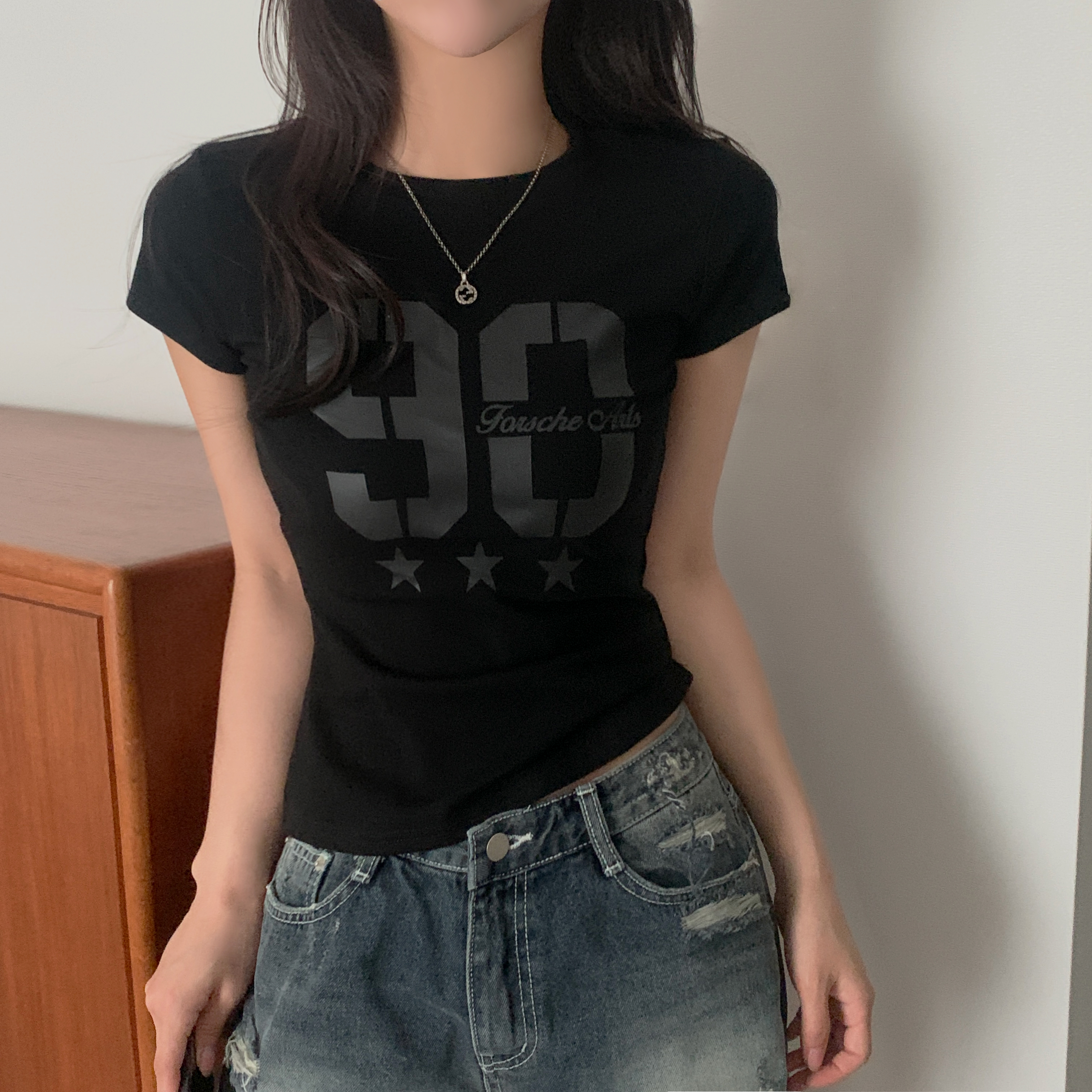 ウエスト細見えスリム半袖Tシャツ(4色)