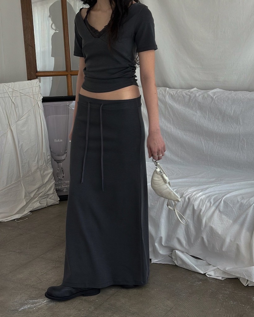 深めのVネックがデコルテラインを華奢に、そして女性らしく引き立ててくれます。