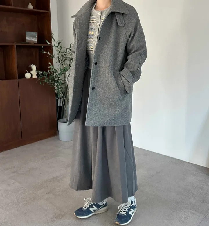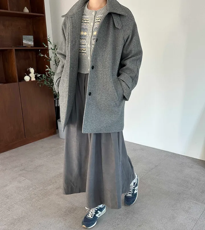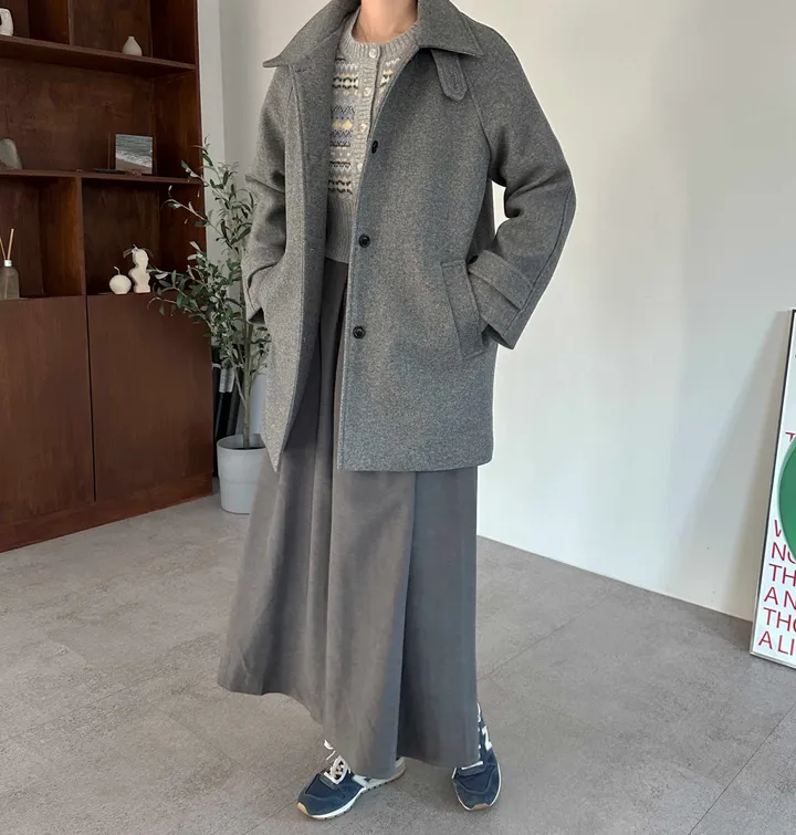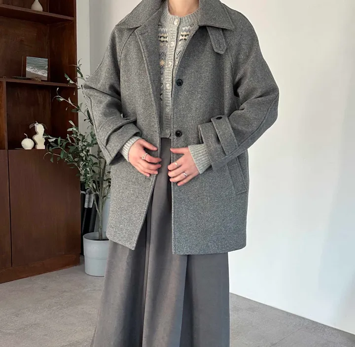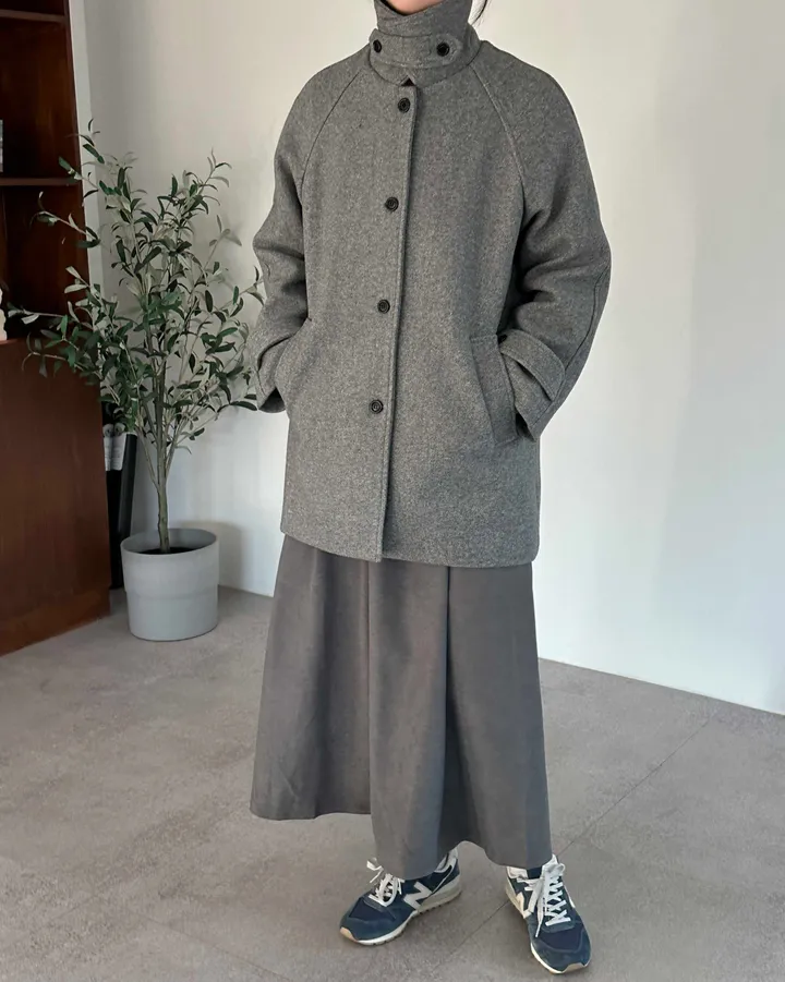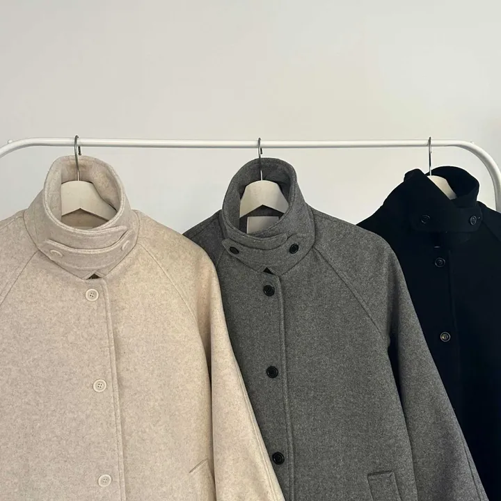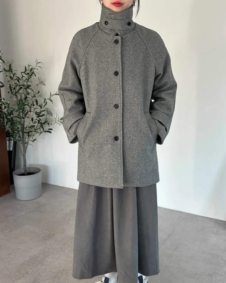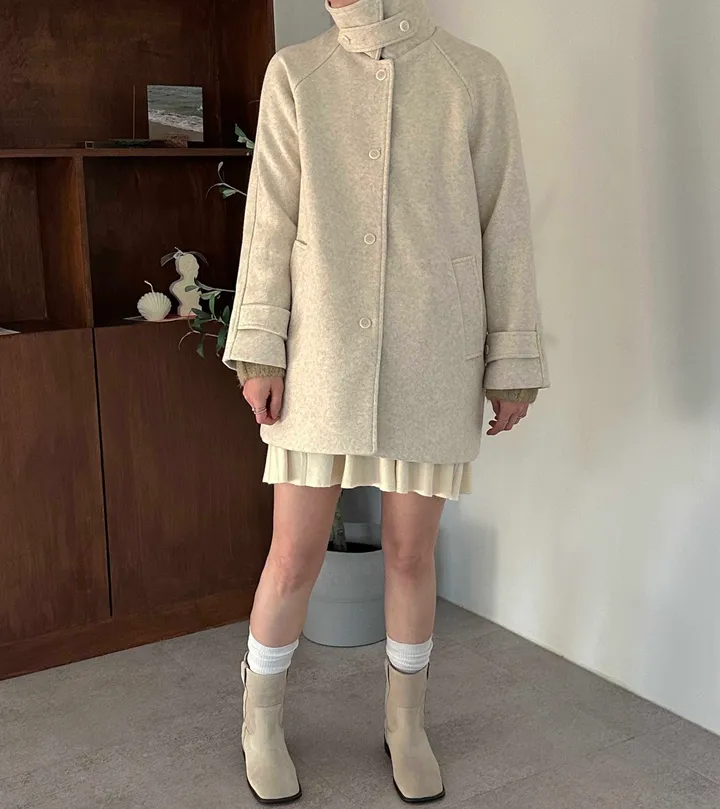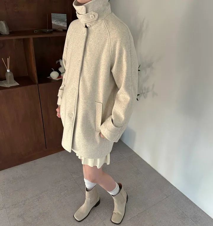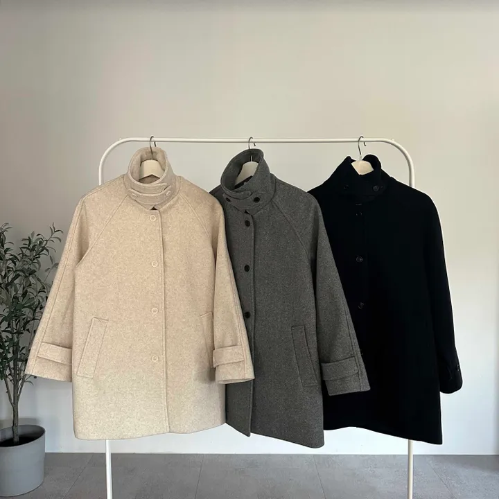 ウールハイネックカラーハーフミドルコート(3color)