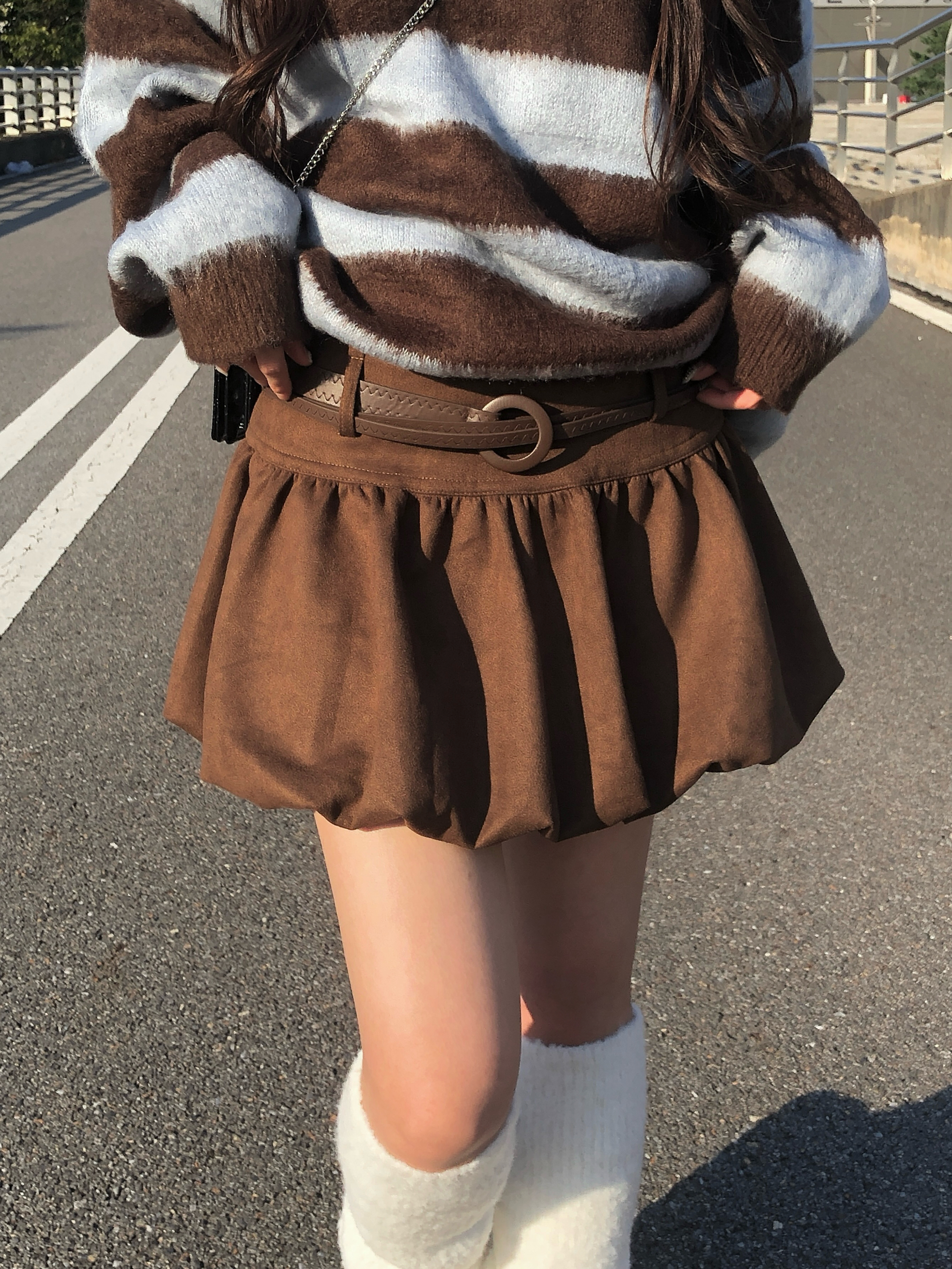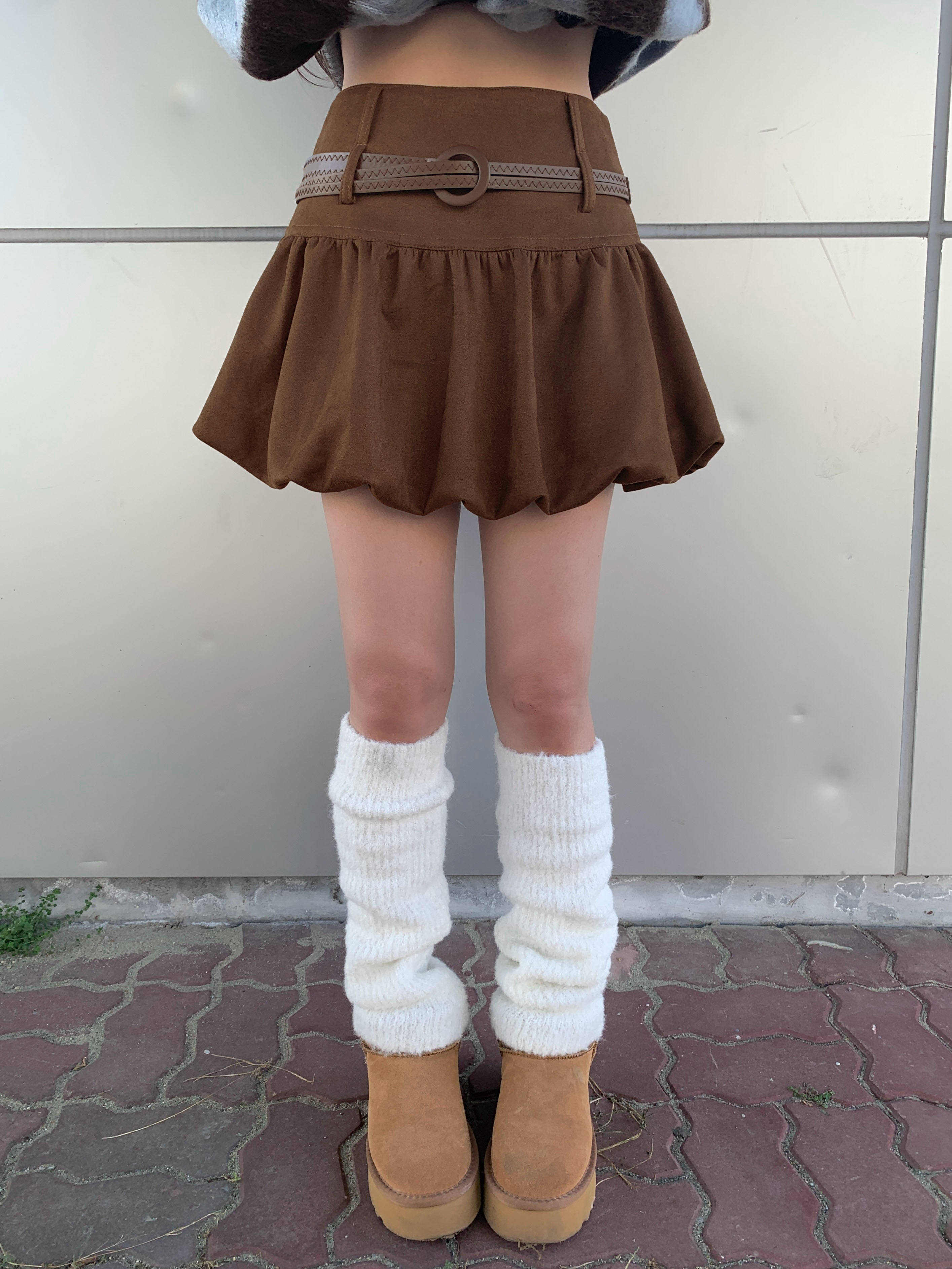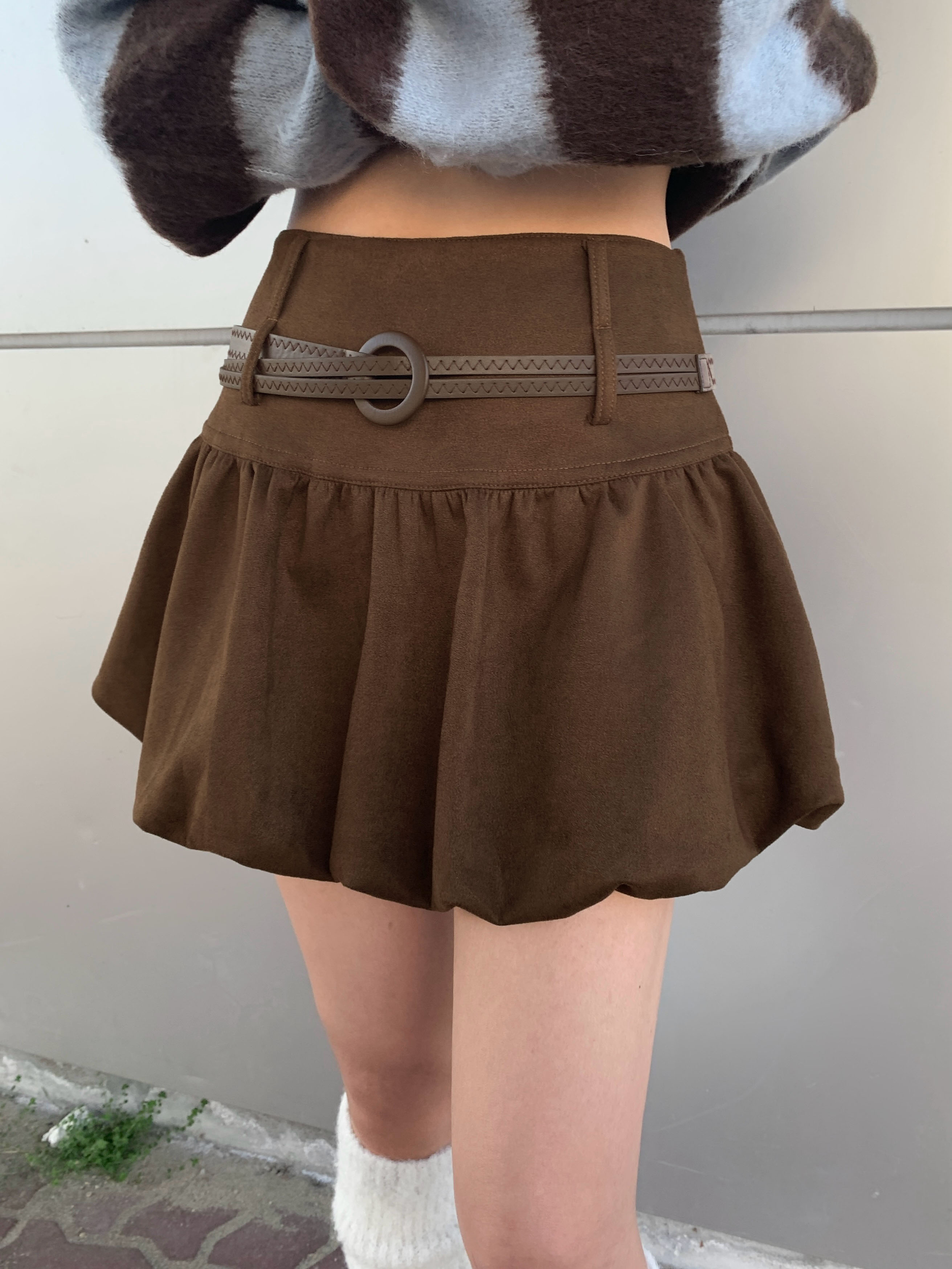 ベルト付きスエード調パンプキンミニスカート
