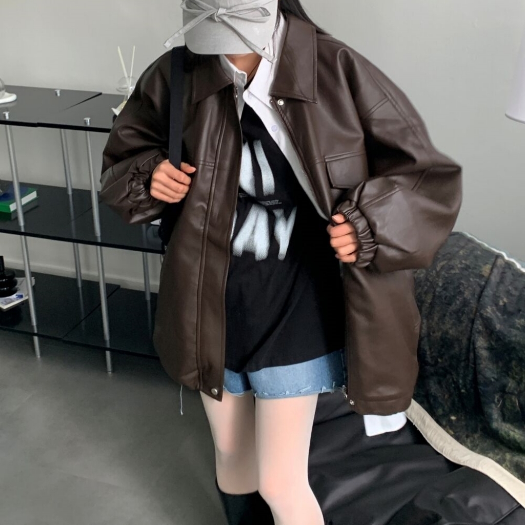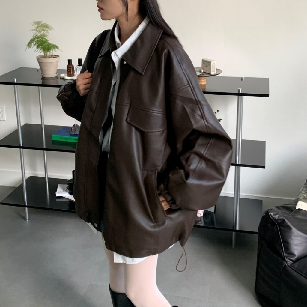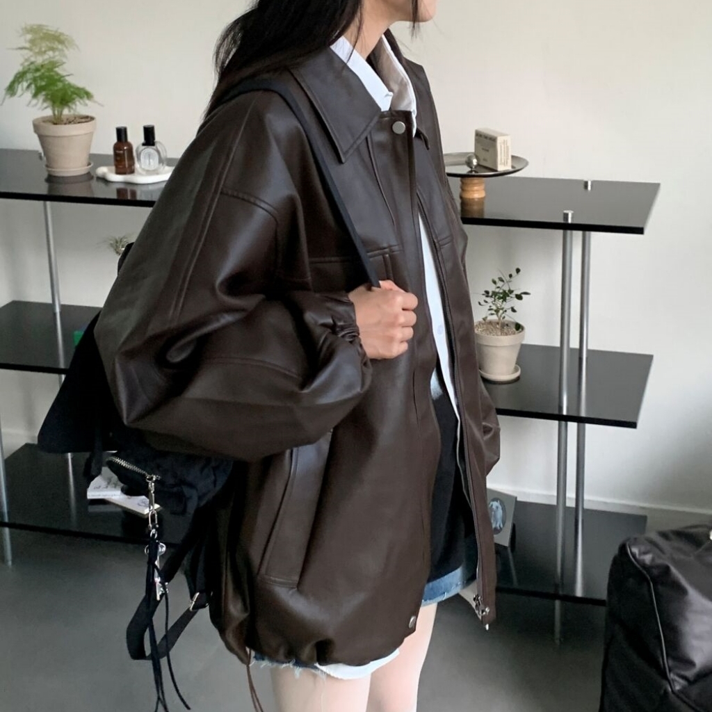 オーバーサイズロングレザージャケット2color