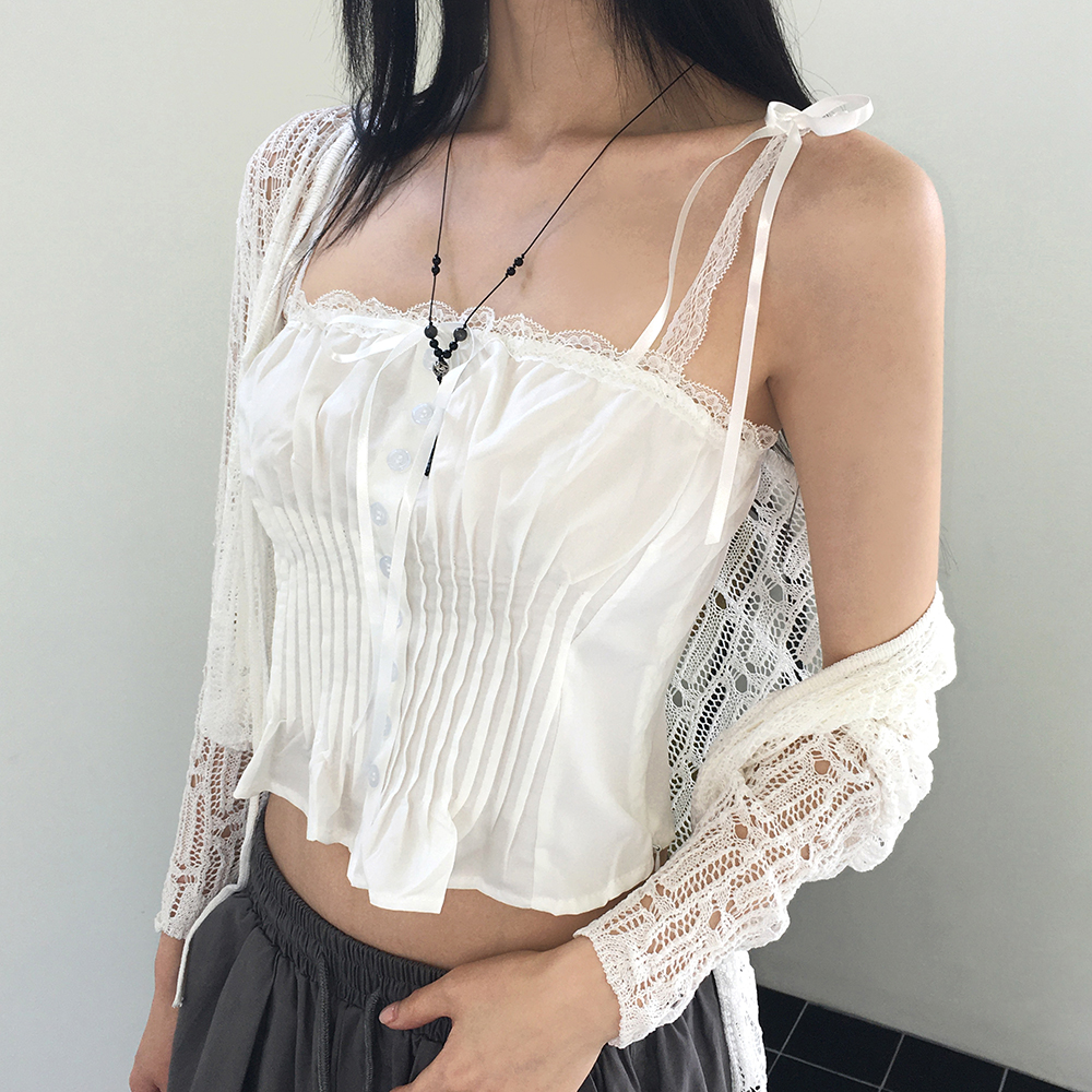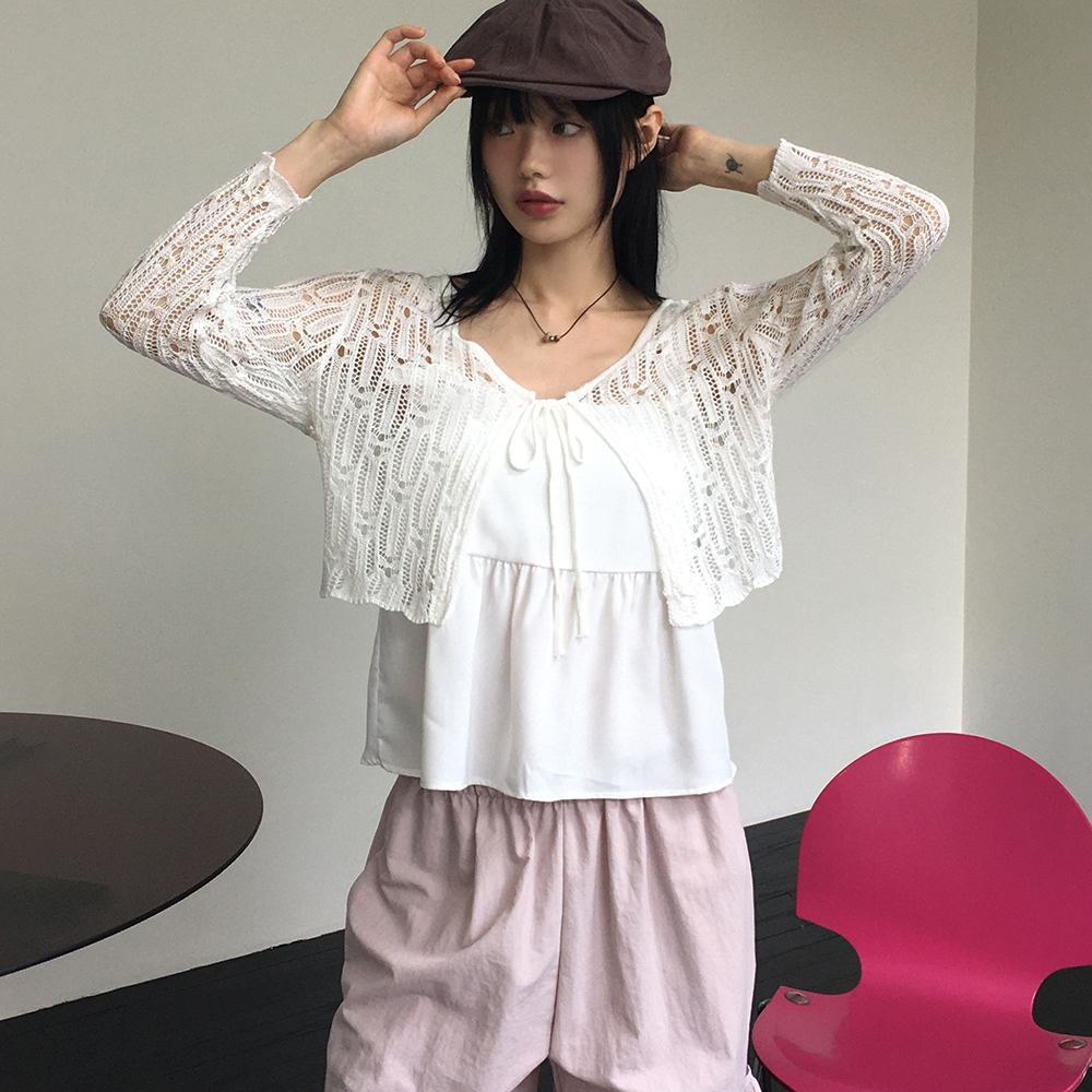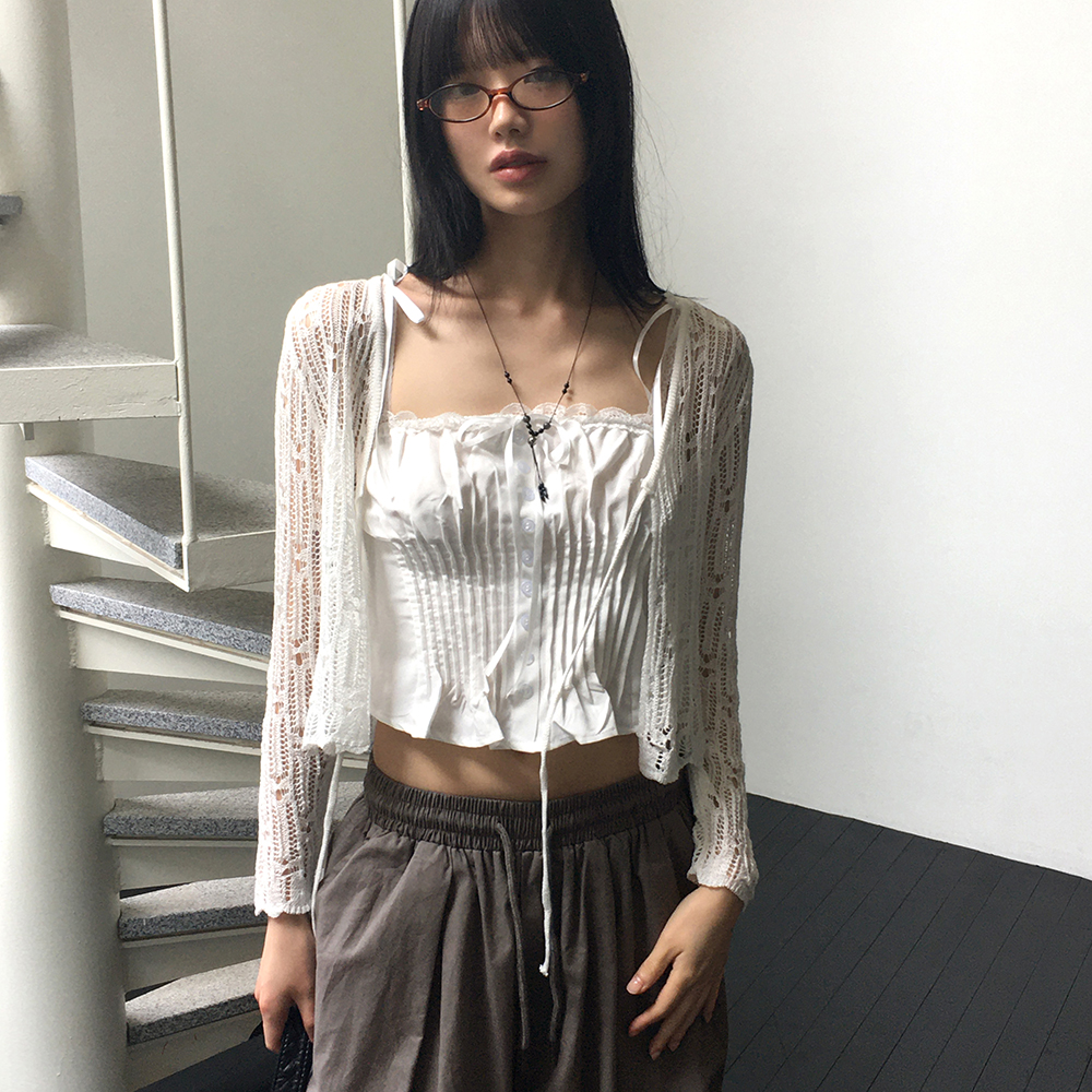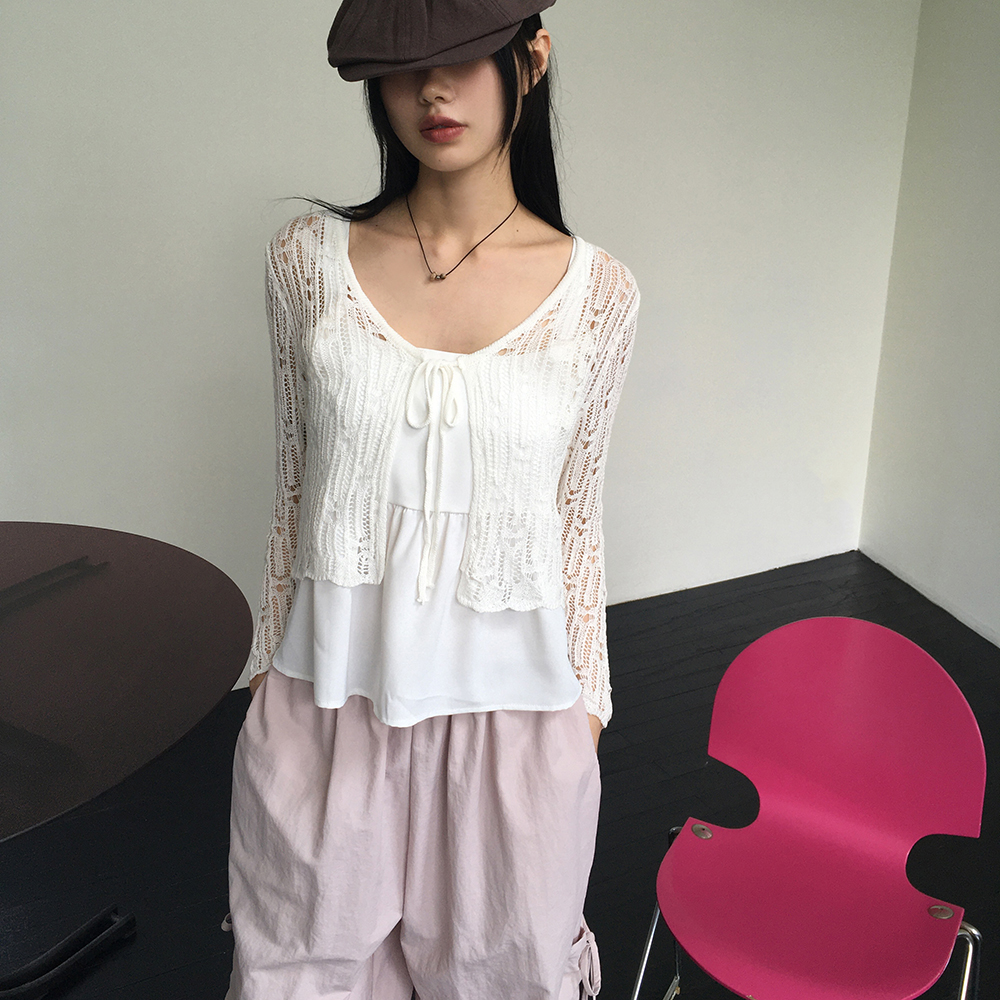 シースルーパンチングストラップカーディガン