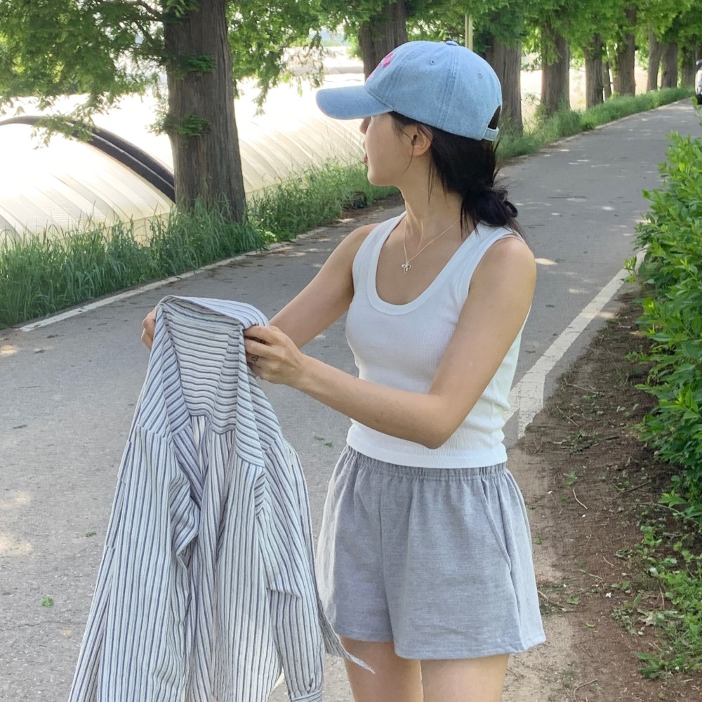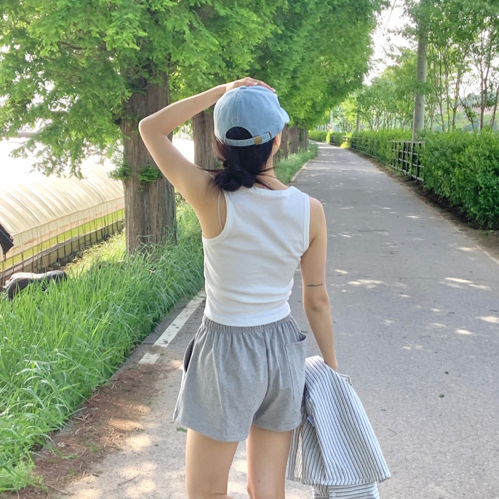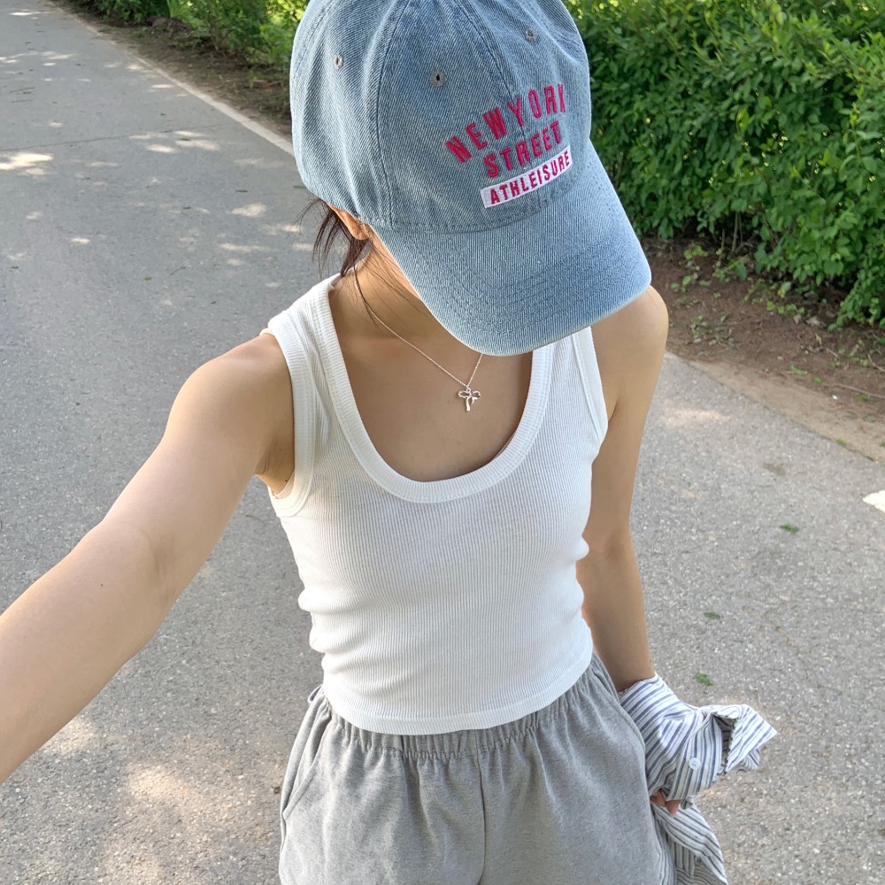 クロップドリブUネックインナーノースリーブトップ