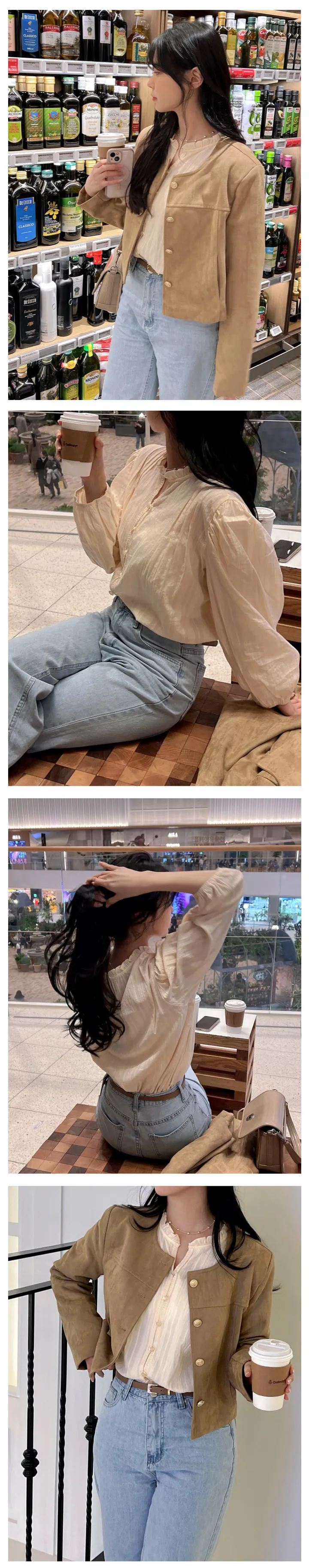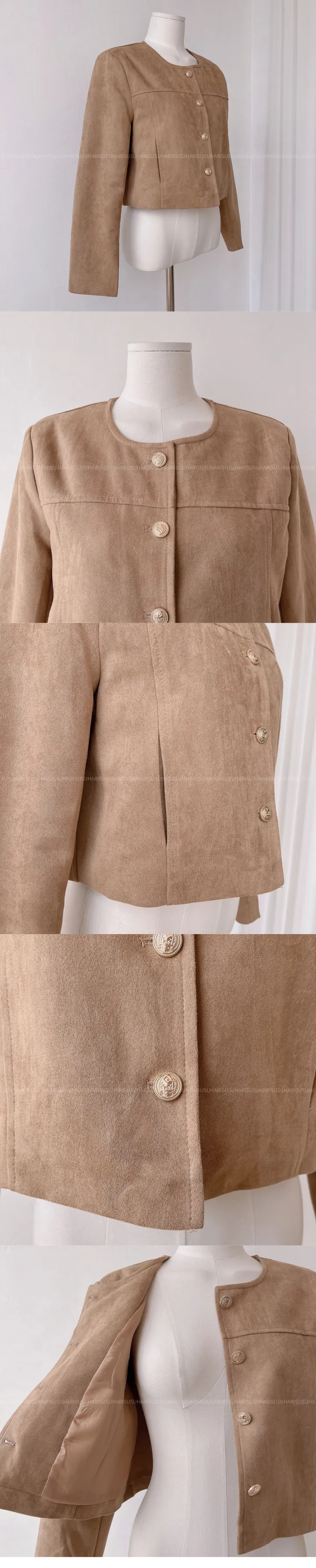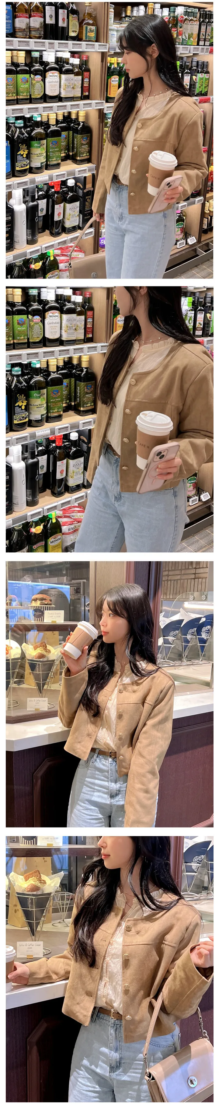 スエードノーカラーラウンドネックセミクロップドジャケット